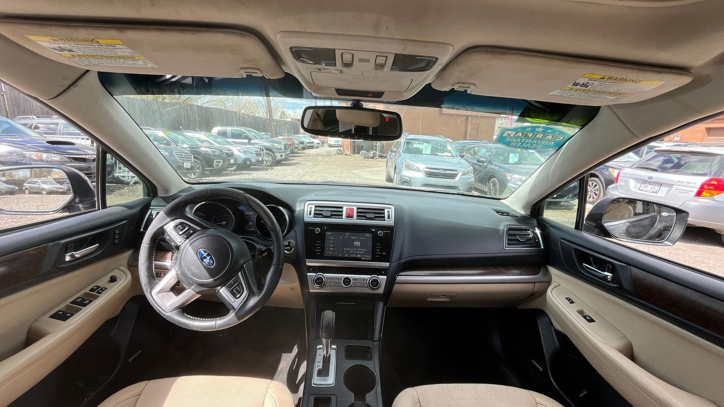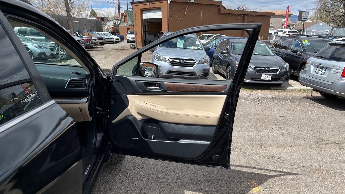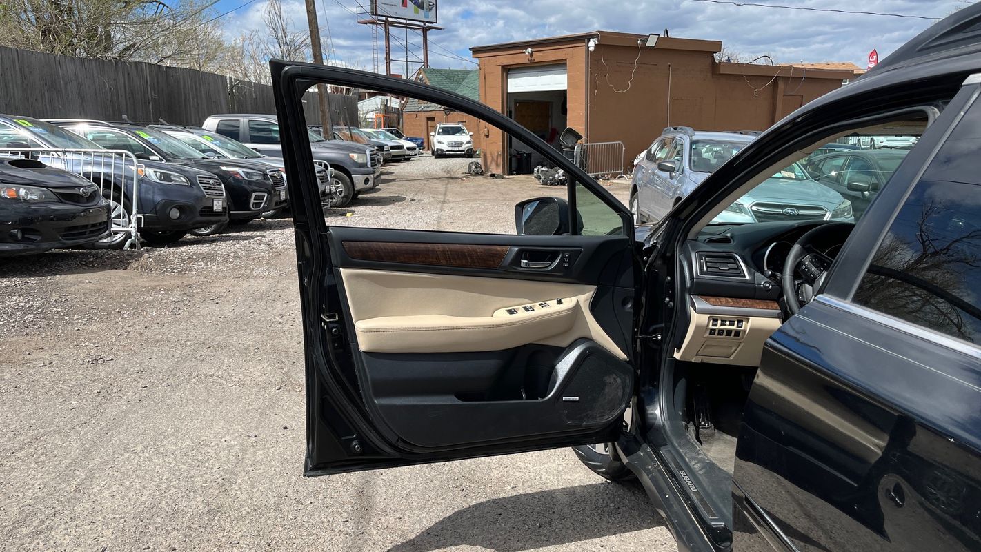 This 2015 Subaru Outback 2.5i Limited just arrived showcasing a sleek black exterior paired with a luxurious Warm Ivory interior reminiscent of Colorado's majestic sand dunes. This fully loaded vehicle features a modern design with a leather interior for added comfort and style.