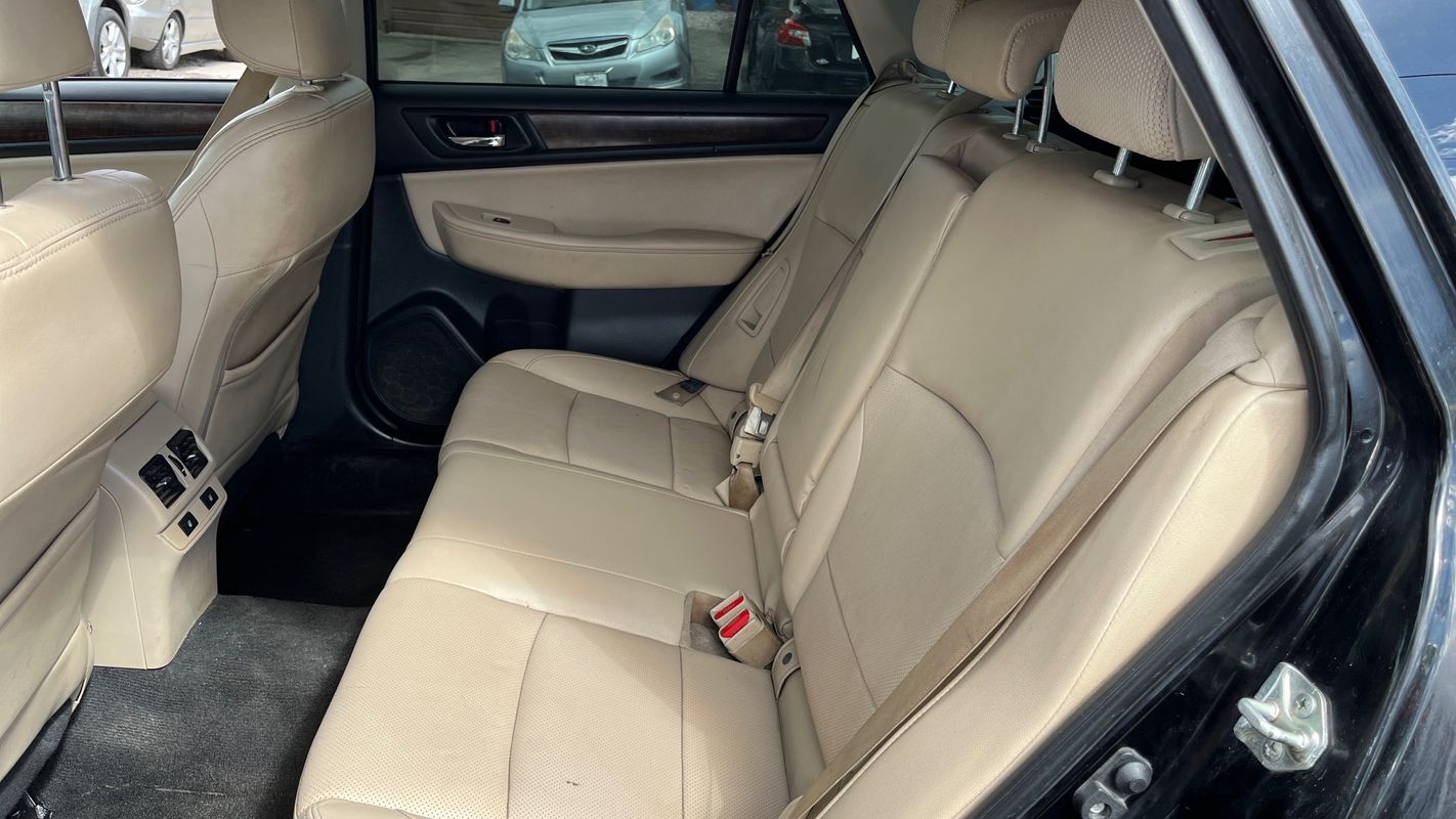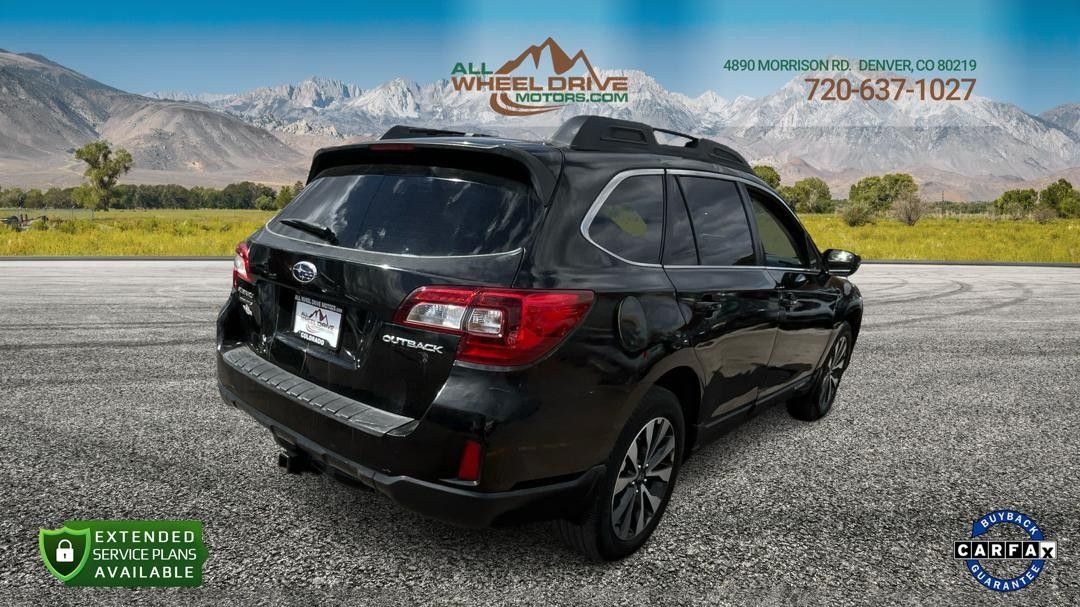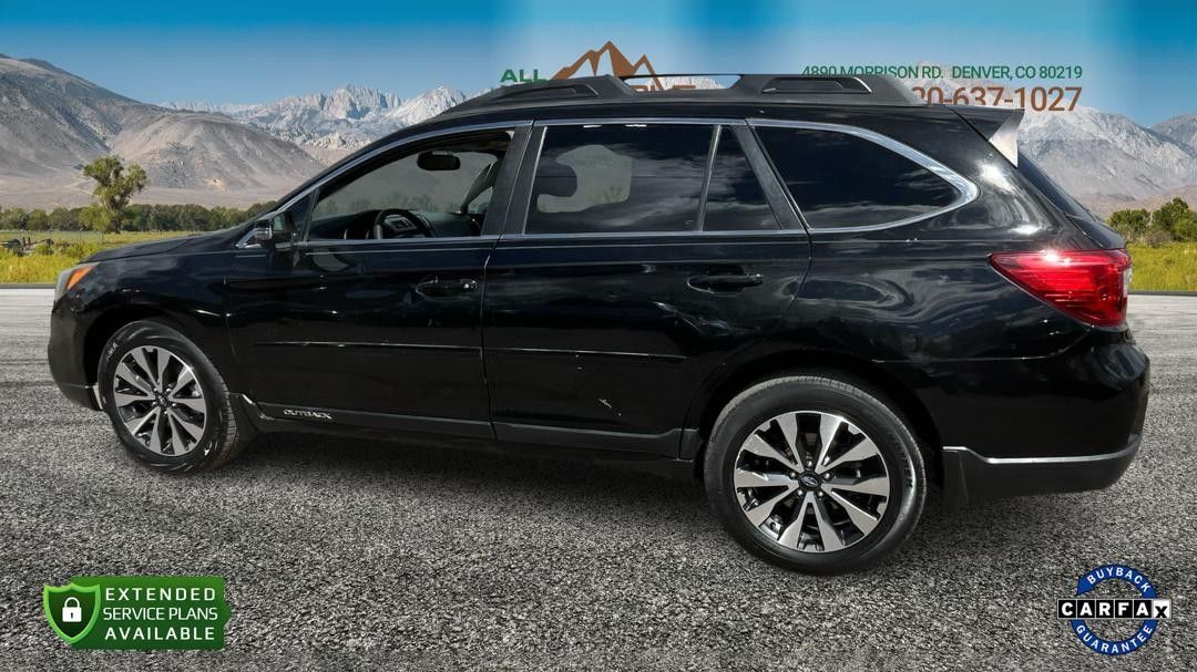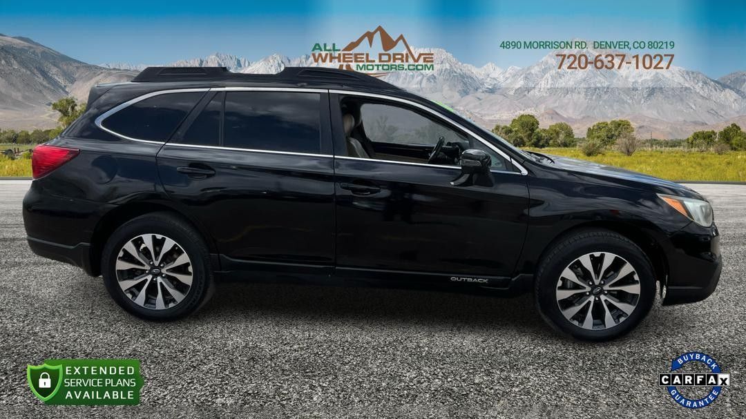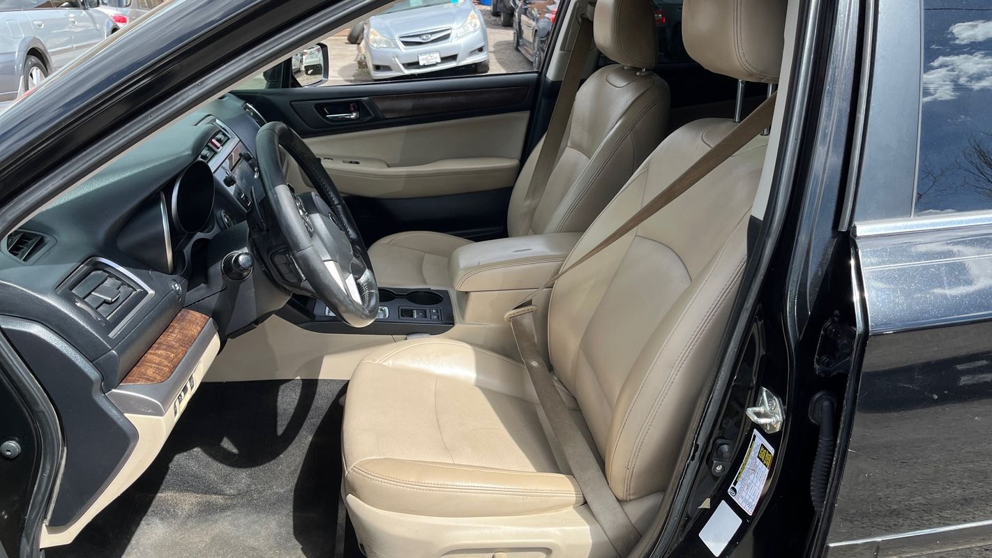 This 2015 Subaru Outback 2.5i Limited just arrived showcasing a sleek black exterior paired with a luxurious Warm Ivory interior reminiscent of Colorado's majestic sand dunes. This fully loaded vehicle features a modern design with a leather interior for added comfort and style.
