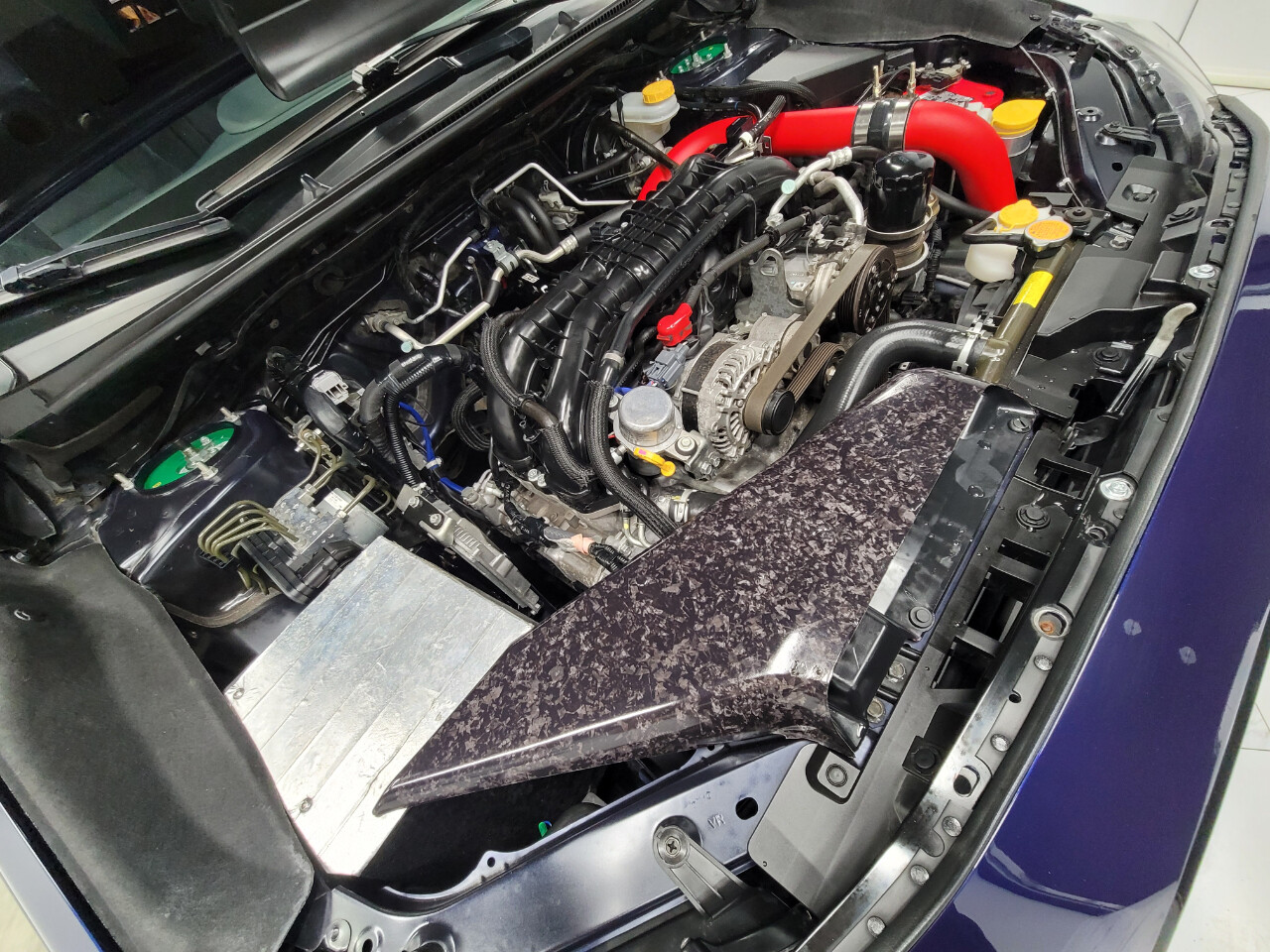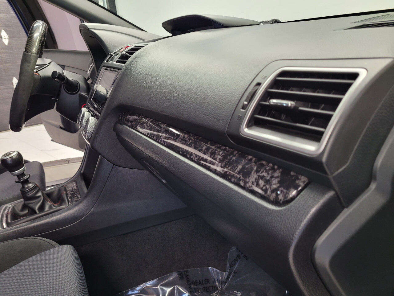6 speed manual transmission, carbon fiber steering wheel, front mount intercooler, carbon fiber wrapped roof, upgraded top motor mount, cai, aftermarket wheels, upgraded exh, upgraded headlights, and Optima red top battery.
