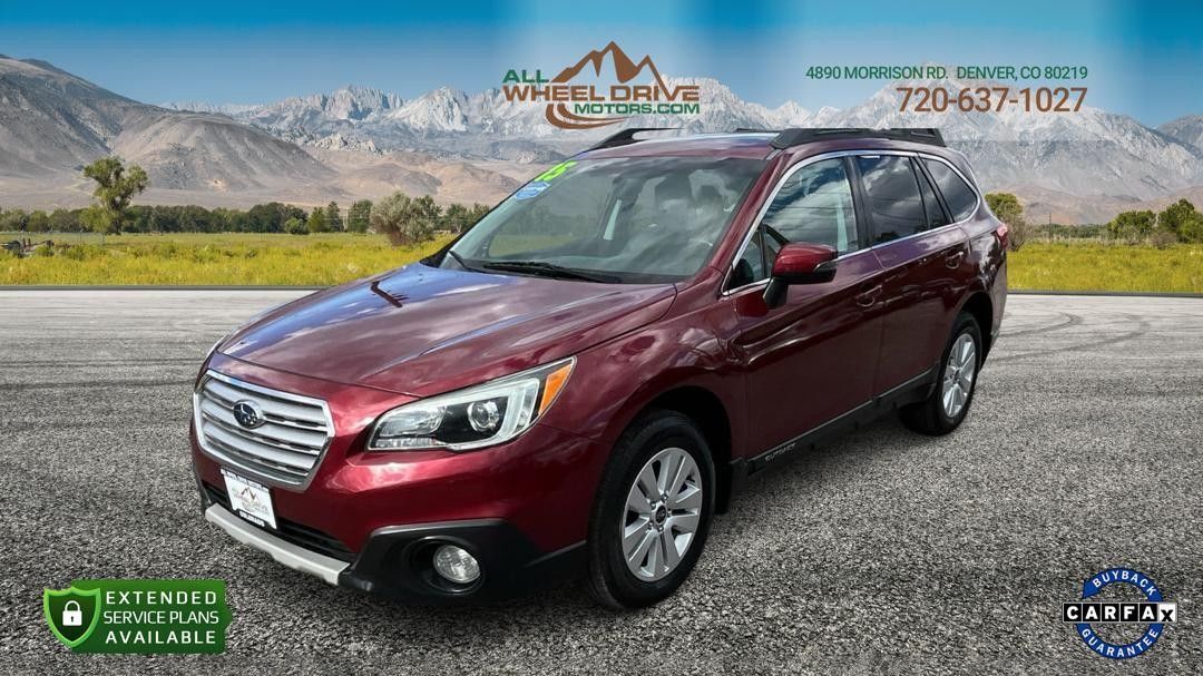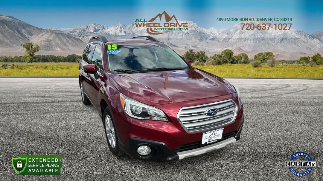 Discover this 2015 Subaru Outback 2.5i Limited, perfect for Denver's adventurous lifestyle. This all-wheel-drive beauty features a striking Venetian Red Pearl exterior and a sleek slate black leather interior. Powered by a 2.5L engine with 170HP, its fully loaded for comfort and performance.