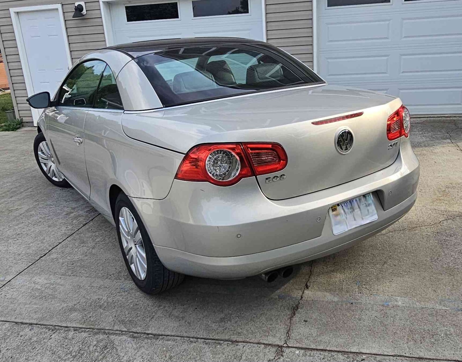 This VW EOS 2.0 is fun to drive. The Turbo engine will get you up to speed quickly. It has a sunroof/moonroof/skyview window and it's a convertible all in one. It has a couple minor dings and dents (about four) and it has a small flap that doesn't close when the top is down (see last picture). The tires have good life left. the interior is clean. The title is clean, too. The check engine light is on, but it still drives fine.