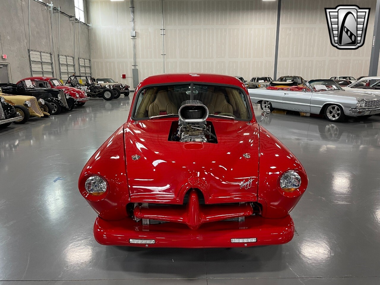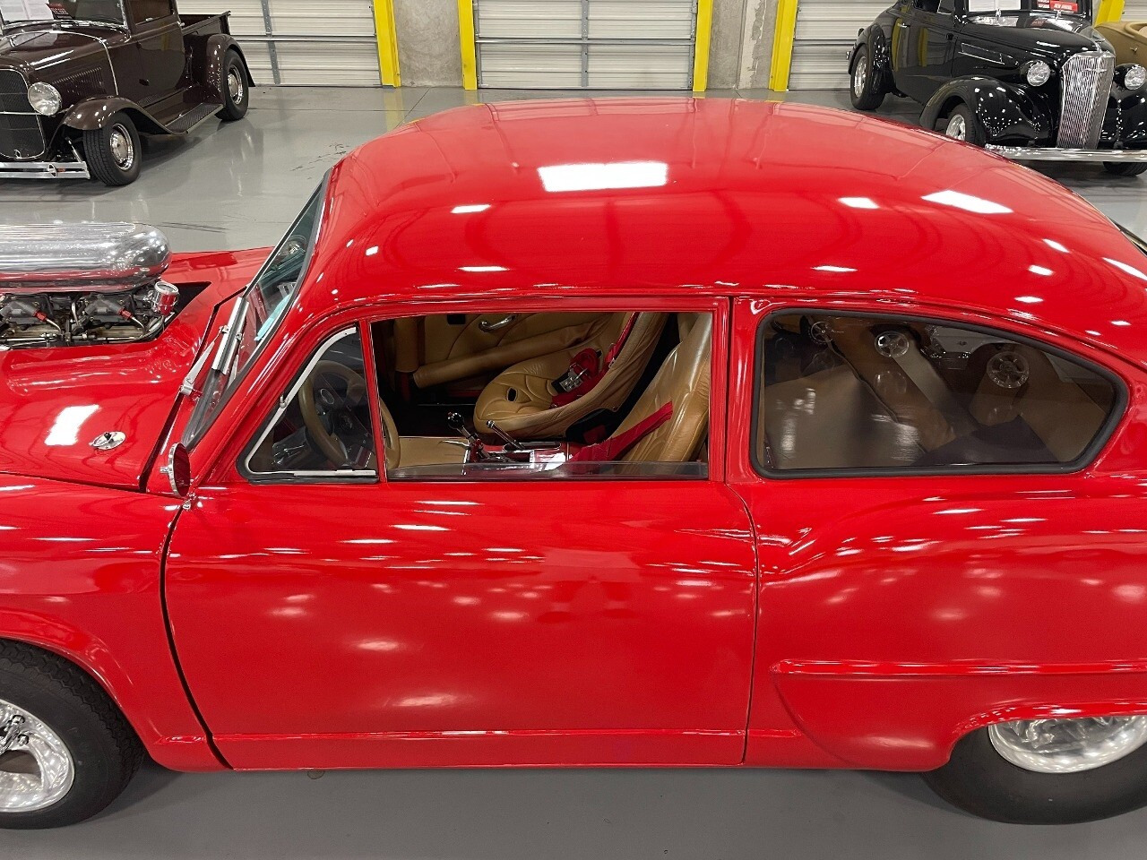 Gateway Classic Cars of San Antonio/ Austin is proud to present this 1952 Kaiser-Frazer Henry J finished in red. The Henry J might have been about offering a reasonable economy car to the masses, but this one adds much more power, rumble, and comfort to this custom build. Under the hood will be your favorite upgrade. The original low-displacement motor was changed in favor of a mighty 502 CID V8 engine with a Weiand 671 Supercharger that is paired with a smooth-shifting TH400 Phoenix Transmission automatic transmission with a 2000 stall converter, promising thrilling rides every time you get behind the wheel. The motor has been given a few extras to help handle the power with the help of GM aluminum heads, Manley valves, Isky springs, titanium retainers, Comp cam, Meziere electric water pump, MSD ignition and two Holley 750CFM carburetors. The rear end has been changed out for a 4-linked Ford 9" with 3.70 gears and a Detroit locker. This classic vehicle is not only about power and performance but also about the ultimate comfort and convenience. It comes equipped with air conditioning to keep you cool during those hot summer drives. The power locks and power windows add a touch of modern convenience, while the power steering ensures smooth and effortless maneuverability. Safety is well taken care of with the roll cage, racing harness seat belts, and Wilwood power disc brakes that provide stopping power. The tilt steering wheel allows you to adjust the steering to your most comfortable position for those long drives. Experience the charm of a classic with the modern comfort of the 1952 Kaiser-Frazer Henry J. With its powerful engine, sophisticated design, and an array of convenient features, this is a car that truly stands out..