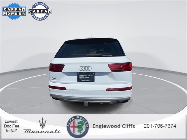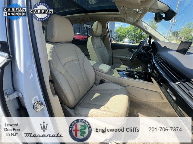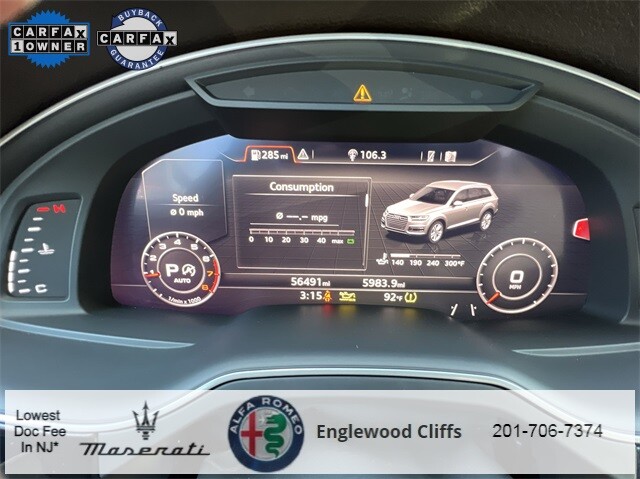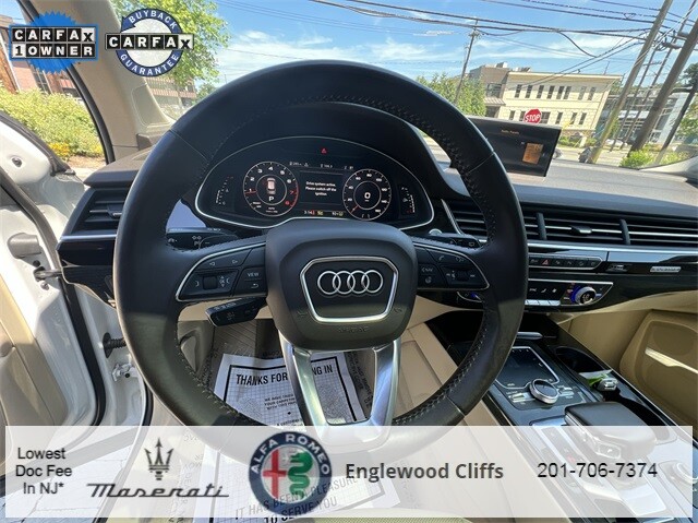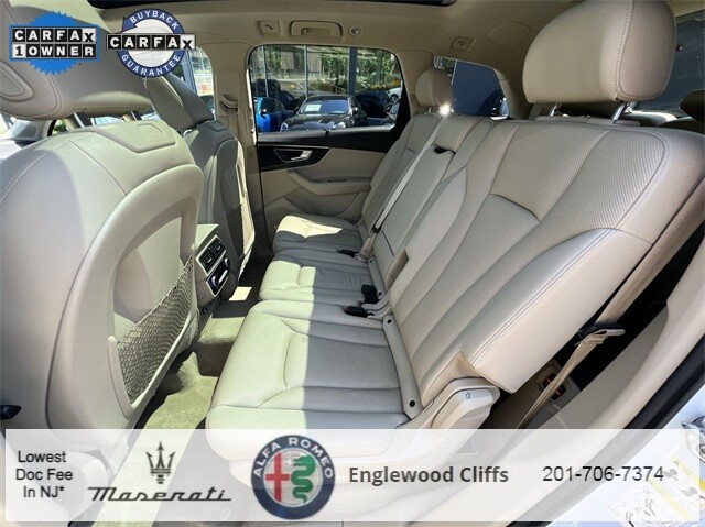 This Q7 55 Premium Plus is nicely equipped with Cold Weather Package (3-Spoke Multifunction Steering Wheel w/Paddles, Black Rubber All-Weather Floor Mats (Set of 4), and Heated Rear Seats), Convenience Package, Driver Assistance Package (Audi Active Lane Assist, Audi Adaptive Cruise Control w/Traffic Jam Assist, Audi Park Steering Assist, Audi Pre Sense Front, High-Beam Assistant, and Traffic Sign Recognition), LED Interior Lighting Package, Premium Plus Package (3D Bose Surround Sound System, Audi Virtual Cockpit, LED Headlights w/Dynamic Indicators, and Topview Camera System), Warm Weather Package (4-Zone Automatic Climate Control, Driver & Passenger Front Seats w/Ventilation, and Rear Door/Side Windows & Tailgate Sunshades), ABS brakes, Alloy wheels, AM/FM radio: SiriusXM, Audi smartphone interface (Apple CarPlay/Android Auto), Auto-dimming Rear-View mirror, Automatic temperature control, Brake assist, CD player, Compass, Electronic Stability Control, Exterior Parking Camera Rear, Four wheel independent suspension, Front dual zone A/C, Fully automatic headlights, Garage door transmitter: HomeLink, Heated door mirrors, Heated Front Bucket Seats, High intensity discharge headlights: Xenon plus, Illuminated entry, Low tire pressure warning, Memory seat, Navigation System, Outside temperature display, Panic alarm, Power door mirrors, Power driver seat, Power Liftgate, Power moonroof, Power passenger seat, Power steering, Power windows, Radio data system, Radio: Audi MMI Navigation Plus, Rain sensing wipers, Rear air conditioning, Rear fog lights, Rear window defroster, Rear window wiper, Remote keyless entry, Security system, Speed control, Speed-sensing steering, Steering wheel memory, Steering wheel mounted audio controls, Traction control, Turn signal indicator mirrors, 10 Speakers, 3.204 Axle Ratio, 3rd row seats: bench, 4-Wheel Disc Brakes, Air Conditioning, Bumpers: body-color, Delay-off headlights, Driver door bin, Driver vanity mirror, Driver's Seat Mounted Armrest, Dual front impact airbags, Dual front side impact airbags, Emergency communication system: Audi connect CARE, Front anti-roll bar, Front Bucket Seats, Front fog lights, Front reading lights, Heated front seats, Leather Seating Surfaces, Leather Shift Knob, Leather steering wheel, Navigation system: MMI Navigation plus, Occupant sensing airbag, Overhead airbag, Passenger door bin, Passenger seat mounted armrest, Passenger vanity mirror, Rear anti-roll bar, Rear reading lights, Rear seat center armrest, Roof rack: rails only, Split folding rear seat, Spoiler, Tachometer, Telescoping steering wheel, Tilt steering wheel, Trip computer, Variably intermittent wipers, and Wheels: 19 5-V-Spoke Design.