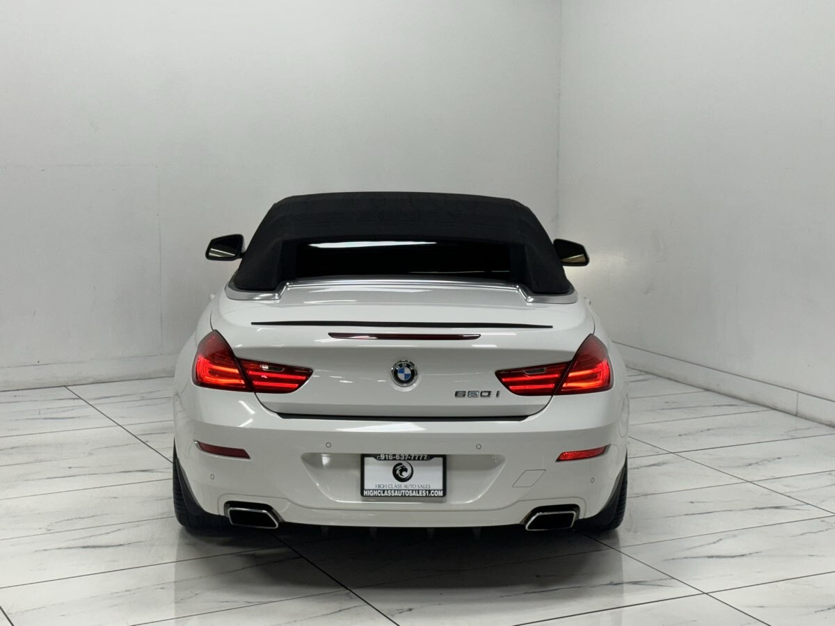 A breath of fresh air will enhance your day with our 2012 BMW 6 Series 650i Convertible displayed in sleek Alpine White. Powered by a Twin TurboCharged 4.4 Liter V8 that offers 400hp while connected to a paddle-shifted 8 Speed Automatic gearbox. This Rear Wheel Drive team sends our composed 650i to 60mph in 5 seconds while scoring nearly 23mpg on the open road. Our convertible 650i has sleek 19-inch wheels and a power soft-top with a glass rear window that can be raised and lowered independently. Retract the top in any season and you will feel a rush that fills your spirit. Inside the lavish 650i cabin - find the attention to detail with an intuitively designed dashboard. Relax in ultra-comfortable sculpted heated/cooled seats that feature a heat-reflective leather and 16-way power adjustments. You'll have a seamless connection to your digital world thanks to our splendid voice-controlled iDrive electronics interface with Bluetooth - a nine-speaker sound system - and full-color navigation. Packed with safety features from BMW that include a solid build - ABS - a rear camera - airbags and more to serve your needs. Our 6 Series will capture onlookers' attention and make you smile a little more - but it's not just about power and prestige. BMW's reputation for safety holds true with this well-engineered machine. Save this Page and Call for Availability. We Know You Will Enjoy Your Test Drive Towards Ownership!