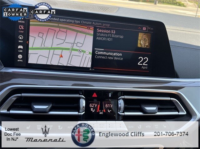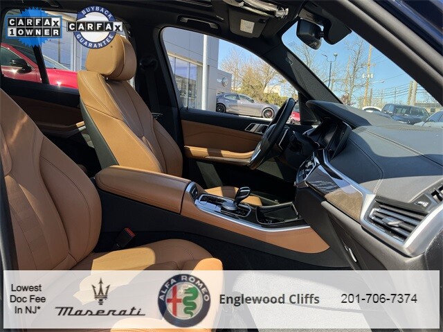 This X5 xDrive40i is nicely equipped with Connected Package Pro, Parking Assistance Package (Active Park Distance Control, Drive Recorder, Parking Assistant Plus, Rear-View Camera, and Surround View w/3D View), Premium Package (DISC) (4-Zone Automatic Climate Control, Enhanced USB & Bluetooth, Gesture Control, harman/kardon Surround Sound System (DISC), Head-Up Display, Remote Engine Start, WiFi Hotspot, and Wireless Charging), Cognac Leather, Apple CarPlay & Android Auto Compatibility, Auto High-beam Headlights, Auto tilt-away steering wheel, Auto-dimming door mirrors, Auto-dimming Rear-View mirror, Automatic temperature control, BMW Assist eCall, BMW TeleServices, Brake assist, Compass, ConnectedDrive Services, Electronic Stability Control, Exterior Parking Camera Rear, Four wheel independent suspension, Front dual zone A/C, Fully automatic headlights, Garage door transmitter, Head restraints memory, Heated door mirrors, Heated Front Seats w/Armrests & Steering Wheel, Hi-Fi Sound System, Illuminated entry, Live Cockpit Pro w/Navigation, Lumbar Support, Memory seat, Navigation System, Outside temperature display, Overhead airbag, Panic alarm, Power door mirrors, Power driver seat, Power moonroof, Power passenger seat, Power steering, Power windows, Radio data system, Rain sensing wipers, Rear air conditioning, Rear window defroster, Rear window wiper, Remote keyless entry, Security system, SensaTec Upholstery, Speed control, Speed-sensing steering, Steering wheel memory, Steering wheel mounted audio controls, Traction control, Turn signal indicator mirrors, 10 Speakers, 4-Wheel Disc Brakes, ABS brakes, Air Conditioning, Alloy wheels, AM/FM radio: SiriusXM with 360L, AM/FM Stereo, Apple CarPlay, Axle Ratio: 3.385, Bumpers: body-color, Delay-off headlights, Driver door bin, Driver vanity mirror, Dual front impact airbags, Dual front side impact airbags, Emergency communication system: BMW Assist eCall, Front & Rear Heated Seats, Front anti-roll bar, Front Bucket Seats, Front Center Armrest, Front fog lights, Front reading lights, Genuine wood console insert, Genuine wood dashboard insert, Genuine wood door panel insert, Heated Front Seats, Heated front seats, Knee airbag, Leather Shift Knob, Leather steering wheel, Low tire pressure warning, Occupant sensing airbag, Passenger door bin, Passenger vanity mirror, Power adjustable front head restraints, Power Front Seats, Rear