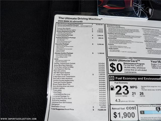 MSRP $75K LOADED 2022 BMW X5 SDRIVE40I EXECUTIVE PACKAGE. PHYTONIC BLUE METALLIC EXTERIOR WITH IVORY WHITE EXTENDED MERINO LEATHER. ONE OWNER CLEAN CARFAX, CLEAN AUTOCHECK AND CLEAN TITLE. LOADED EXEUCTIVE PACKAGE, DRIVING ASSISTANCE PROFESSIONAL PACKAGE, LUXURY SEATING PACKAGE, PARKING ASSISTANCE PACKAGE, CLIMATE COMFORT PACKAGE, NAVIGATION, CAMERA, HEAD UP DISPLAY, GESTURE CONTROL, HEATED FRONT AND REAR SEAT, HEATED STEERING WHEEL, 21S, GLASS CONTROLS, SHADES AND MUCH MORE…