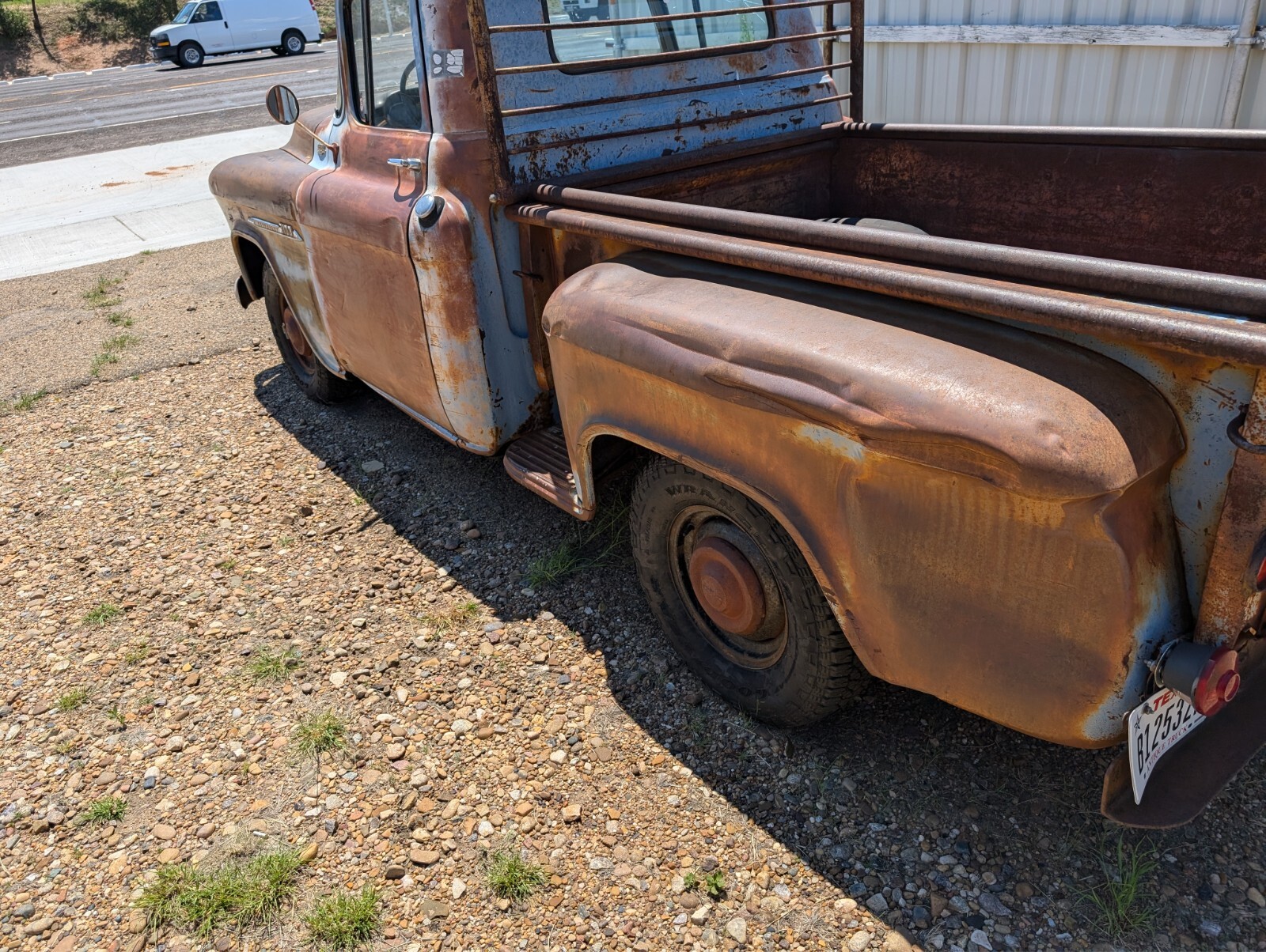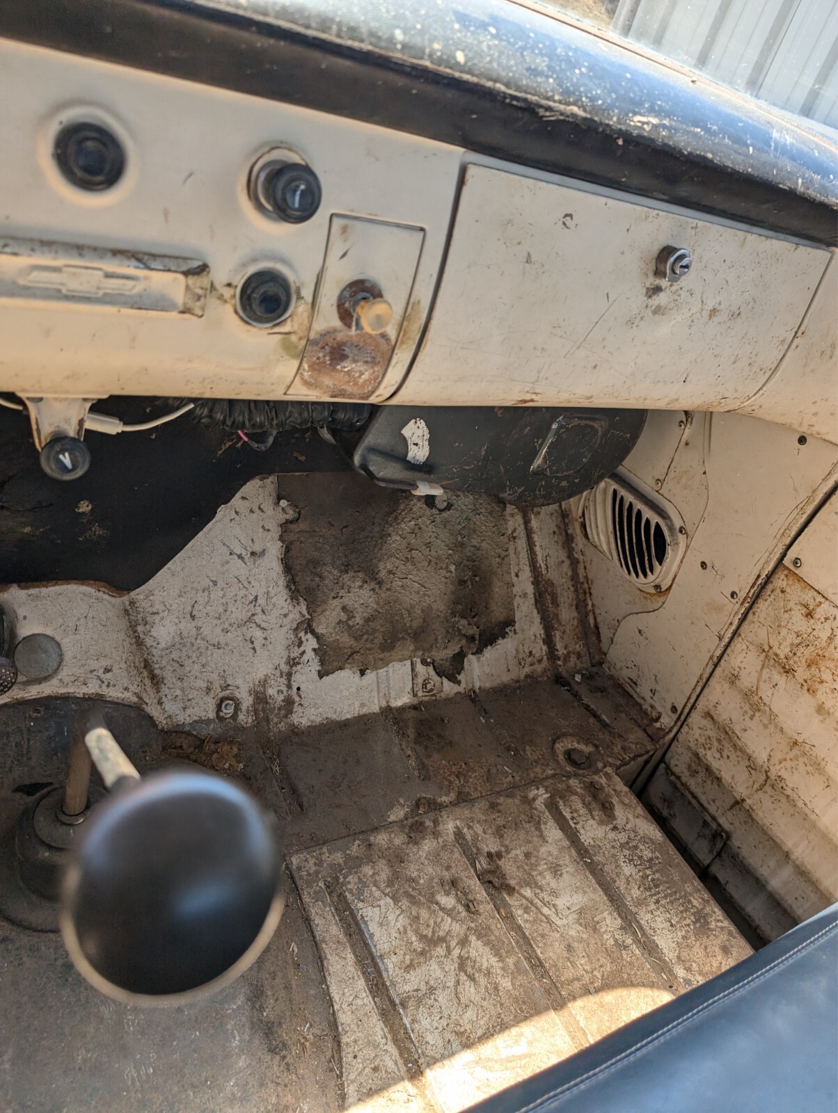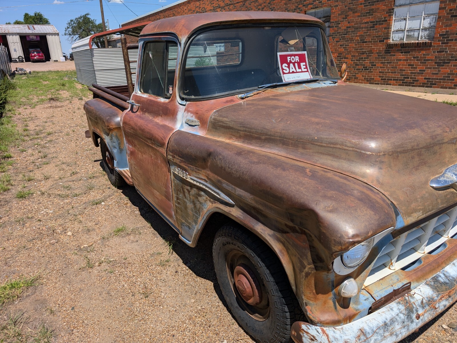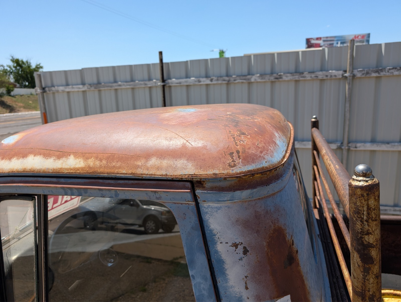 This is a all original truck lived it whole life within 50 miles of where it was purchased  on a ranch in the Texas panhandle.I acquired it a few years ago with the intent to restore for my daughter    never got around to it  has minimal rust in the cab corners  and a spot on the door;  it has about  10000 miles on the overhaul the original owner had done  .it has cracked glass   and the wipers only kind of work ,vacuum wipers .got a leak in a wheel cylinder so you have add brake fluid every now and then just a great truck new tires