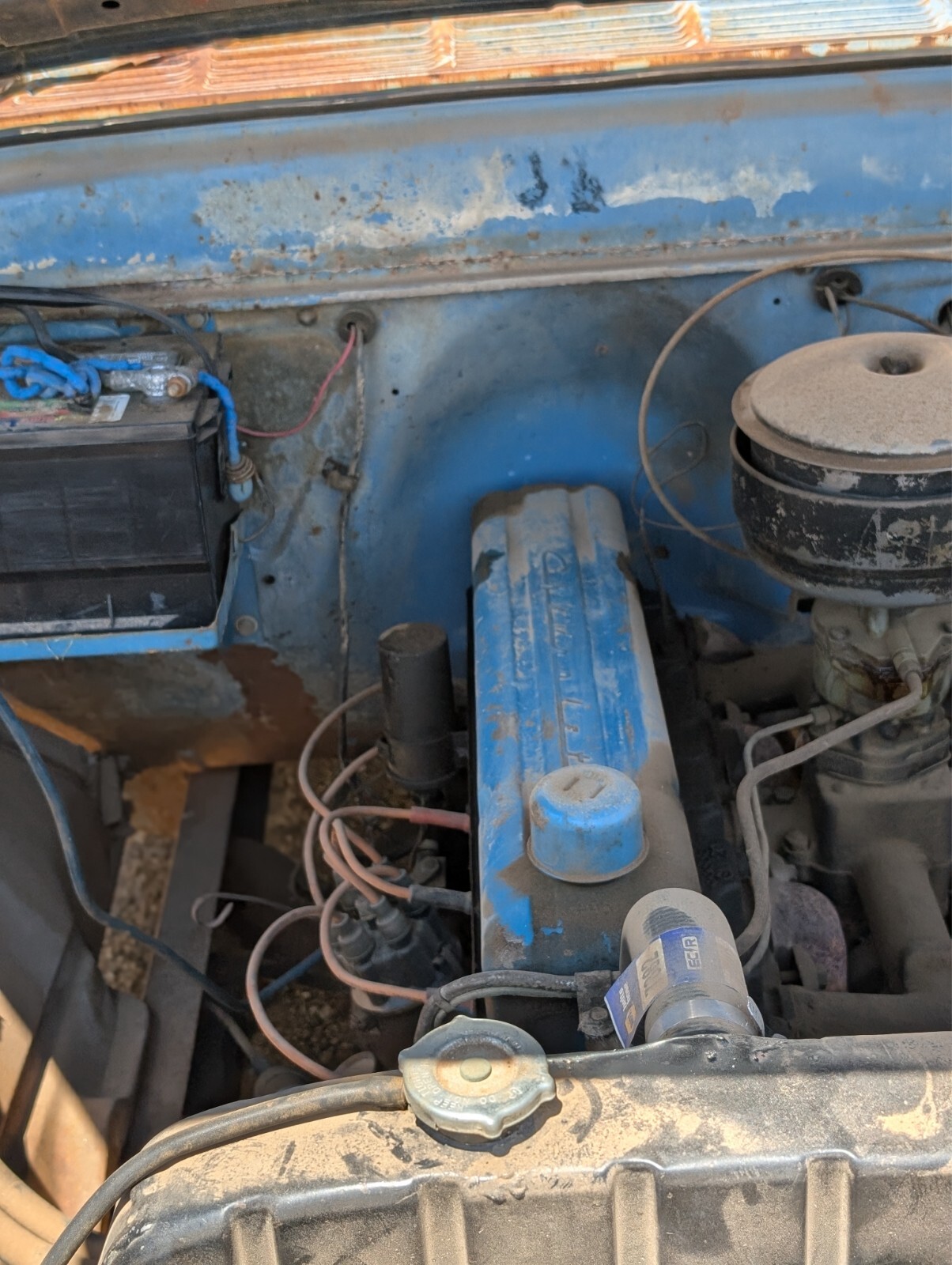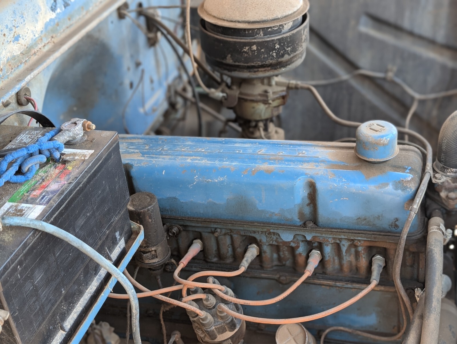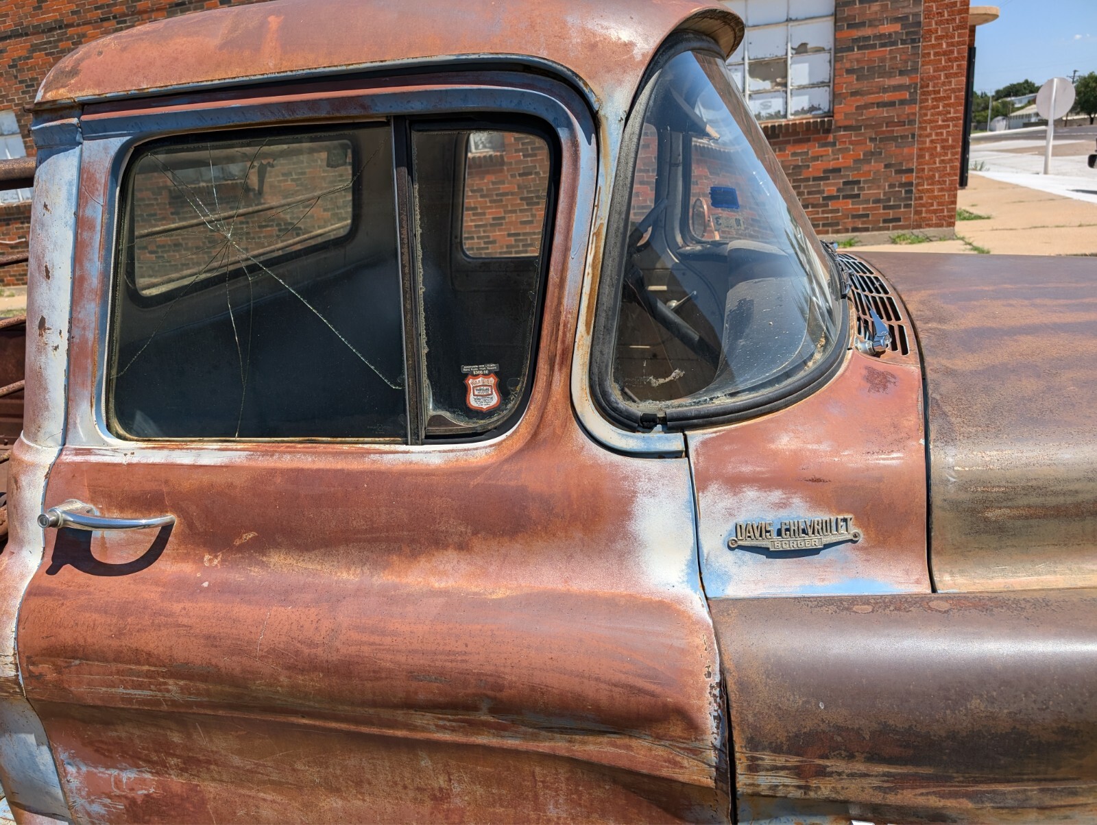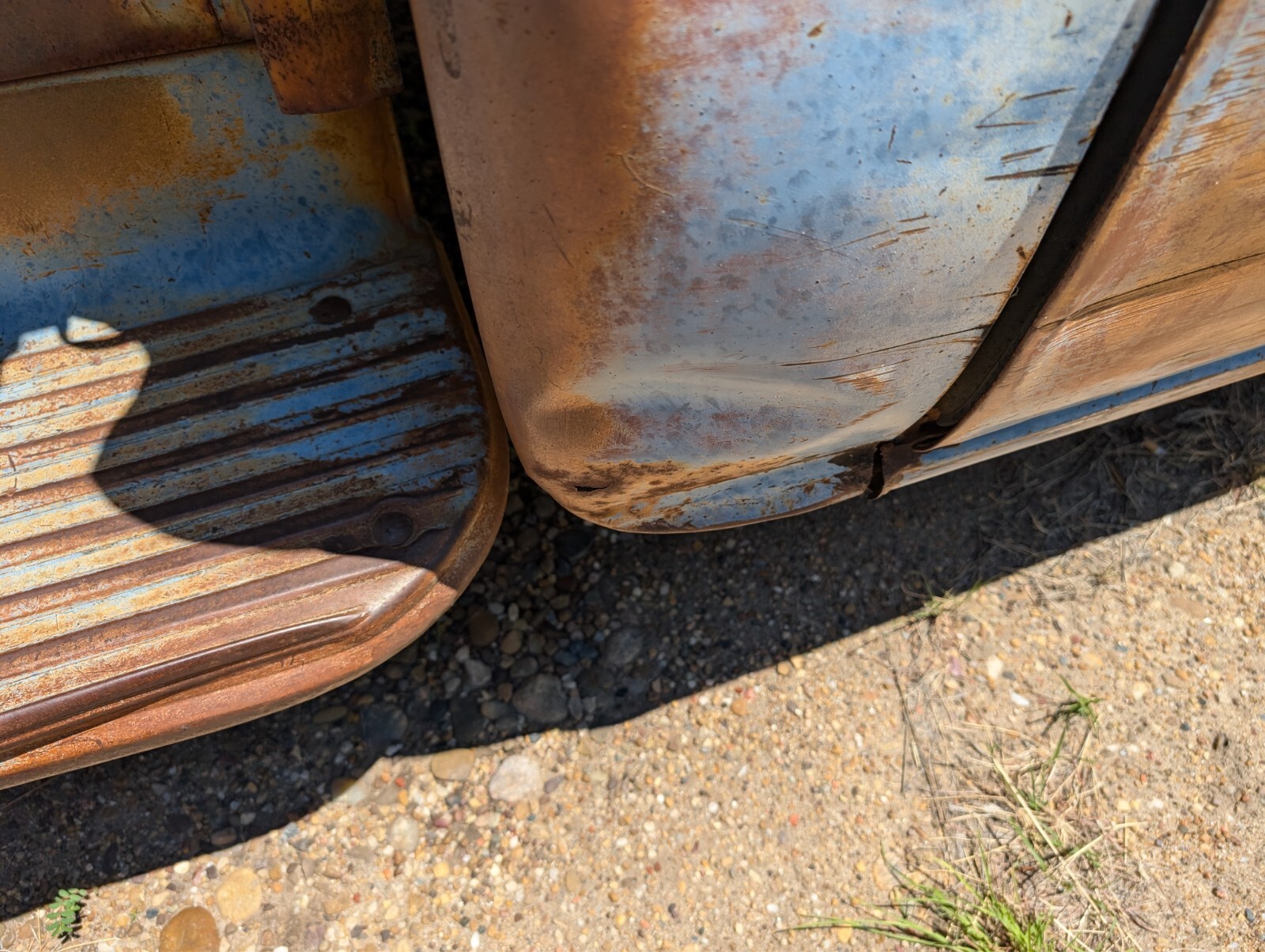 This is a all original truck lived it whole life within 50 miles of where it was purchased  on a ranch in the Texas panhandle.I acquired it a few years ago with the intent to restore for my daughter    never got around to it  has minimal rust in the cab corners  and a spot on the door;  it has about  10000 miles on the overhaul the original owner had done  .it has cracked glass   and the wipers only kind of work ,vacuum wipers .got a leak in a wheel cylinder so you have add brake fluid every now and then just a great truck new tires