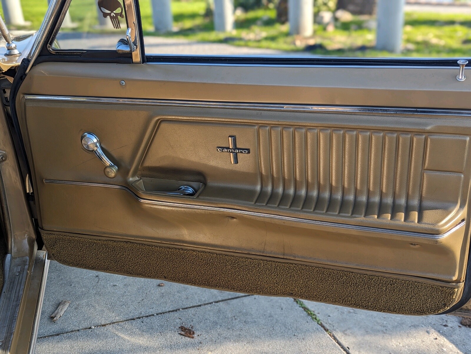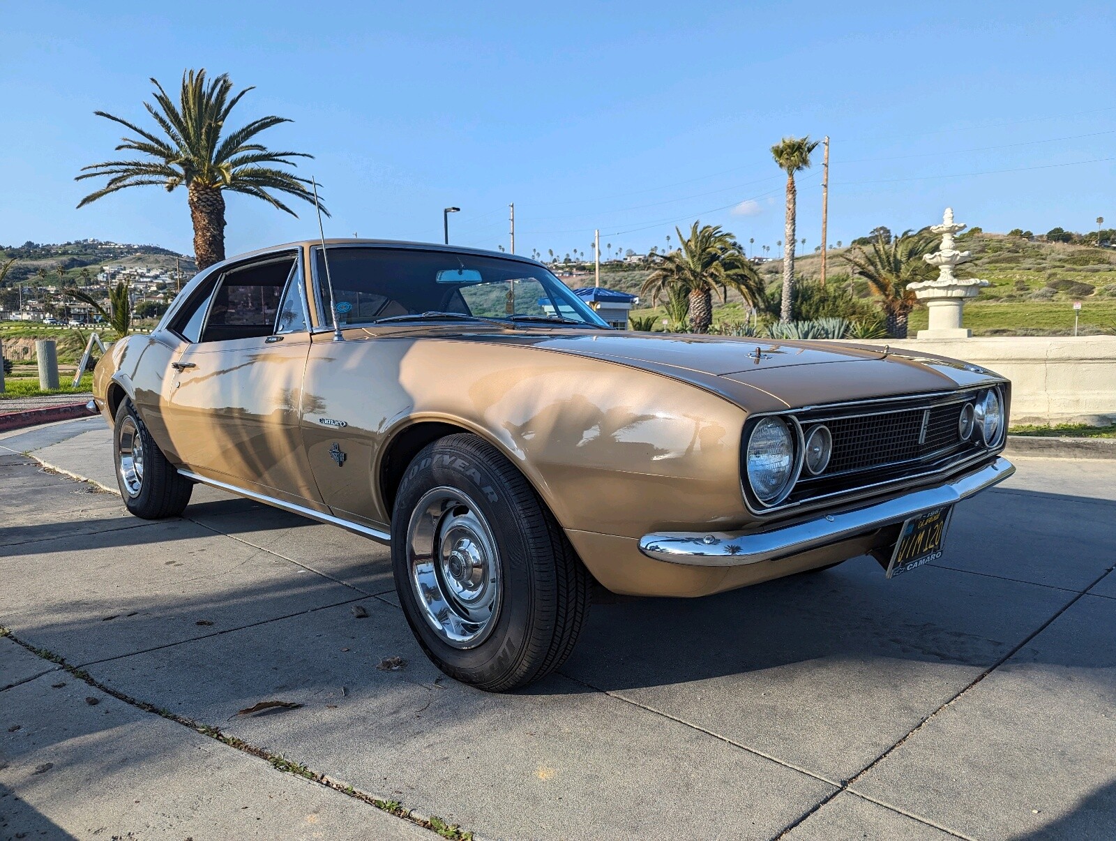 1967 Camaro sport coupe original matching 327, Los Angeles car with no rust, this is a second owner car. I bought it 8 years ago from the original owner, it has the Z21 style trim with center console, bucket seats, rare fold down rear seats with it's original Granada gold exterior/interior, power steering and power brakes. The car has service records and receipts stored in a large binder. Many new parts have been added to this Camaro. New: - 4 barrel carb - intake manifold - valve cover gaskets - radiator - alternator - tires - shocks - engine mounts - battery - fan blade The Camaro runs and drives great with plenty of thumbs up on the way. I also have the original 2bbl carburator, intake manifold, and original valve covers, with 2 keys. If you're looking for an original car this is it.Vehicle Details