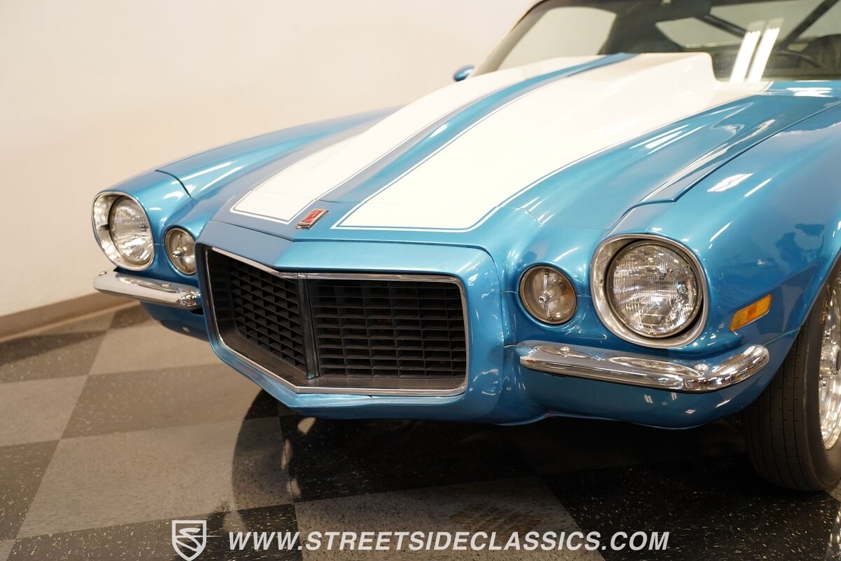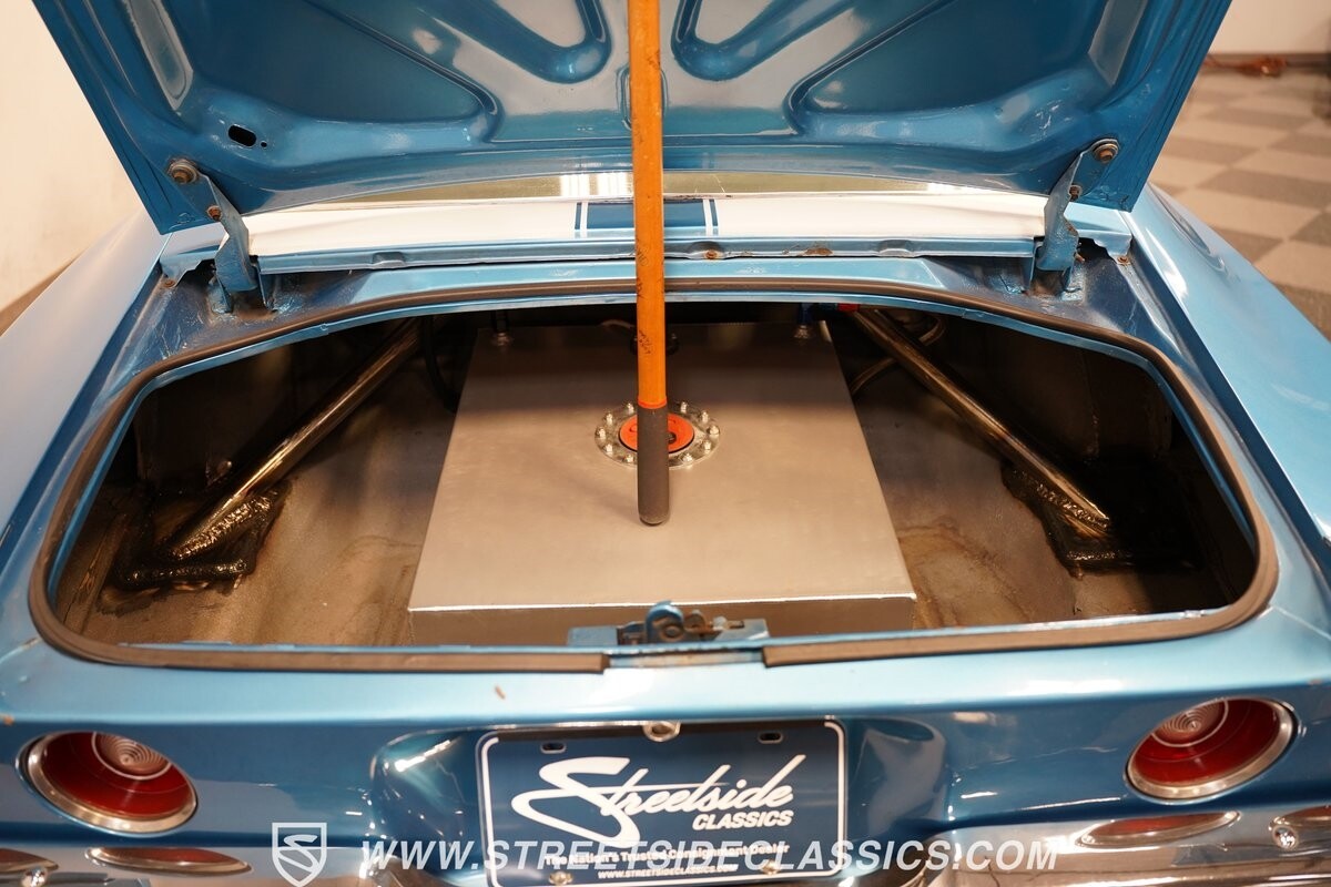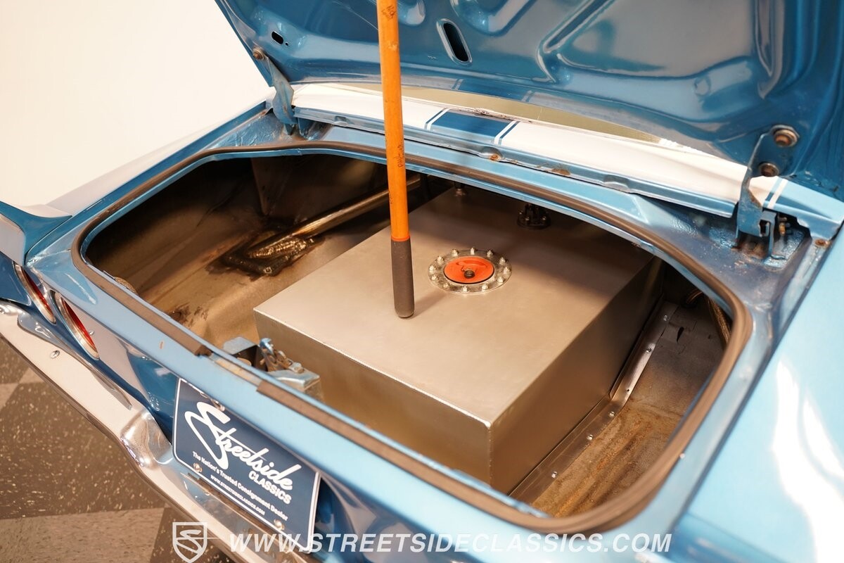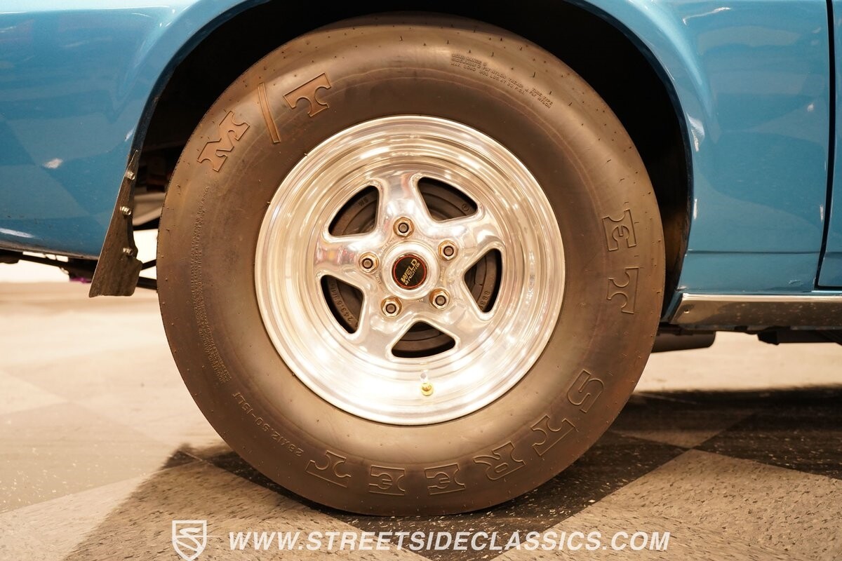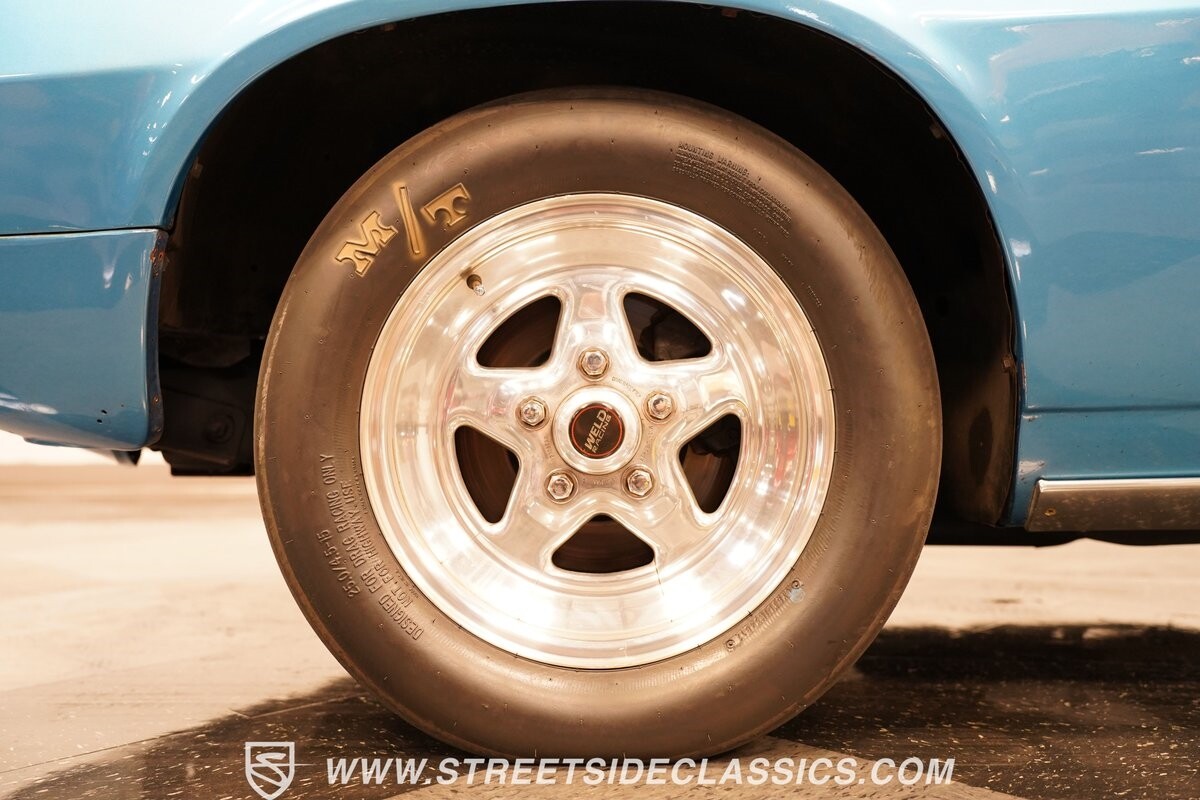 The power of this Camaro is understood in the way you hear it often even before you see it. But this coupe still likes to respect its classic Camaro history with the proper RS-style split-bumper front end, three-piece rear spoiler, and painted Z/28 racing stripes. Even the shade of blue looks correct for 1973. We're not saying that this quarter-mile king is trying to go incognito, but as you look through this full pro street package, it's nice to see the right history mixed in with the street/strip owning attitude. So if you're looking for a competition car with plenty of vintage flair, this is the one. Call today!!!