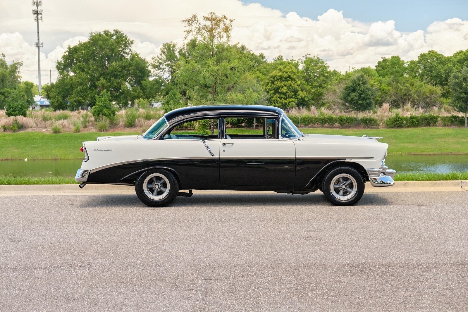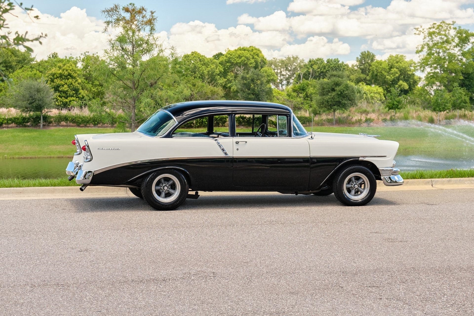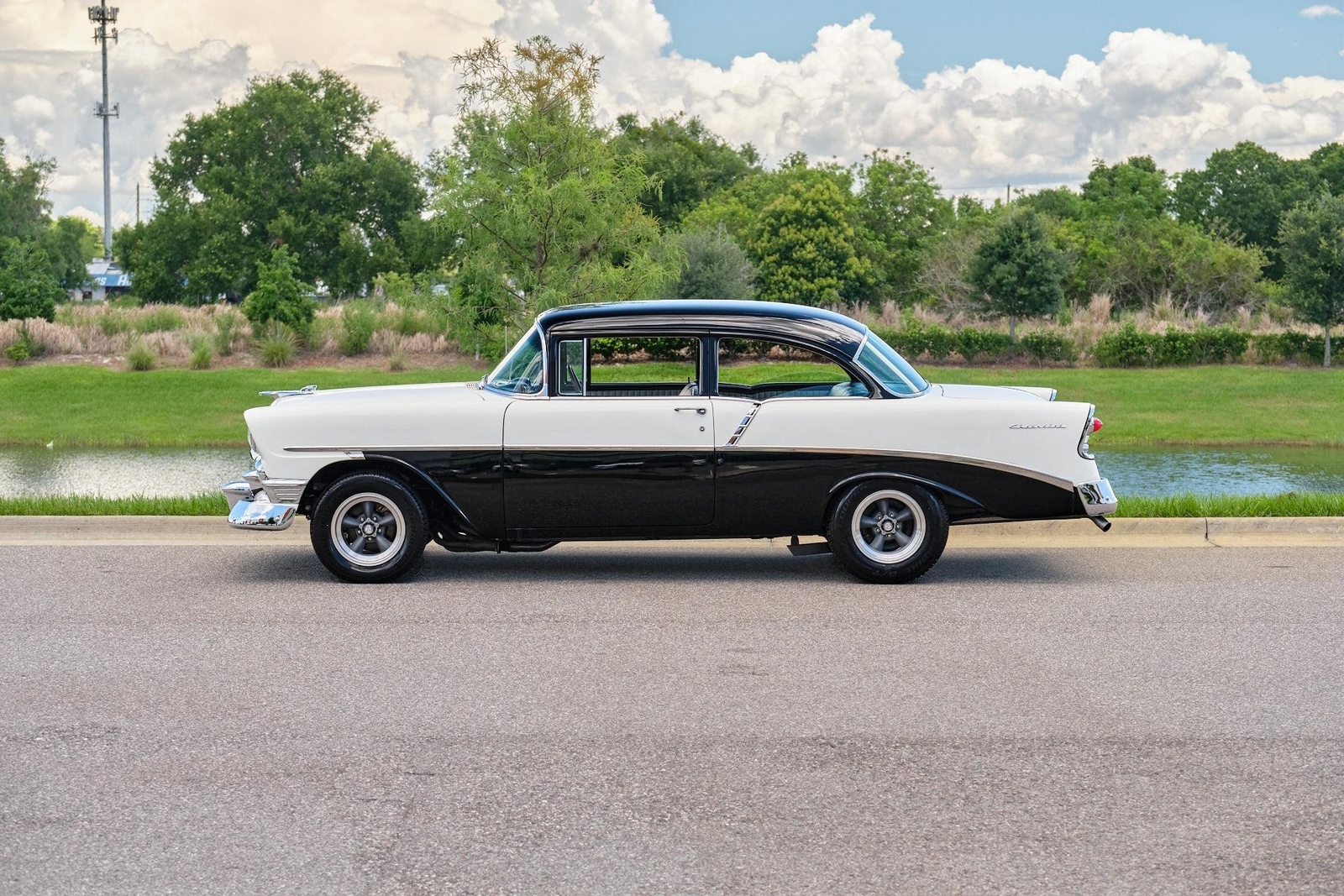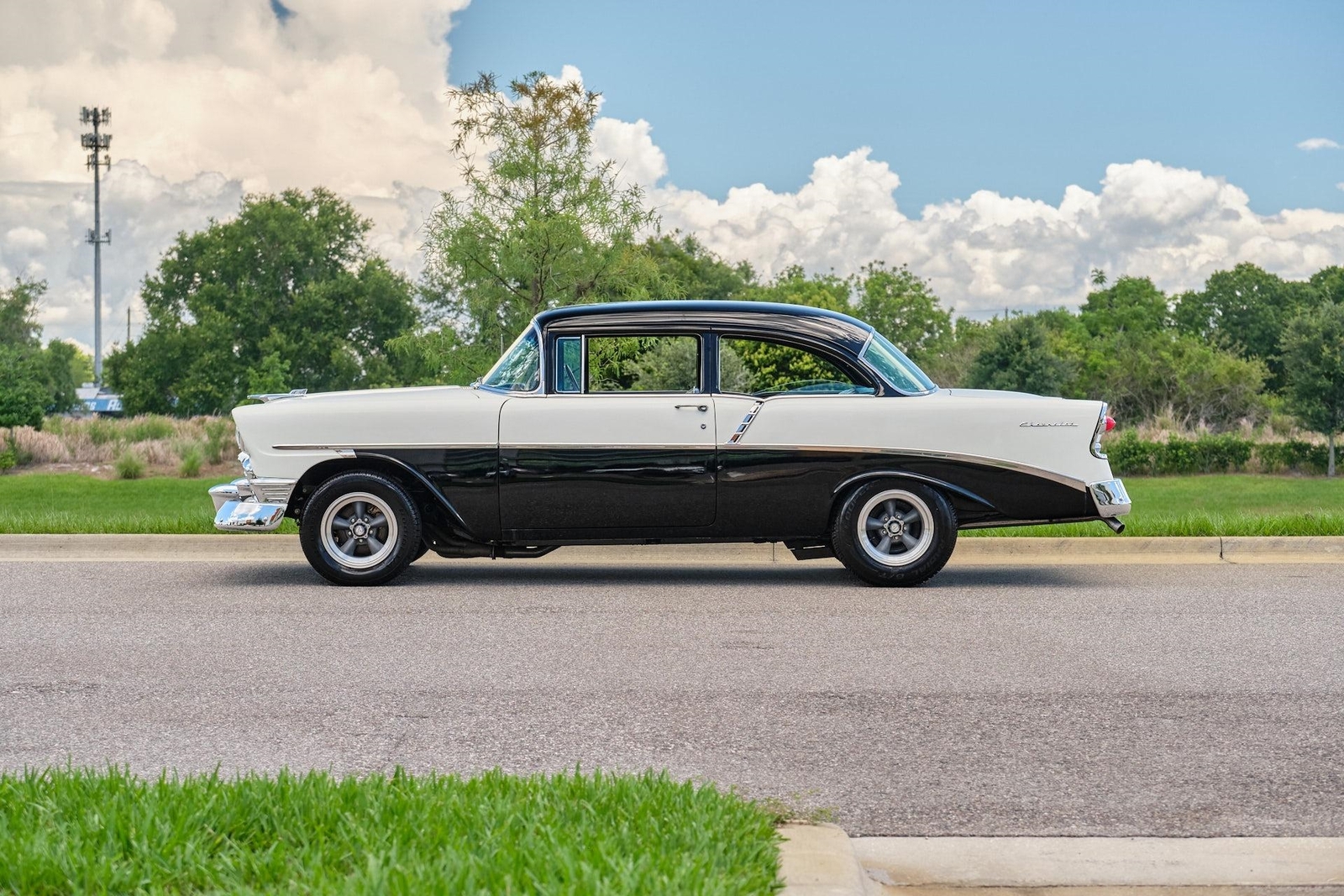 1956 Chevrolet 210 2 Door Post Freshly Restored with very little mileage since restoration was completed, 327 V8 Engine with a Holley 4 Barrel Carburetor, Muncie M20 4 Speed Manual Transmission with Hurst Shifter, Great Sounding Dual exhaust with Headers, Stunning color combination of Black and white with matching Black and White Interior. 15 American Racing Torque Thrust II Wheels with newer tires, Power Front Disc Brakes, Sport Steering Wheel, Very Clean Floors and Trunk. Runs and Drives Great! Excellent Condition inside and out! This car was just recently completed with restoration. This freshly restored 1956 Chevrolet 210 2-Door Post is a timeless classic, beautifully finished and ready to impress both on the road and at car shows. With very little mileage since its comprehensive restoration, this vehicle is in excellent condition inside and out. **Engine and Performance:** - **327 V8 Engine:** Equipped with a Holley 4-barrel carburetor, delivering robust power and performance. - **Muncie M20 4-Speed Manual Transmission:** Paired with a Hurst shifter for a smooth and engaging driving experience. - **Great Sounding Dual Exhaust:** Featuring headers for an impressive and powerful exhaust note. **Exterior and Interior:** - **Stunning Color Combination:** The sleek black and white exterior is complemented by a matching black and white interior, offering a classic and stylish look. - **15 American Racing Torque Thrust II Wheels:** Fitted with newer tires for excellent grip and performance. - **Power Front Disc Brakes:** Ensuring reliable stopping power. - **Sport Steering Wheel:** For a comfortable and sporty driving feel. - **Very Clean Floors and Trunk:** Reflecting the meticulous care taken during the restoration. **Highlights:** - **Runs and Drives Great:** This car is not only a showpiece but also a pleasure to drive. - **Excellent Condition:** Both inside and out, showcasing the quality of the recent restoration. This 1956 Chevrolet 210 2-Door Post is a stunning example of classic American automotive craftsmanship, blending vintage charm with modern reliability. Whether you're looking for a show car or a weekend cruiser, this Chevy is ready to deliver a top-notch experience. While we do our best to provide the highest quality muscle cars with an honest and reliable description and realize the importance of transparency when selling vehicles. That being said, we have not built, modified, changed or personally owned this vehicle. Whether this vehicle is consigned or owned by Past & Present Motor Cars we do not know the vehicles complete history since new. We want to be clear and try to answer any questions our customers might have prior to purchasing. Additionally, we not only welcome but we encourage 3rd party independent inspections. Please inquire prior to purchase to make sure the advertised vehicle has not already been sold. We list our vehicles on multiple websites and a vehicle can sell at any time. If a customer chooses to purchase sight unseen (many of our customers choose this option) the customer accepts the vehicle AS IS and WHERE IS and understands we cannot address concerns after purchase. For this reason, it's important all concerns are addressed prior to purchase. We make every effort to present accurate and reliable information, but use of this information is voluntary, and should only be deemed reliable after an independent review of its accuracy, completeness, and timeliness. It is the sole responsibility of the customer to verify the existence of options, accessories and the vehicle condition before time of sale. Financing is Available with low rates and Vehicle Shipping is available from our Showroom to your Garage. A Classic Car Warranty is Available for Purchase from a 3rd Party. Please speak to our Sales Associate or Company Representative for more information. Our team is working and available anytime by Phone or Text for your convenience at 407-559-7759. Thank you for your interest!