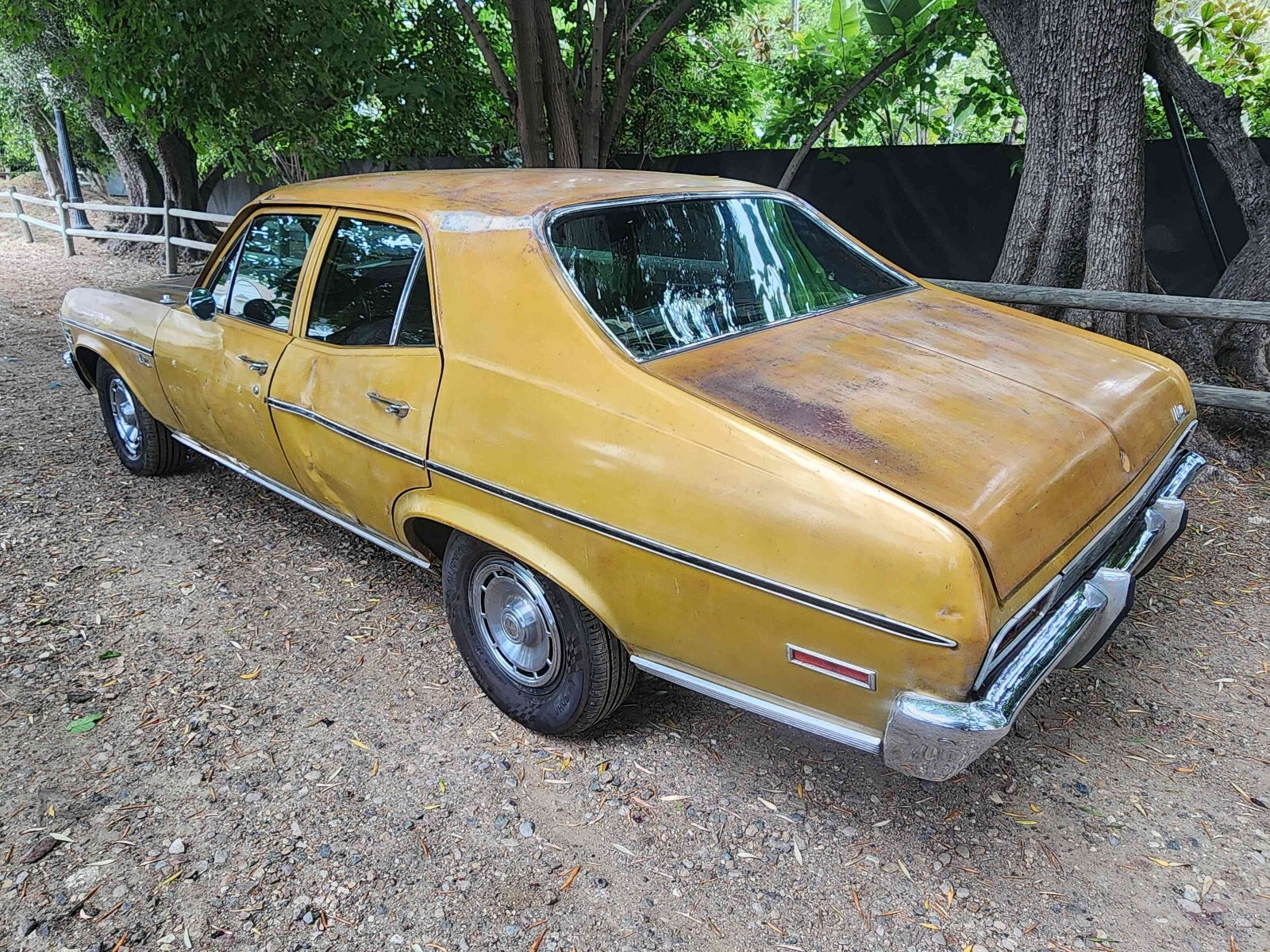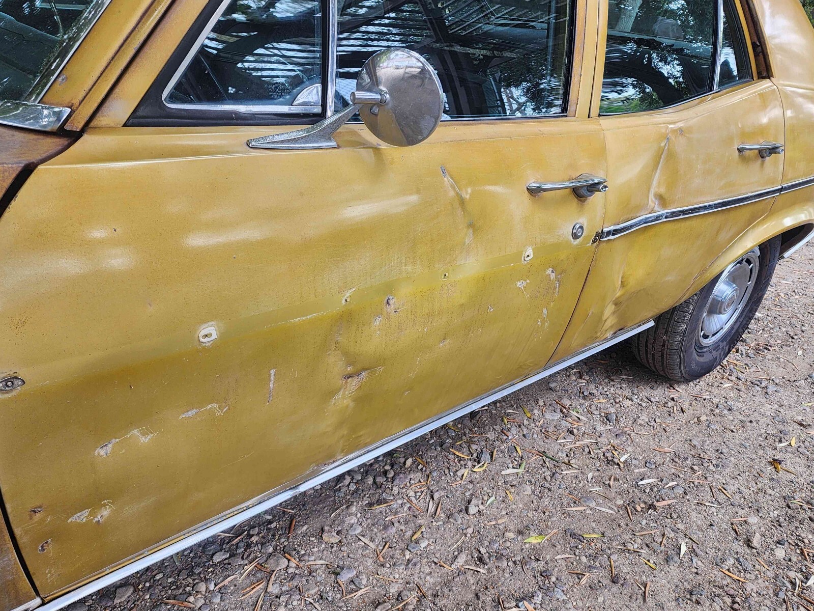 automatic transmission, power steering, front disc brakes, FACTORY AIR CONDITIONING, front and rear bumper guards, tinted glass, deluxe wheel covers. We Installed 4 new tires, battery, water pump, we went through the front brakes, all the lights work. We have a video of the engine running and the car driving. The interior needs to be reupholstered. The body is pretty good for its age. The floor on the driver's side needs to be repaired. We even have the owners manual in the glove box and the original build sheet. It has a clean California title. All of these comments are as of today and there is no guarantee they will be the same in the future. This is a project restoration vehicle. It will need to be completely restored before it goes back on the road. We are selling it "AS-IS" with no warranty stated or implied. This vehicle has great potential to be a beauty once again. If we can answer any questions, please let us know. We are happy to assist with shipping arrangements if needed. Thank you for looking.
