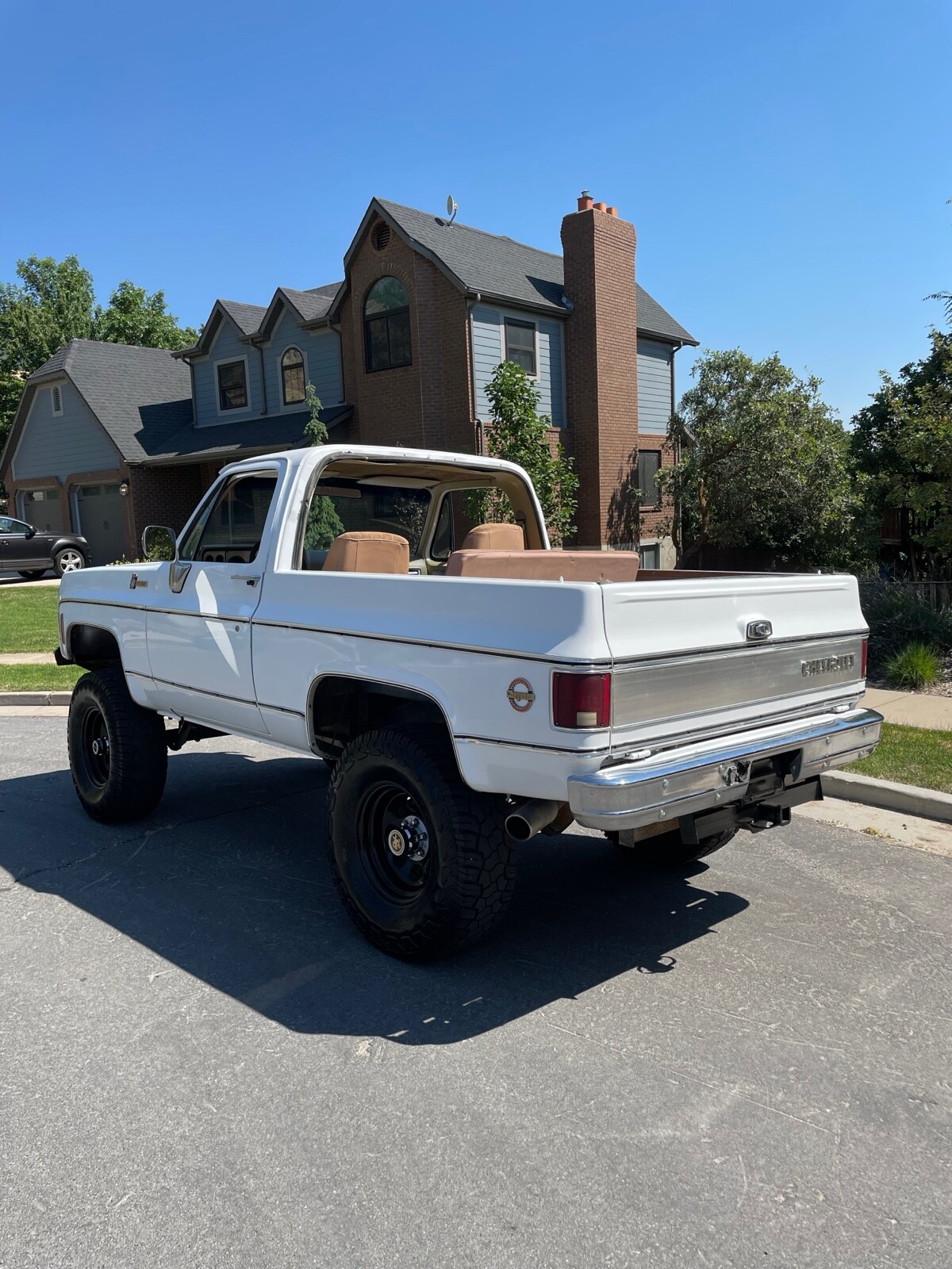 1979 K/5 Blazer Jimmy square body 79 with sbc 350 350/Trans. NP 203 transfer case w/ part time kit and manual hubs. Super nice Blazer. We purchased this in a package deal from a gentleman in Idaho. It was his daily driver up until 2017 when he put it in storage. Blazer had a new paint Job and lift installed prior. Floors are 99.9% perfect. Runs and drives as it should. gets a lot of looks out and about in our Neighborhood, we just used it in the 4th parade. we’ve only put about 20 miles on it. Need to let this one go as we’re wanting to build the other vehicle purchased in the deal. Blazer will need front driveline the gentleman had it rebuilt and lengthened but was unable to locate it. Blazer has runs in the paint, would benefit from a cut and buff imo. It was on his list of things todo just did not get to it. Blazer has a drip from the speedometer cable needs a seal and O-ring pretty typical leak. Also blinkers aren’t working and a few gauges need looked at. Currently in the process of installing new power window motors. Awaiting parts. Please message with questions and or for more pics or videos. Thanks for looking.Vehicle Details