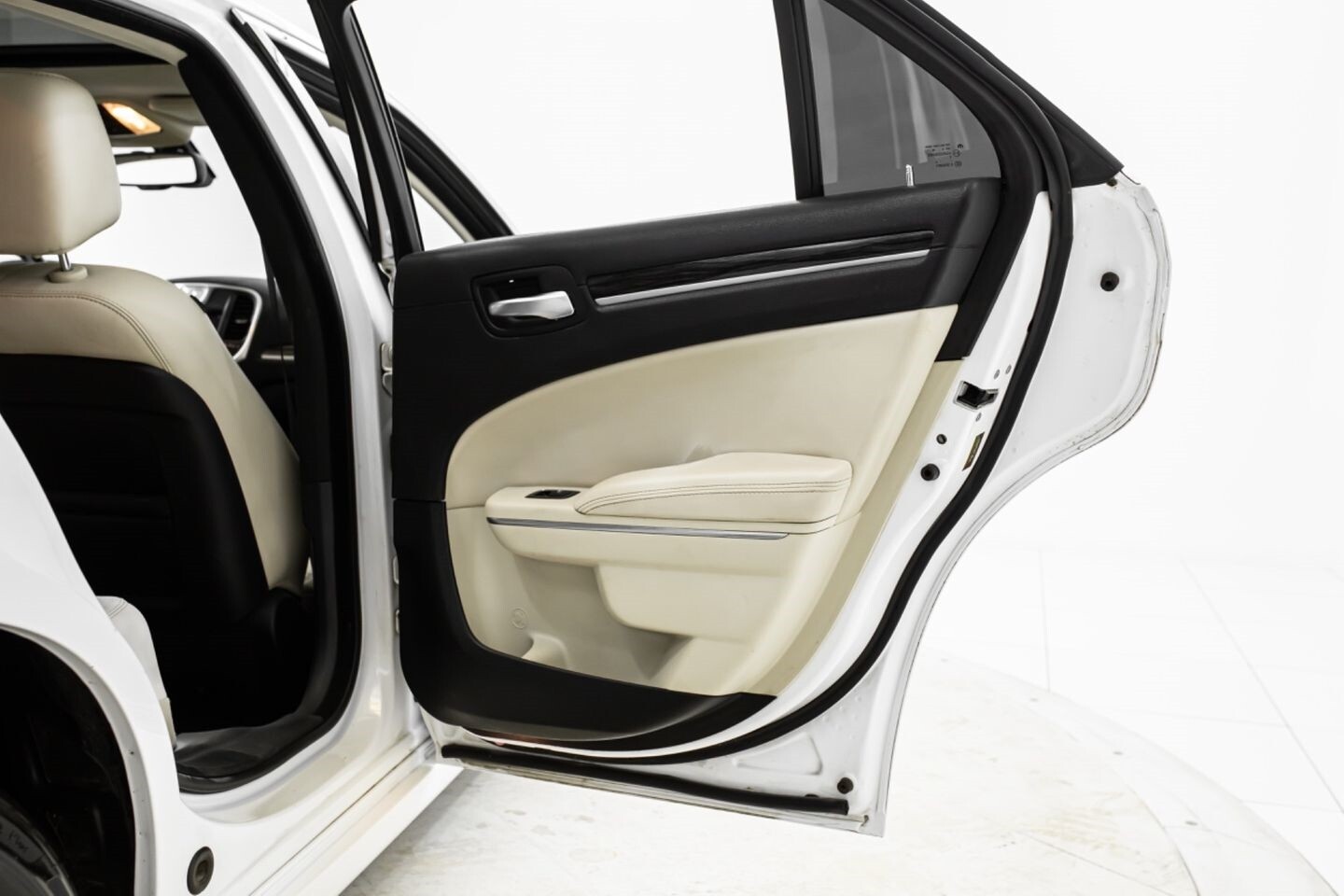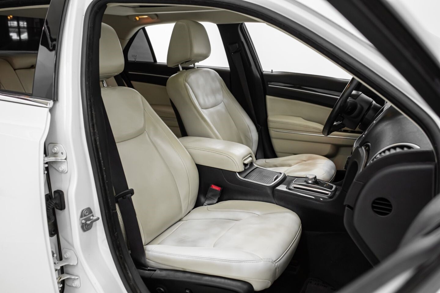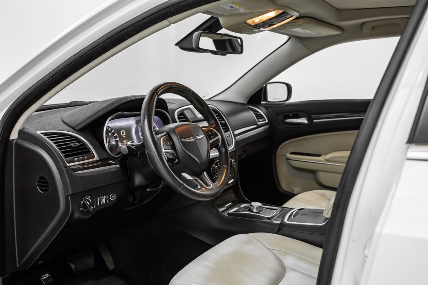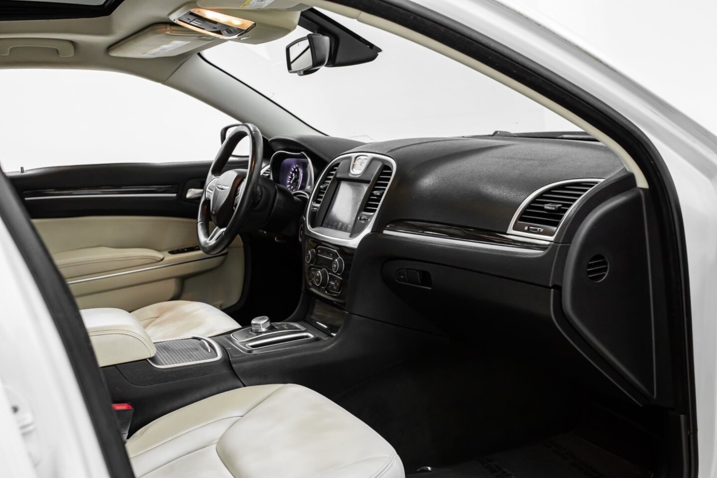 This 2016 Chrysler 300 Limited is a well-equipped sedan that is perfect for daily driving. Under the hood is a 3.6-liter V6 engine that produces 292 horsepower and 260 lb-ft of torque, all of which is sent through a eight-speed automatic transmission to the rear wheels. This sleek vehicle comes equipped with OEM 17" Chrysler wheels and is finished in Ivory Tricoat Pearl, a shining color that beautifully suits this vehicle's exterior. In the interior, this Limited-trimmed 300 offers heated leather seats, multi-zone A/C, wood interior trim pieces, a semi-digital gauge cluster, push-to-start, and an infotainment system with Bluetooth, navigation, apps, climate controls, phone connectivity, AUX, and a backup camera, truly making this car the complete package.