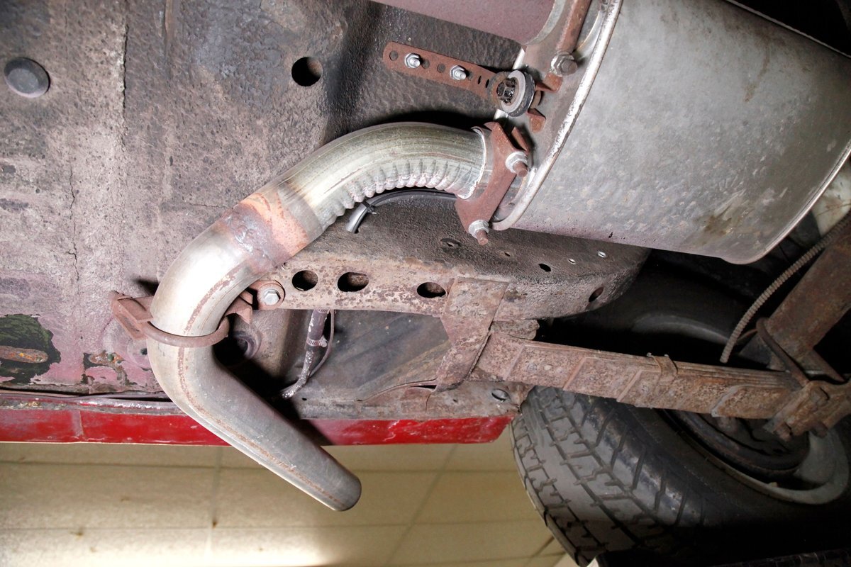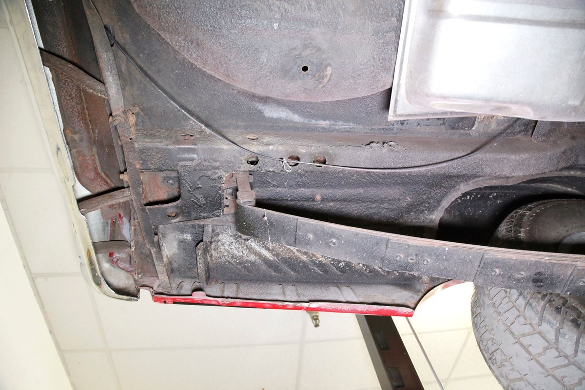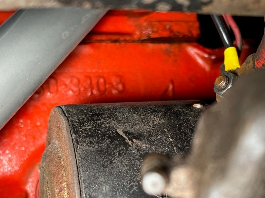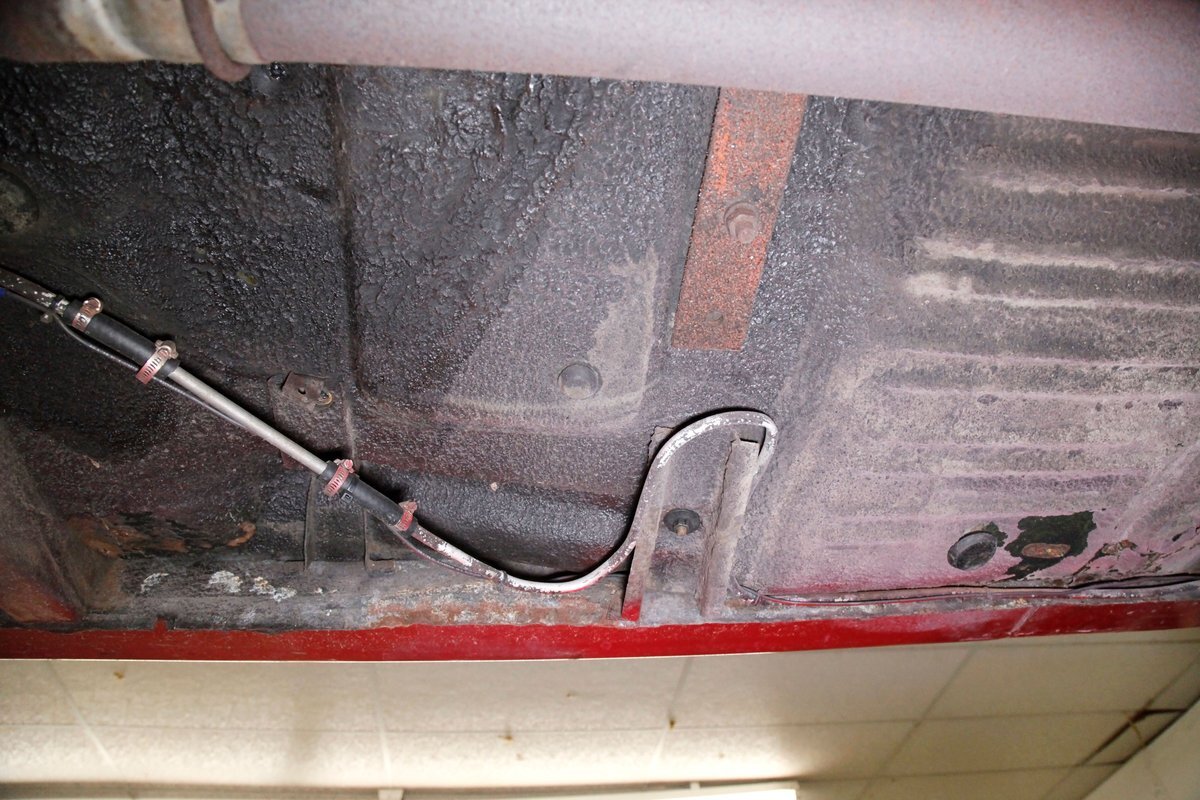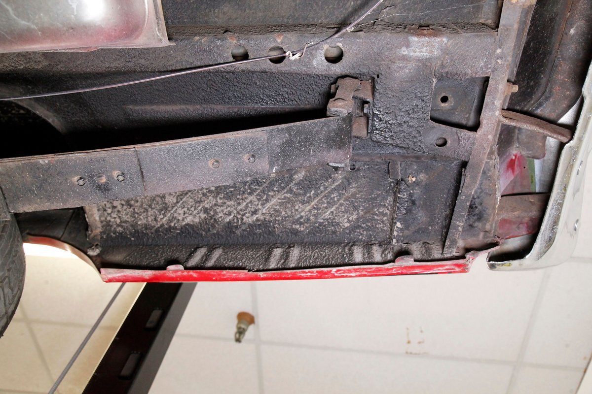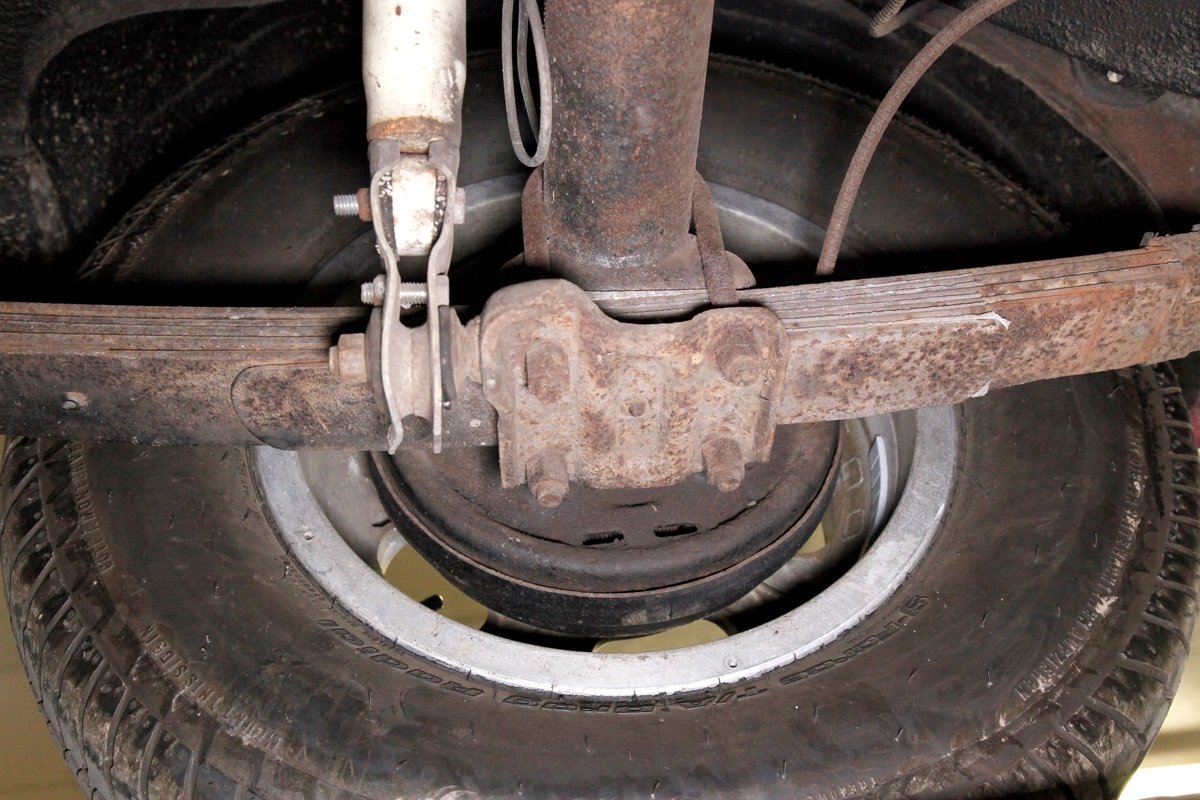 Not unlike the topside, some major work has been performed here as well. Including the rear wells being widened to accommodate the wider tires, A new fuel tank with a 1/2 inch pickup is in back, and the battery has been moved to the rear trunk and has a shutoff. All new suspension bushings are in and all new drum brakes front to back with new lines, shoes, wheel cylinders and a new master cylinder have been installed. Super Stock rear leaf springs are on in the back in up front in an independent suspension with torsion bars. All is looking rust free and very sound to handle the power from the 8 pack above.