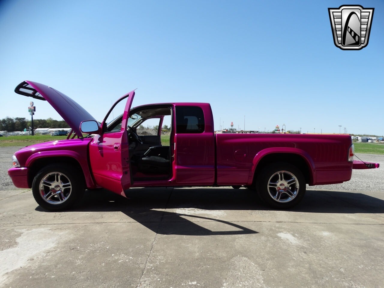 Gateway Classic Cars of Louisville is proud to present this 2002 Dodge Dakota R/T! Back in 1986, Dodge, was looking to bring a new player to the field for the mid-size pickup truck segment. The Dakota was born and would see 3 generations spanning up to 2011. [ omitted ]. The Hot Pink Pearl paint certainly is vibrant and sets it off in a crowd. The paint appears to have been laid down very well and is in nice condition. The black leather seats with hot pink stitching and pink carpet really complements the exterior and is in very good order. At night hit the controller and flip on the underglow lighting to really set this ride off! Under the hood is stated to be the original 5.9L V8 engine mated to a 4-speed automatic transmission. The truck runs and drives out well. The current owner has had her for over 15 years, acquired from a private owner making this a 2-owner truck! From the factory this truck had the Customer Preferred Package 28C, Heavy Duty Service Group, R/T Group, and more. A copy of the original window sticker is included, vin matches and confirms the packages. Don't miss your chance to have this 1 of a kind Dakota that will certainly help you make a statement, or if you have a problem of finding your car in the parking lot. Options on this Dakota include: A/C, Power Steering, Power Brakes, Power Windows/Locks/Seat, Leather Interior, Cruise Control, AM/FM/CD Radio, Tilt Wheel, Seat Belts, and Radial Tires. [ omitted ]. [ omitted ].