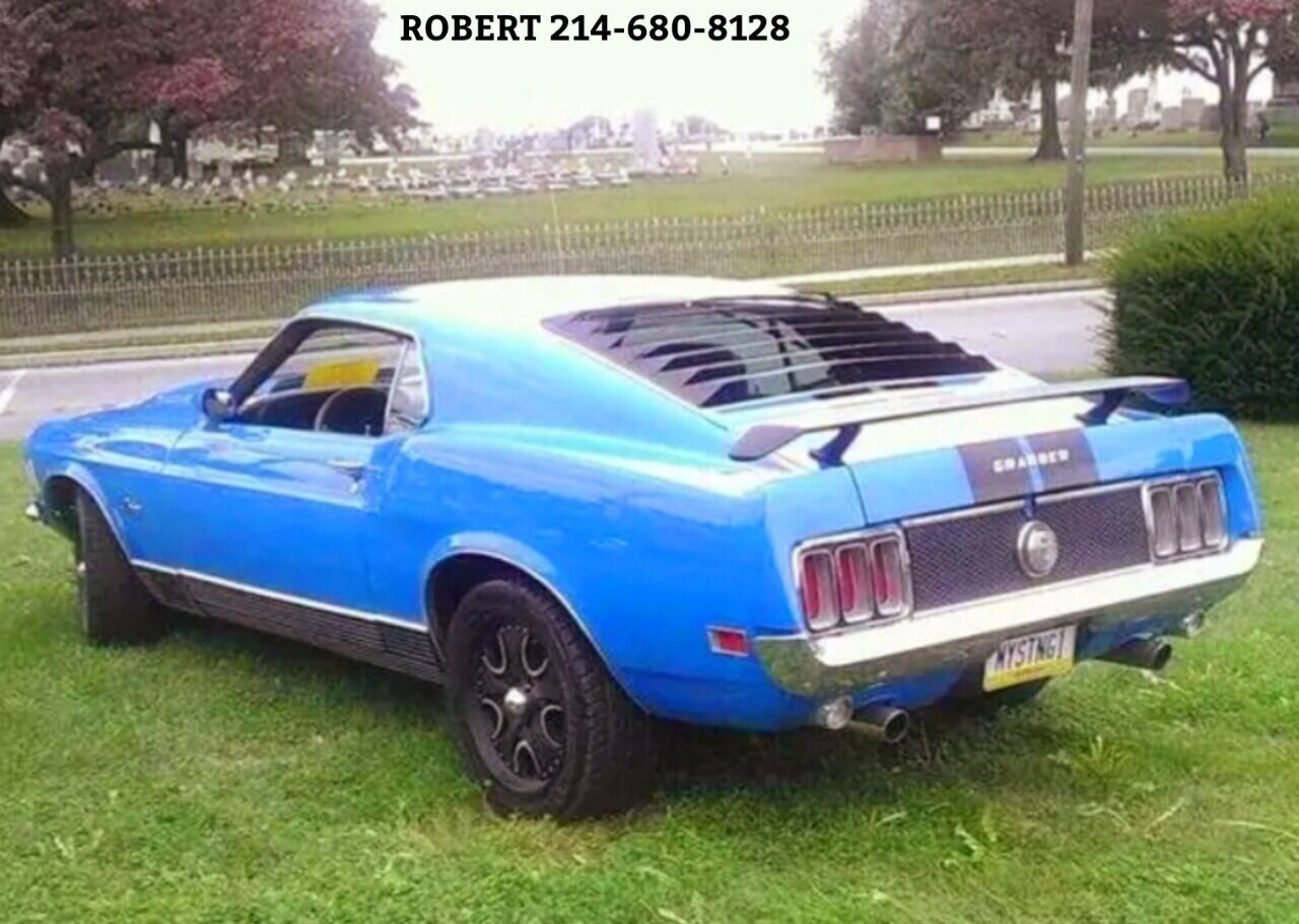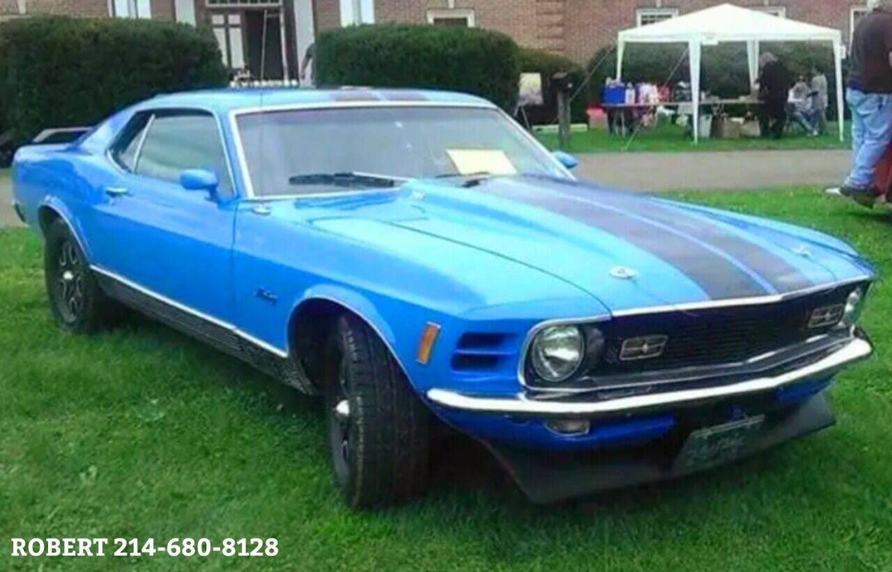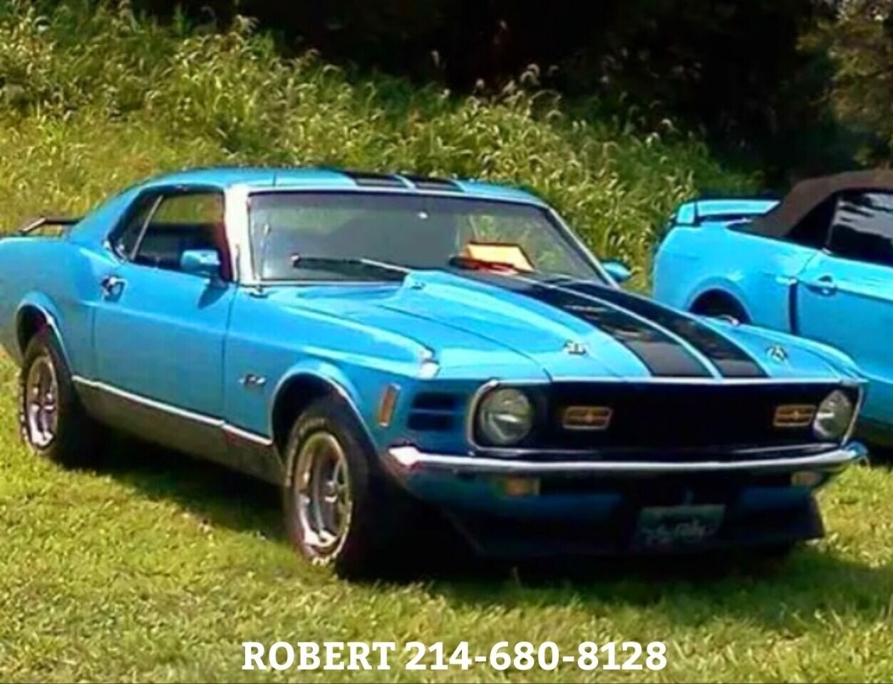 Grabber Blue 1970 Mustang Mach 1 Premium Fastback. True H code with 351ci Cleveland V8 engine with 4 barrel carb on Edelbrock high rise intake manifold. Original shaker hood replaced with custom hood in order to better fit this set up. Full restoration included C4 conversion to toploader manual transmission. Looks and runs great with no issues at all. Does have a minor paint blemish on trunk as seen in the pics. The original magum 500 wheels (seen in pics) and other things will also come with this fantastic car. Original H code had a 2 barrel carb on the 351 cleveland. This now has a 4 barrel. It is an AC car but no compressor or parts including the original shaker hood. They were scrapped by the people who did the restoration. New hood custom fits the high rise intake. Full inside/out & over/under, engine & drive train, body off professional restoration with just 2,000 miles on the car since. Just 63,000 actual original miles before restoration. Now the car is a show winner. Great opportunity to make a smart investment on this amazing classic mustang. The price is right so act fast. Feel free to ask any questions before making an offer on this beatiful ride. Also take advantage of services offered such as professional vehicle inspections, financing and shipping arranged anywhere in the world. CALL OR TEXT ANYTIME. ROBERT877-211-7157 ALL DEPOSITS ARE NONREFUNDABLE TO HOLD THE CAR FOR ANY AMOUNT OF TIME AND NON TRANSFERABLE.