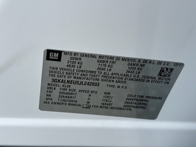 Vehicle Original VIN : 3GKALNEU5JL242893