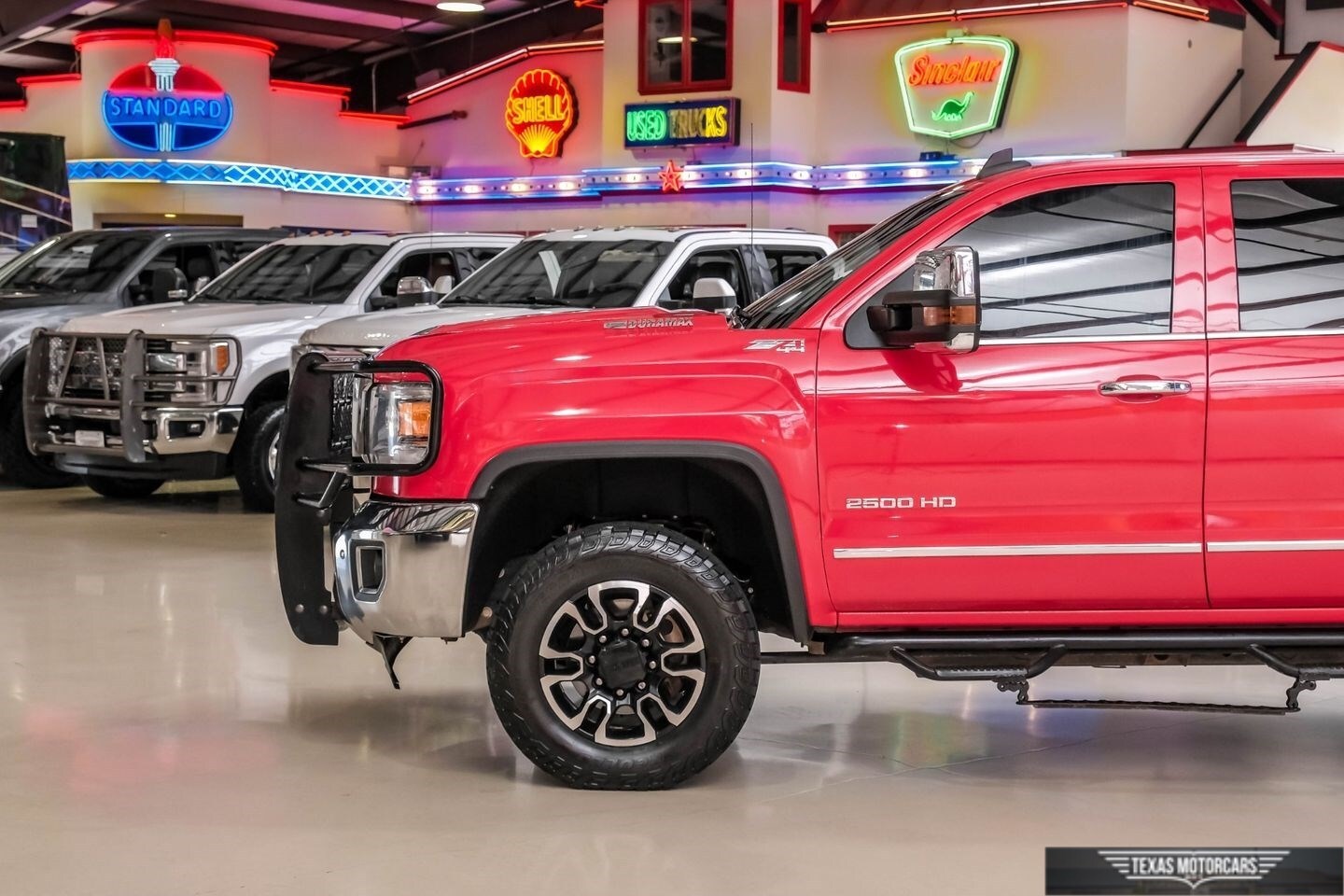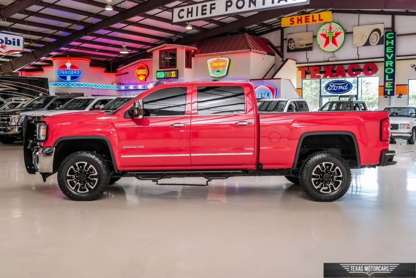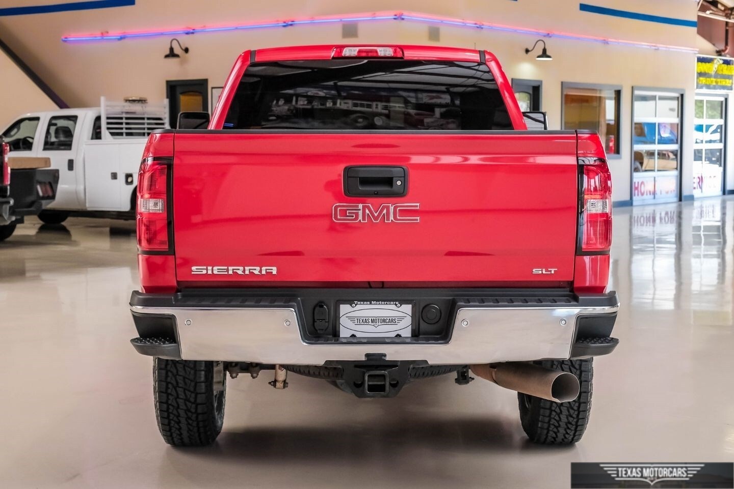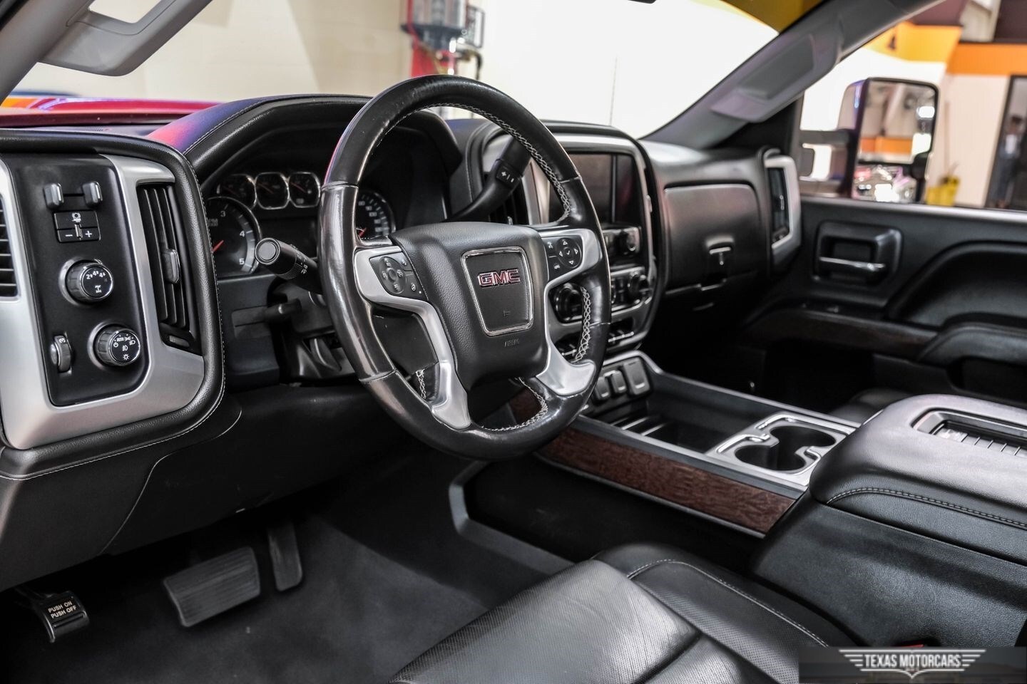 For those who demand versatility and ease of use, the Sierra 2500HD SLT delivers. The Power Adjustable Vertical Trailering Mirrors, with their heated, power-folding, and memory features, make towing a breeze. The Spray-On Bed Liner protects your truck bed from scratches and dents, while the Power Rear Sliding Window with rear defogger adds convenience and functionality. The custom wheels and all-terrain tires make sure that all four contact points for this truck are well prepared for anything the world throws at you.
