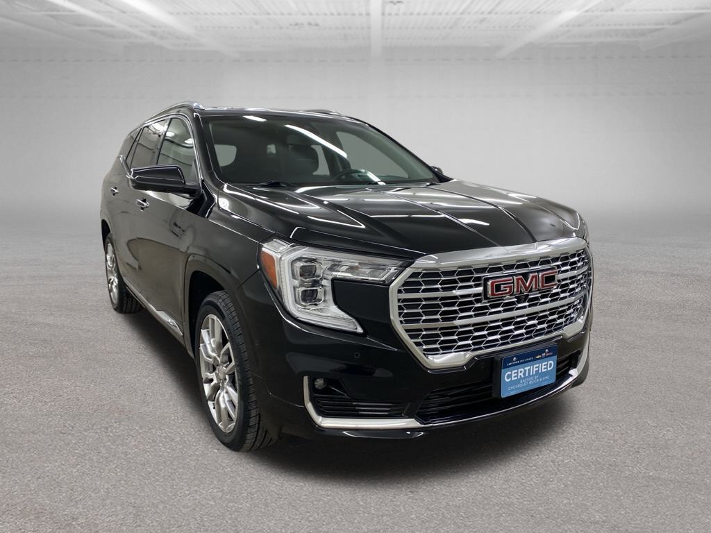 Certified. 1-Owner, Balance of Factory Warranty, Dealer Inspection, Vehicle Detailed, Recent Oil Change, New Wiper Blades, 4 New Tires, Remote Start, Terrain Denali, 9-Speed Automatic, AWD, Jet Black w/Perforated Leather-Appointed Seat Trim, 2 USB Data Ports, 2 USB Data Ports w/SD Card Reader, 6-Way Power Front Passenger Seat, 8-Way Power Driver Seat Adjuster, Auto High-beam Headlights, Bluetooth For Phone, Electronic Stability Control, Emergency communication system, Front dual zone A/C, Front fog lights, Front Passenger 2-Way Power Lumbar, Fully automatic headlights, Garage door transmitter, Heads-Up Display, Heated Front Seats, Heated steering wheel, Lane Departure Warning System, Navigation system: GMC Connected Navigation, Power Driver Lumbar Control, Power Liftgate, Premium 7-Speaker Bose Sound System w/Amplifier, Radio: GMC Infotainment Audio System w/Navigation, Security system, SiriusXM Radio, Skyscape Power Sunroof w/Power Sunscreen, Steering wheel mounted audio controls, Traction control, Ventilated Front Passenger Seat, Wireless Apple CarPlay/Wireless Android Auto. 1.5L DOHC Ebony Twilight Metallic 2022 GMC Terrain Denali 25/28 City/Highway MPG