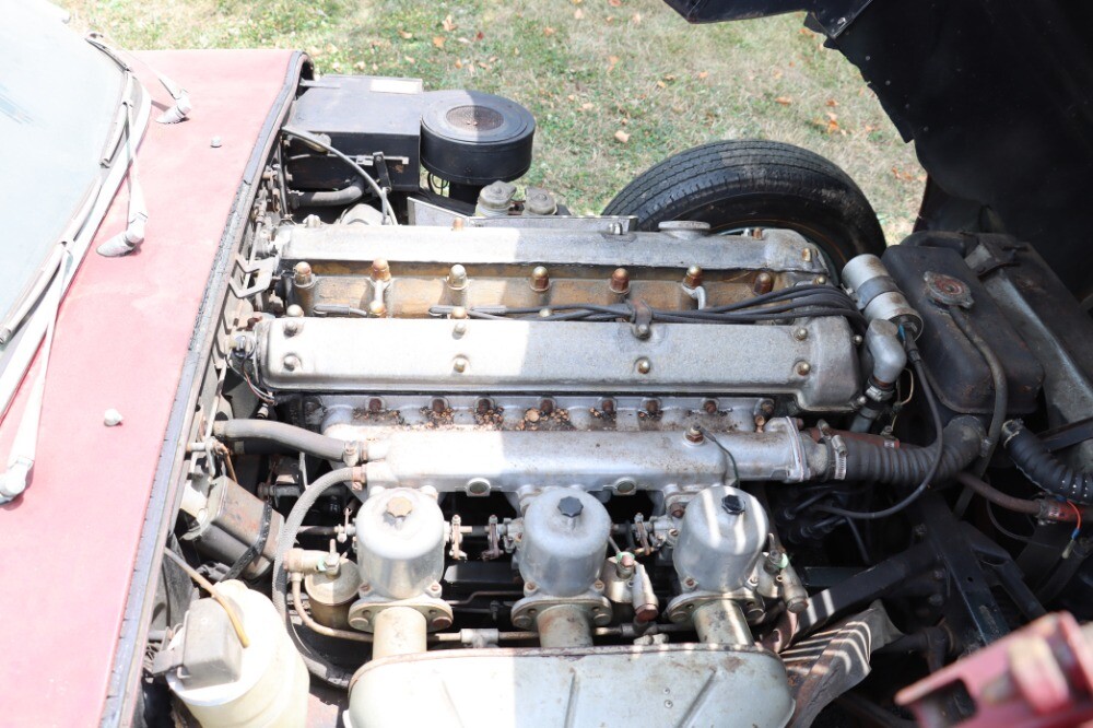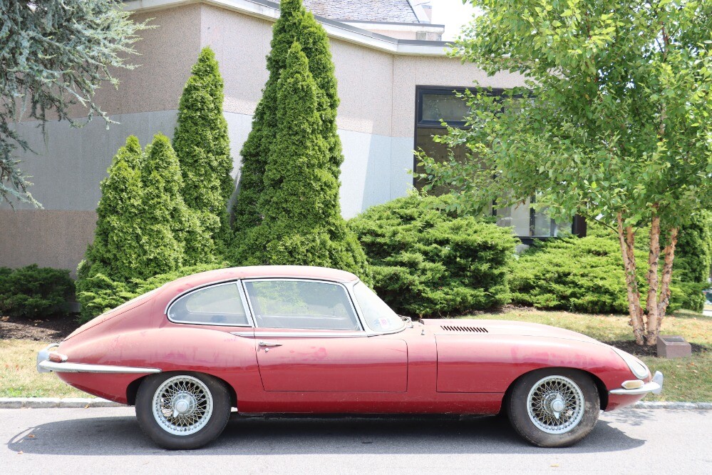 This 1966 Jaguar E-Type Series I 4.2 Litre 2+2 is a highly original matching numbers example that's been in garage storage for the last 35 years where it has remained untouched. It now requires straightforward restoration and is not currently running. Burgundy with black leather interior and an automatic transmission. A very solid and straight car that comes complete. This extremely honest covered head-light 2+2 represents a wonderful opportunity to own an iconic and collectible Jaguar E-Type at a very reasonable price. Not to be missed by any enthusiast of the marque.