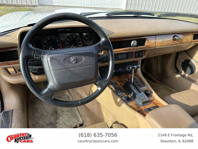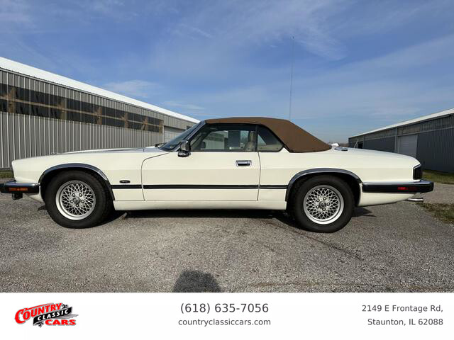 1993 Jaguar XJS Convertible. The Stay-fast canvas top is in good shape as is the original leather interior. Powered by a 4.0L V6 engine and automatic transmission, this Jag sits on alloy wheels. It comes with power steering, power brakes, and air conditioning. It runs and drives.