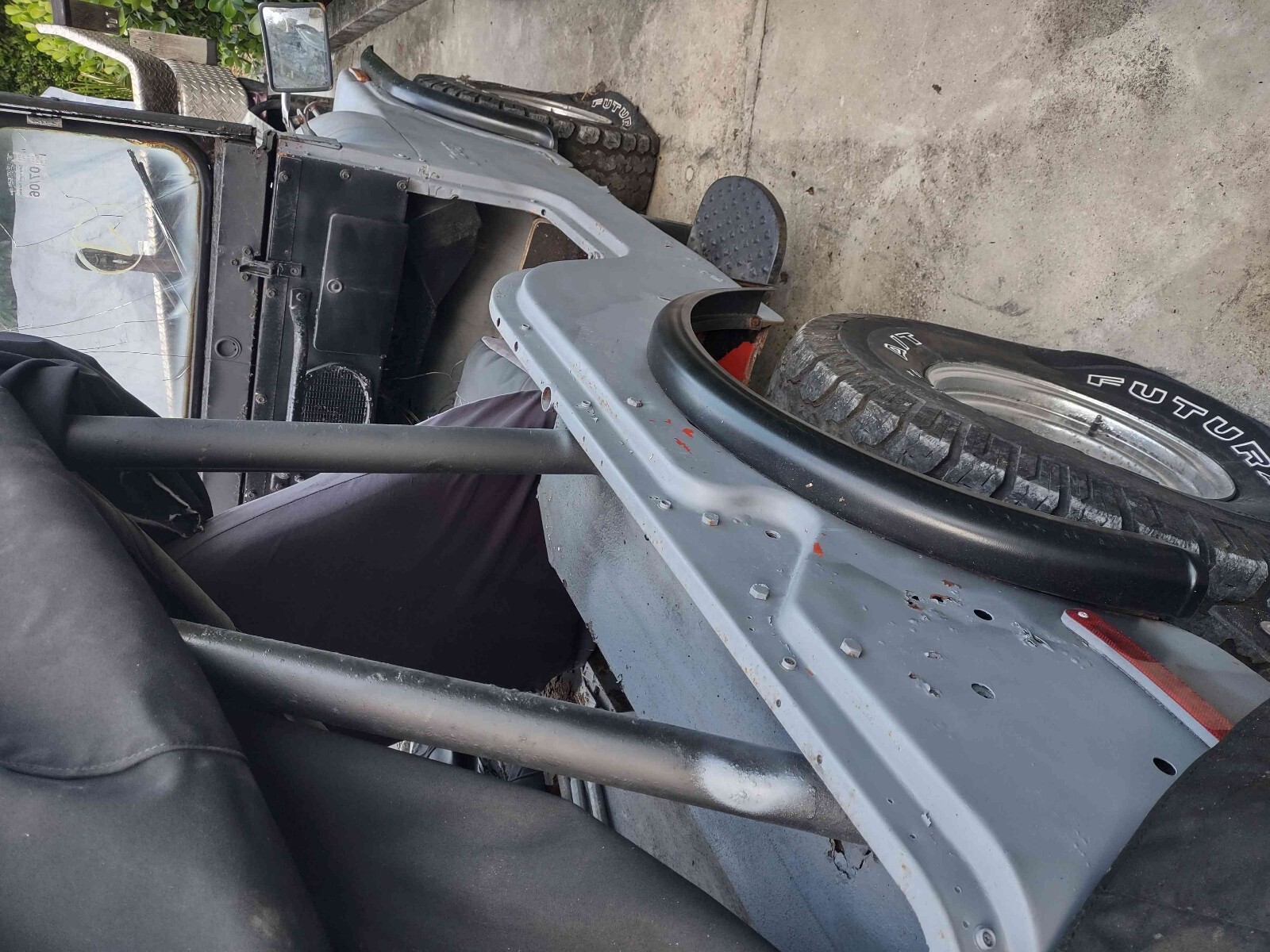 There are no chairs in both jeeps No upholstery. Tires are ok. Nice wheels.