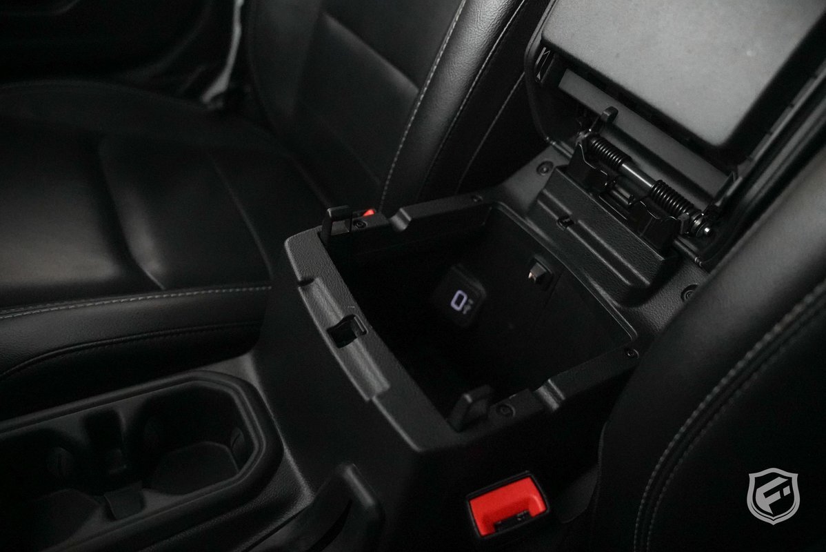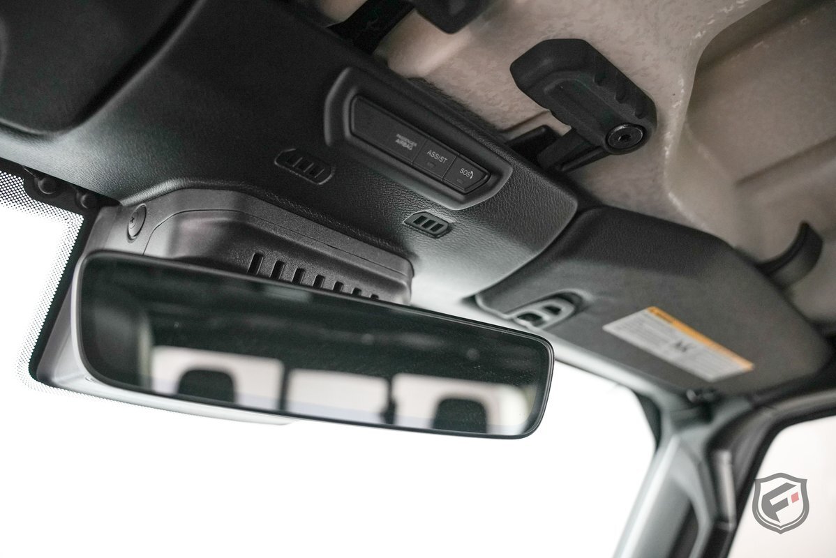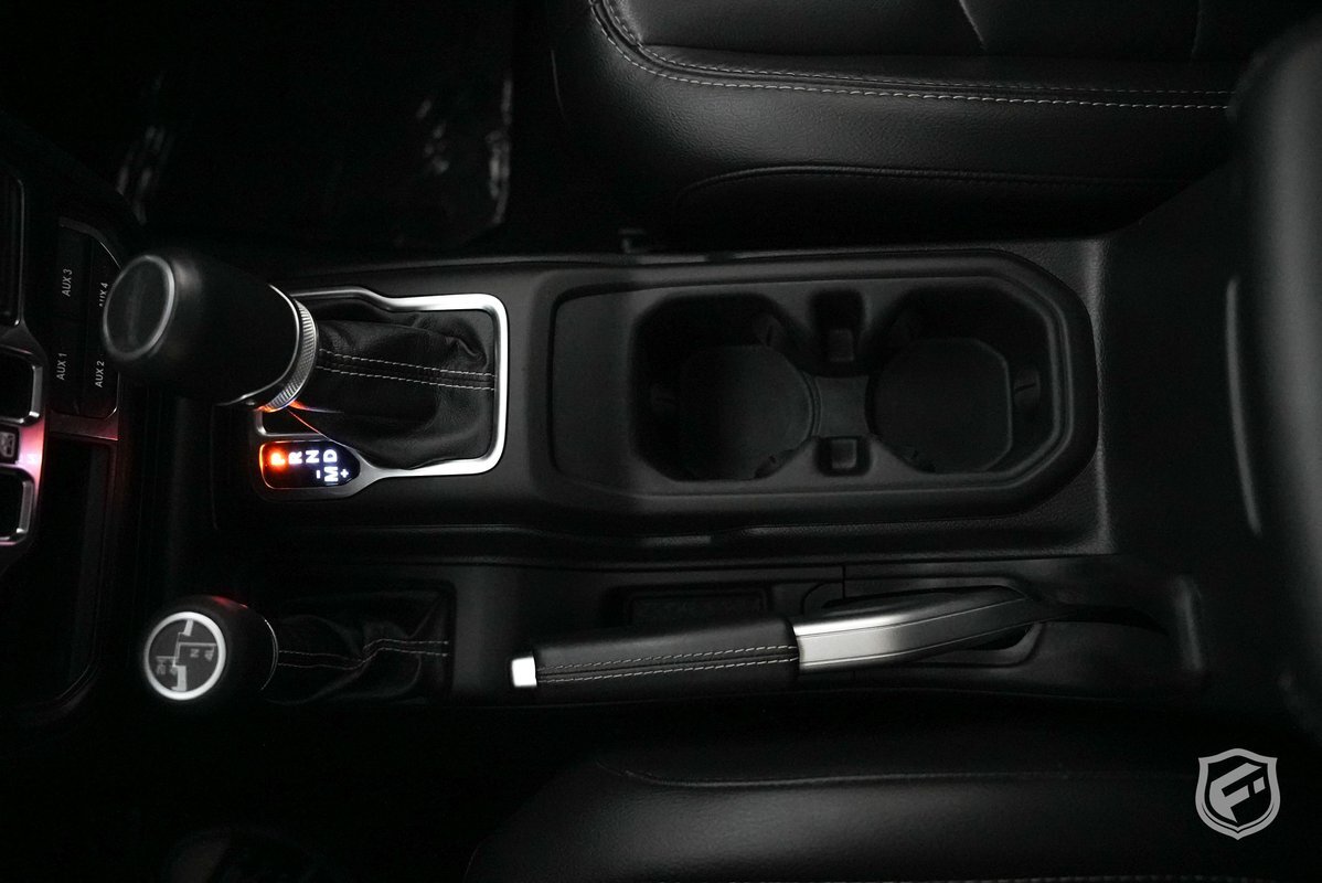 Powder-coated beadlock wheels, 42" Maxxis tires, and a full-size spare. The custom trailer brake controller ensures safety while towing.