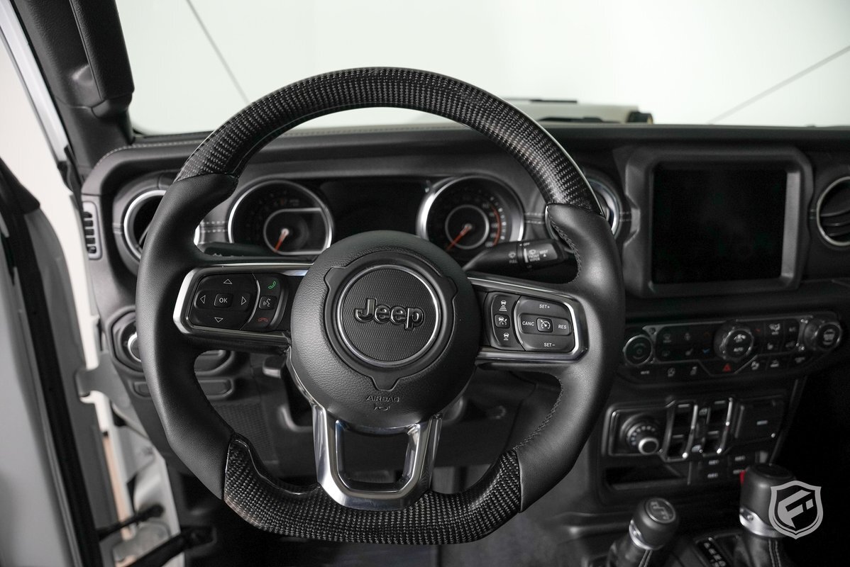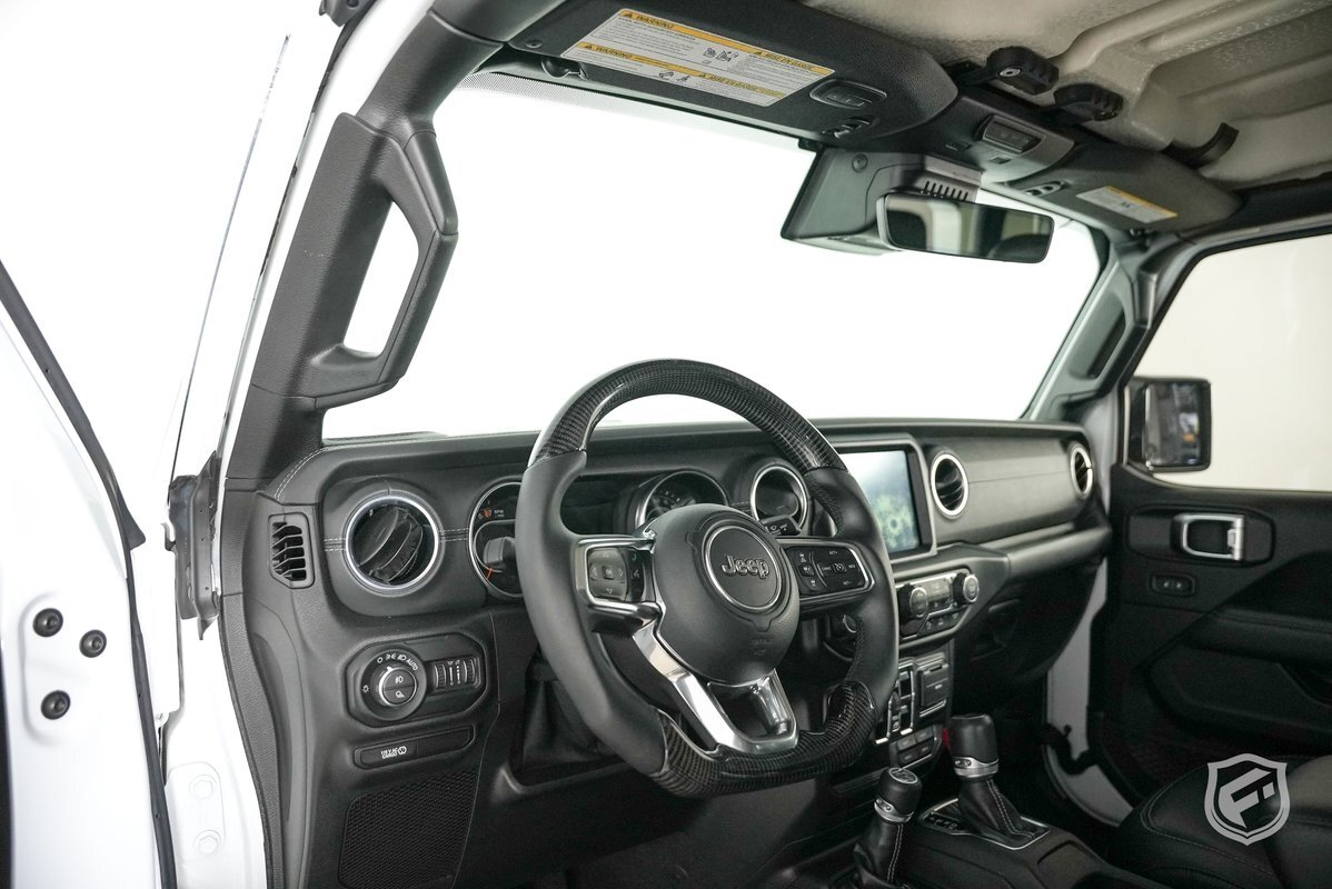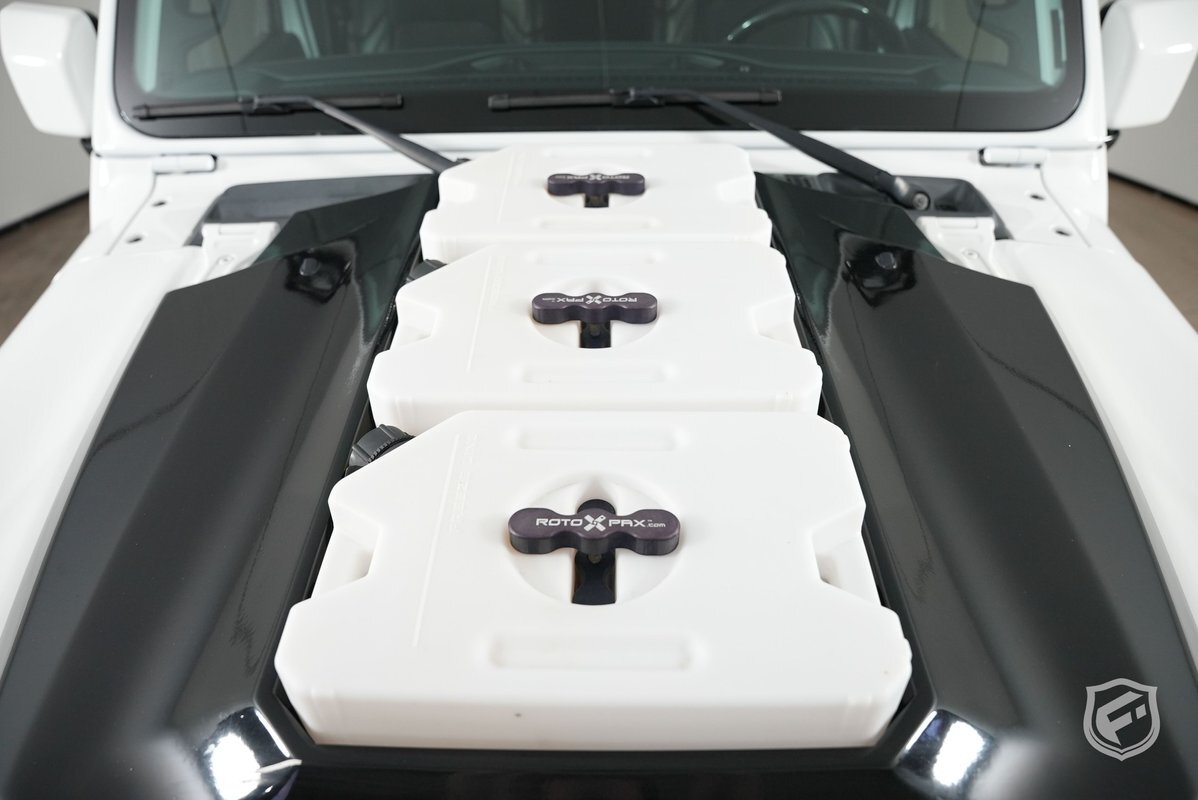 Designed for the off-road enthusiast, this Gladiator 6X6 boasts a custom hood with integrated Rotopak water canisters, a PA siren system, and a carbon fiber steering wheel for a touch of luxury in the wild.