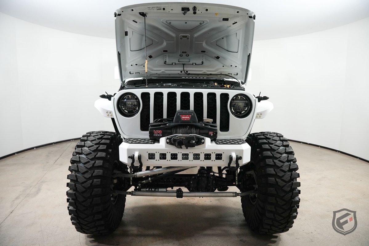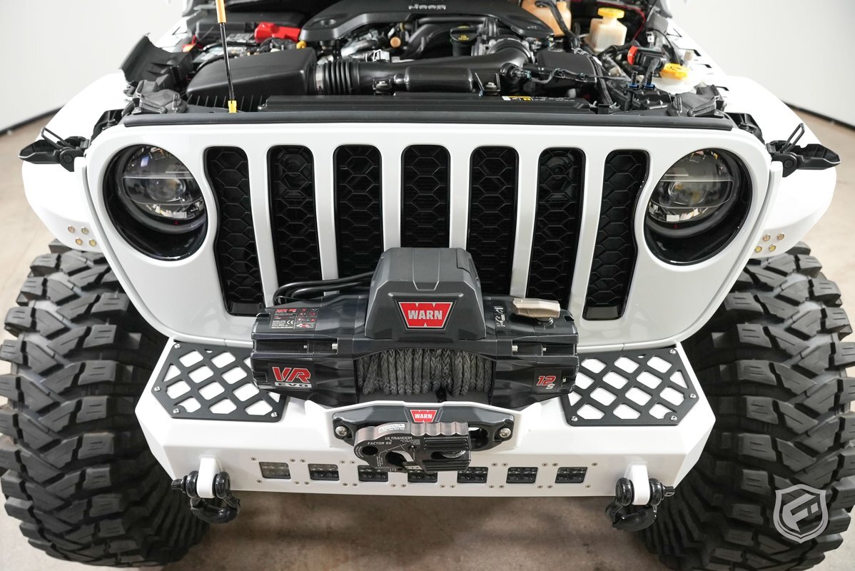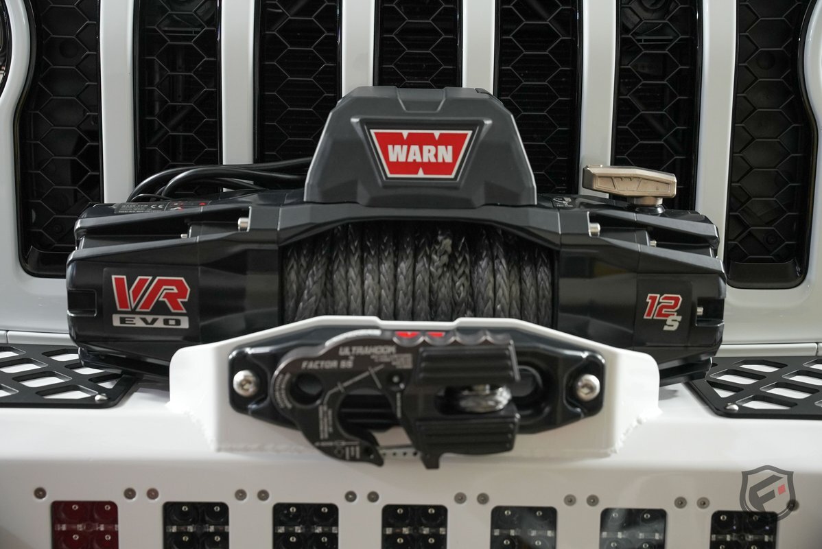 Custom 3/16 chromoly front and rear bumpers, complete with daytime running lights, high beams, rock lights, and powder-coated tread plates. The Warn 12k winch with a wireless remote and synthetic rope ensures you're ready for any challenge.