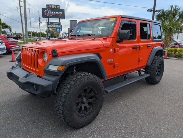 Wrangler Unlimited Sport S, 4D Sport Utility, 3.6L V6 24V VVT, 8-Speed Automatic, 4WD, Punkn Metallic Clearcoat, Black Leather, 1-Yr SiriusXM Radio Service, 21.5 Gallon Fuel Tank (DISC), 3.45 Rear Axle Ratio, 4-Wheel Disc Brakes, 7.0 Touchscreen Display, 8 Speakers, ABS brakes, Air Conditioning, Air Conditioning w/Auto Temperature Control, Air Filtering, AM/FM radio, Apple CarPlay, Automatic Headlamps, Black 3-Piece Hard Top, Brake assist, Bridgestone Brand Tires, Cloth Low-Back Bucket Seats, Cluster 7.0 TFT Color Display, Cold Weather Group, Compass, Convenience Group, Deep Tint Sunscreen Windows, Delay-off headlights, Driver door bin, Driver vanity mirror, Dual front impact airbags, Dual front side impact airbags, Electronic Stability Control, For More Info, Call727-228-7657, Freedom Panel Storage Bag, Front 1-Touch Down Power Windows, Front anti-roll bar, Front Bucket Seats, Front Center Armrest w/Storage, Front fog lights, Front reading lights, Google Android Auto, GPS Antenna Input, Heated Front Seats, Heated Steering Wheel, Integrated Center Stack Radio, Integrated roll-over protection, Leather Wrapped Steering Wheel, Low tire pressure warning, MOPAR All-Weather Floor Mats, Non-Lock Fuel Cap w/o Discriminator, Normal Duty Suspension, Occupant sensing airbag, Outside temperature display, ParkView Rear Back-Up Camera, Passenger door bin, Passenger vanity mirror, Power Heated Mirrors, Power steering, Quick Order Package 24S Sport S, Radio data system, Radio: Uconnect 4 w/7 Display, Rear anti-roll bar, Rear reading lights, Rear Window Defroster, Rear Window Wiper/Washer, Remote Keyless Entry, Security Alarm, SiriusXM Satellite Radio, Speed control, Speed Sensitive Power Locks, Split folding rear seat, Steering wheel mounted audio controls, Sun Visors w/Illuminated Vanity Mirrors, Tachometer, Technology Group, Telescoping steering wheel, Tilt steering wheel, Traction control, Trip computer, Universal Garage Door Opener, USB Host Flip, Variably intermittent wipers, Wheels: 17 x 7.5 Polished Granite Crystal. Clean CARFAX.Punkn Metallic Clearcoat 2018 Jeep Wrangler Unlimited Sport S 4WD 3.6L V6 24V VVTAwards:* 2018 10 Most Awarded BrandsHere at Jacobs Mitsubishi our goal is to make you a customer for life. We want you to have the most enjoyable car buying experience possible . All prices displayed do not include additional accessories or fees and costs of closing including any government, additional packages applied to vehicle, including but not limited to Jacobs Care, Reconditioning fees,federal, dealer fees, taxes, registration, dealer document, cost of accessories, emissions testing, or any other fees. All prices, specifications and availability are subject to change at any time, without notice. Not all applicants will be approved, offers may change at any time and may not reflect accuracy online, see dealer for most updated offers. Not all offers can be combined. Applicant may qualify for partial discount displayed by financing with another approved lender through and provided by Jacobs Mitsubishi. Contact dealer for most current information, availability, or details.