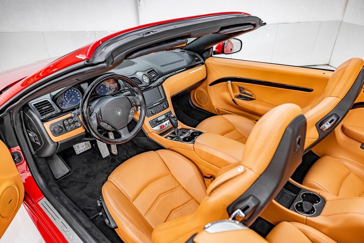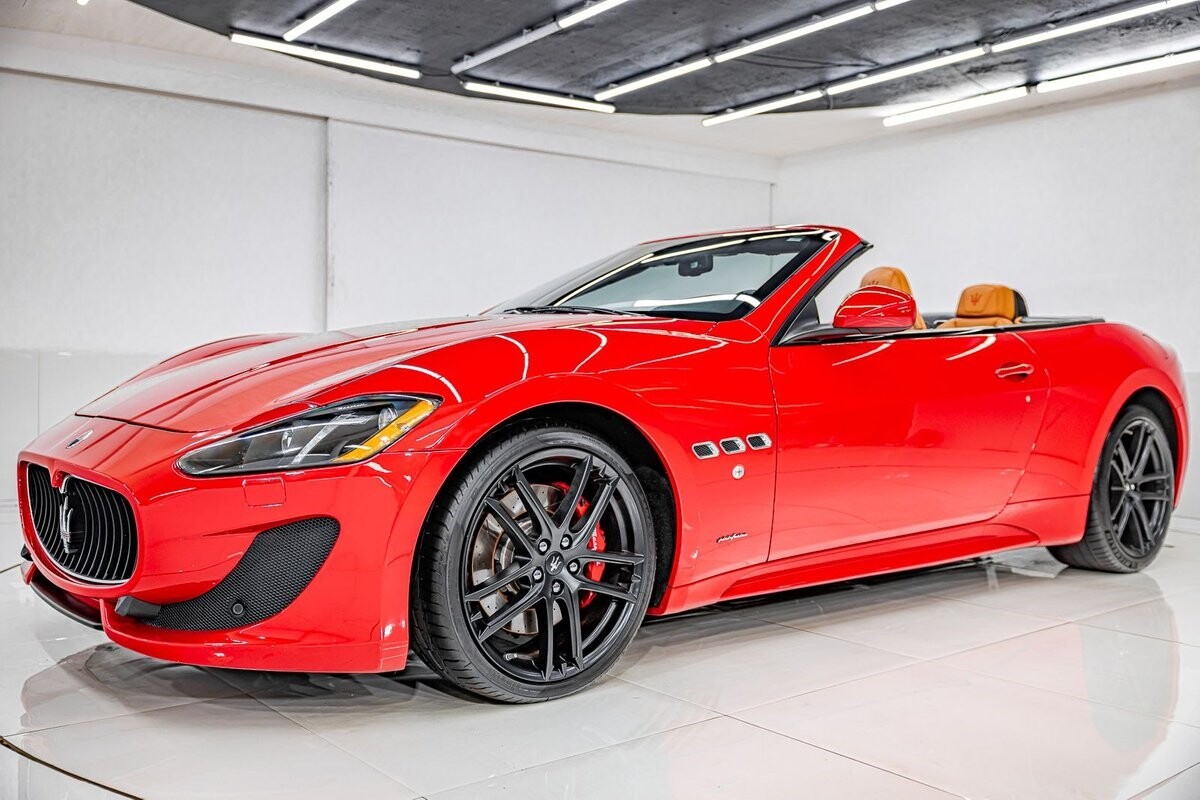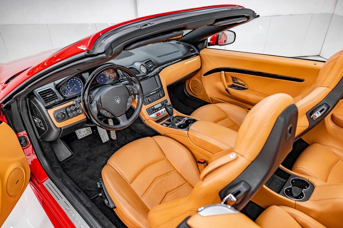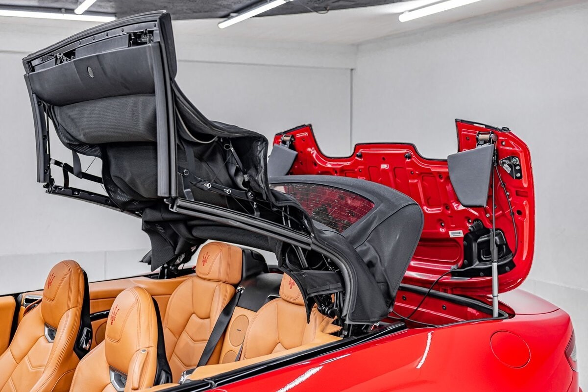 EXTERIOR: $3,000 optional paint color Rosso Mondiale! It's a special edition paint Maserati offered briefly. The sport front end eliminates fog lights and compliments the honeycomb massive front grill. Also the rear exhaust tips are larger on the C sports. The C sport sits on 20" satin black wheels and is fitted with large 4 wheel disc brakes for ultimate stopping power. The black convertible soft top is in great condition, and is able to go up or down with the push of a button!