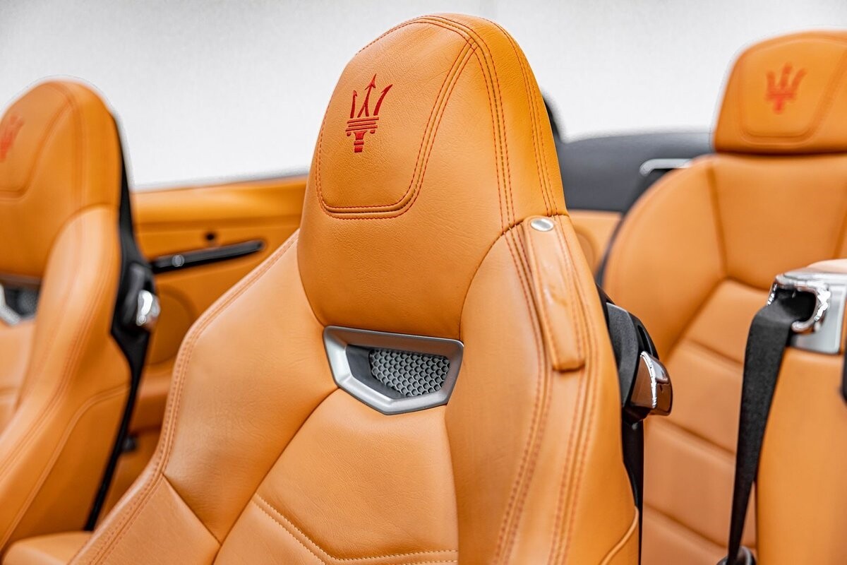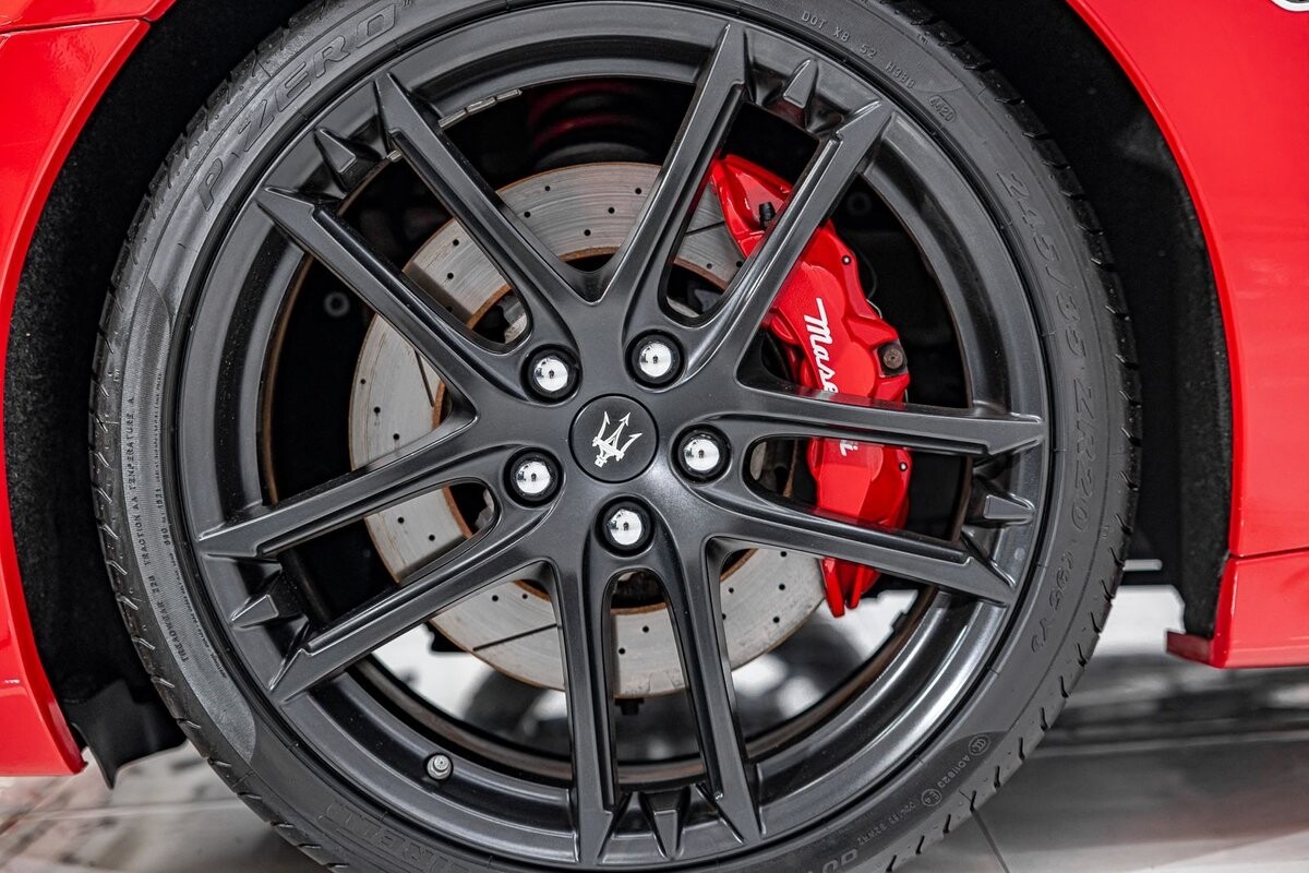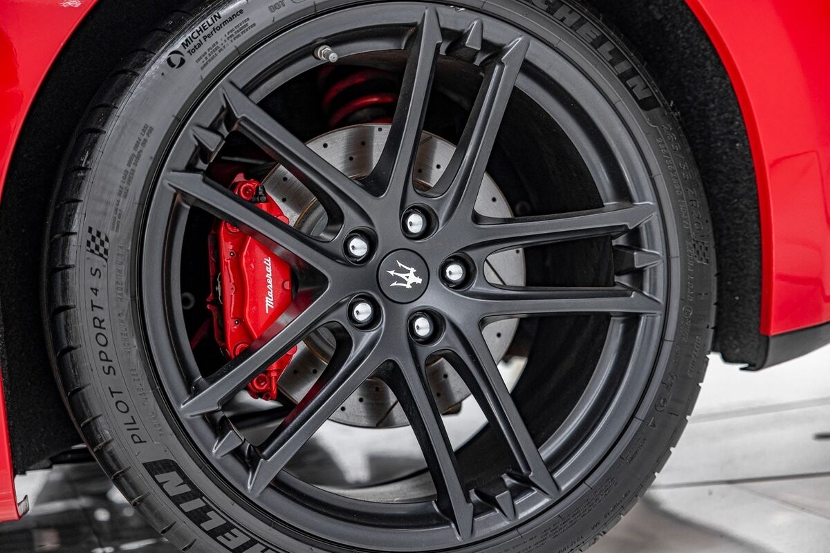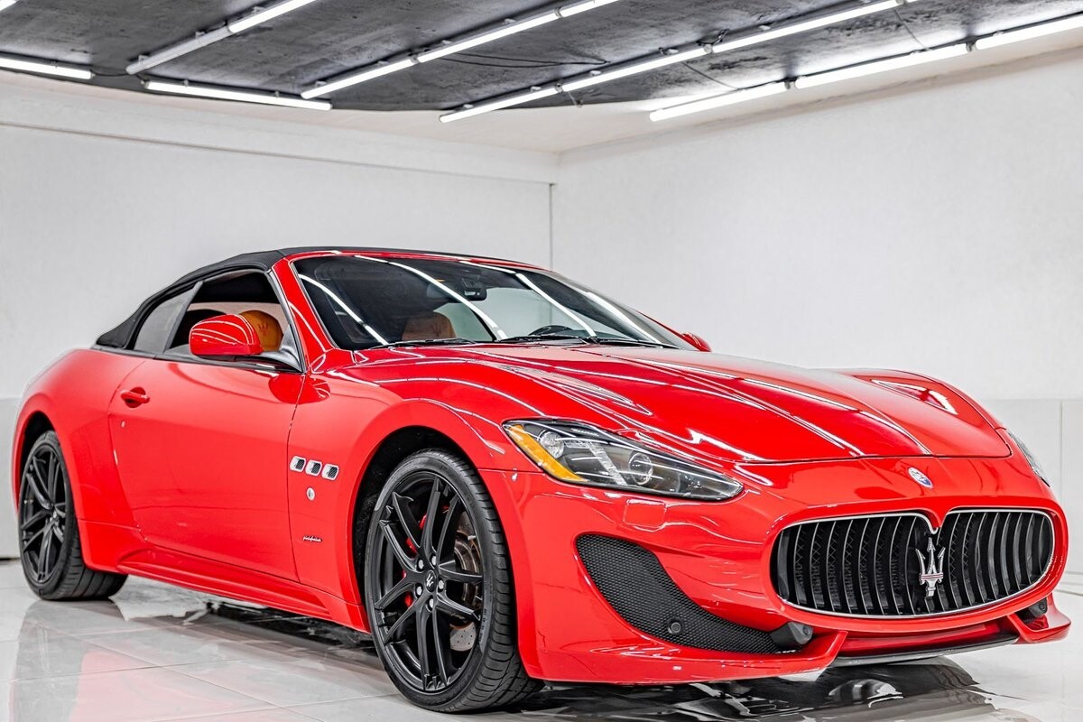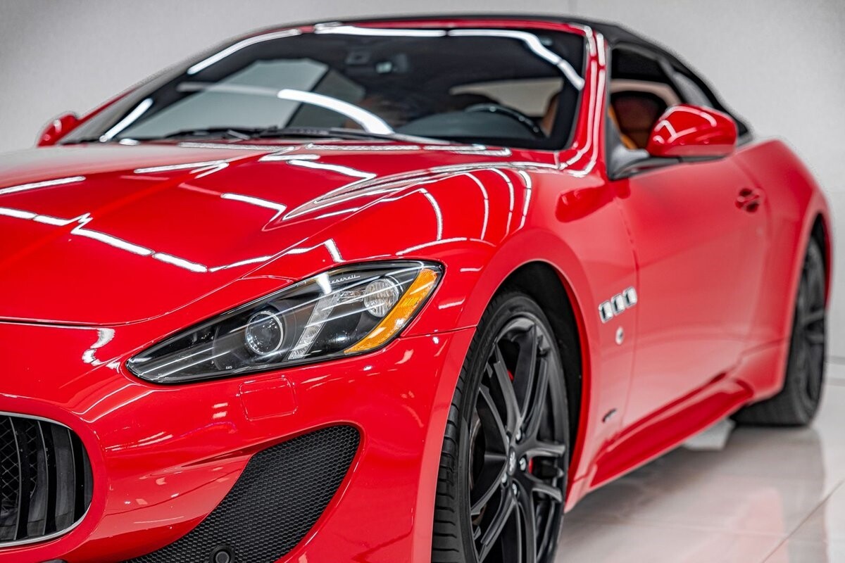 EXTERIOR: $3,000 optional paint color Rosso Mondiale! It's a special edition paint Maserati offered briefly. The sport front end eliminates fog lights and compliments the honeycomb massive front grill. Also the rear exhaust tips are larger on the C sports. The C sport sits on 20" satin black wheels and is fitted with large 4 wheel disc brakes for ultimate stopping power. The black convertible soft top is in great condition, and is able to go up or down with the push of a button!