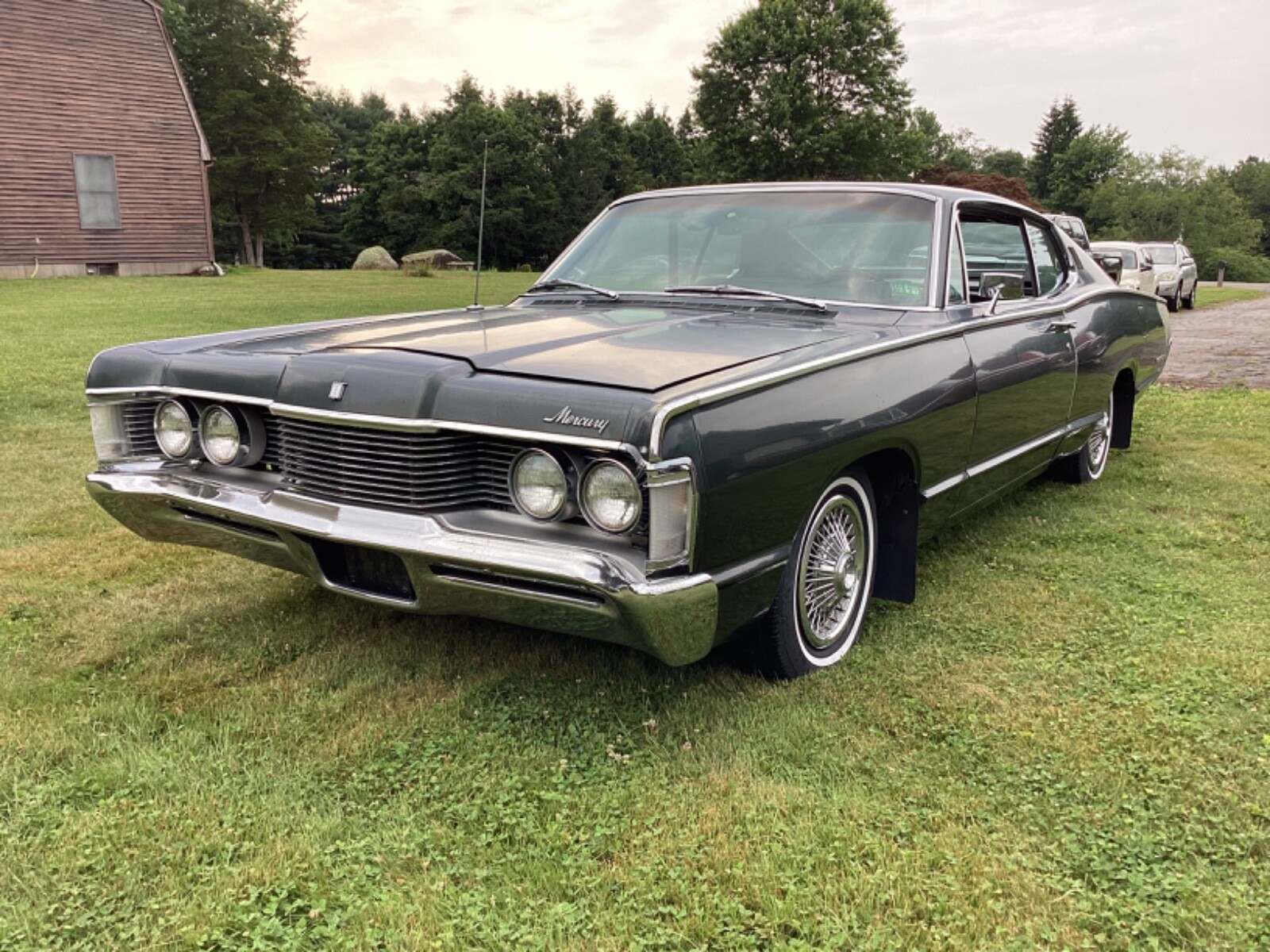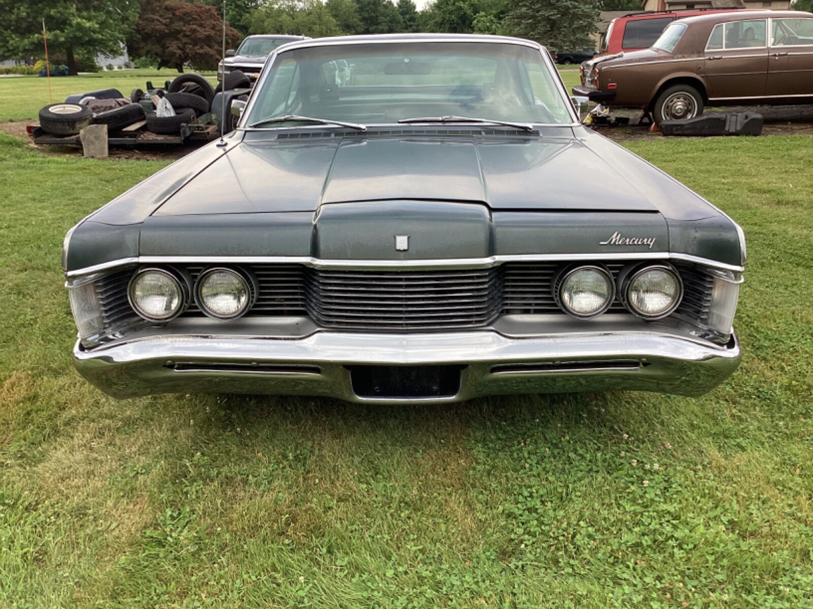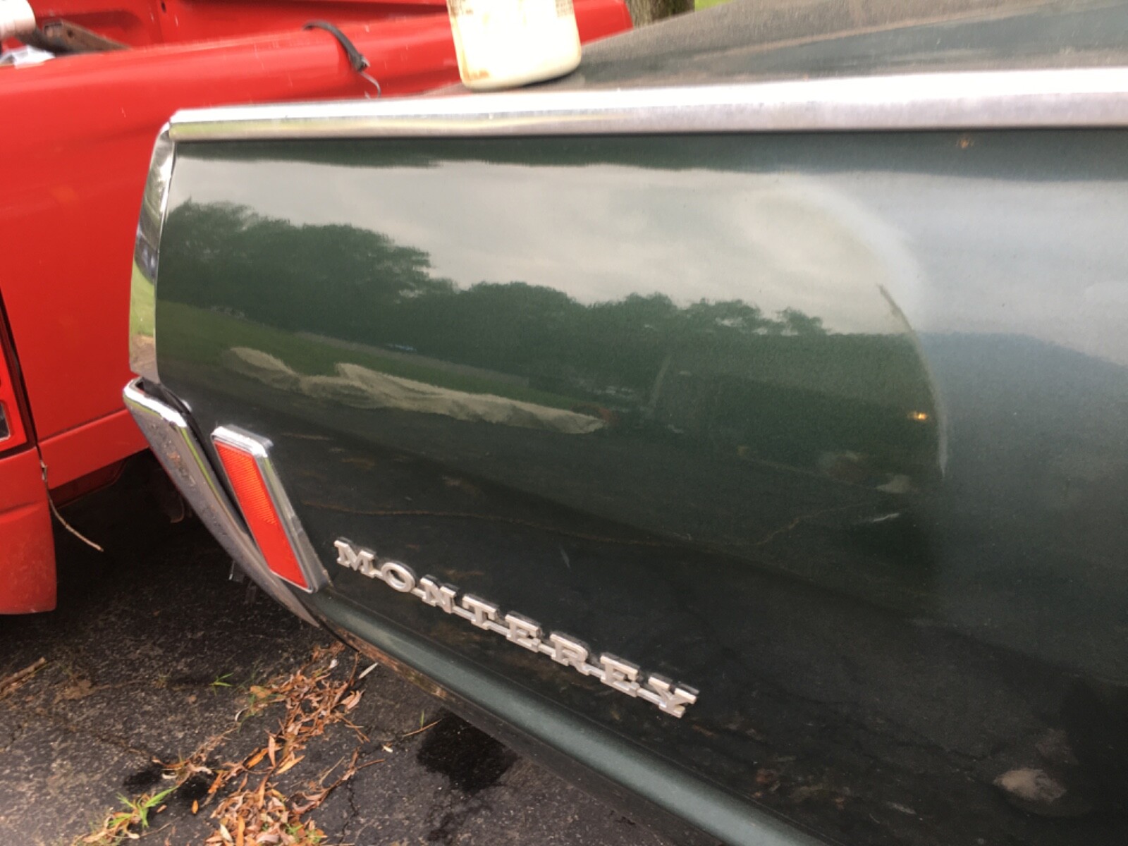 1968 Mercury Monterey Fastback. 390 engine with 70,126 miles. Automatic transmission, power disc brakes, power steering, air conditioning. The A/C compressor kicks on but blows warm air, compressor is noisy. The Monterey is a true survivor that retains most of its original paint. There is filler on the left rear quarter panel and a few spots of primer that were done before I purchased the vehicle. When I got it home, still on the trailer, I buffed out a small spot on the right rear quarter panel, the paint buffed out nicely but thin in some spots. The interior is in very good to great condition for its age. The headliner has tape covering holes in it and the carpet is faded in some spots. All the window work properly. The engine oil and transmission fluid have been changed along with new filters. There are no leaks. The heater hoses will need to be replaced due to the inside of the hoses deteriorating. I bypassed the hoses so the heater core would not get clogged with debris. The heater core does not leak. The wires, plugs, cap, rotor, air filter and master cylinder have been replaced. The car starts right up and runs fine. The fuel in the tank is old but I have not added to it. I was trying to run it out of fuel before putting fresh in it. The car has been sitting for some time. The tires are severely dry rotted and are dated 1971. There is no rust or rot under the car. It is as solid as you can get. The car was ziebarted rust proofed when it was new. The body is super solid for its age with only primer spots needing attention. Bottom of fenders, doors, rockers and quarter panels are in great condition as you can see in the pictures. There has been no patch work done to this car. The only things I have checked are the brakes and the differential fluid. Brakes seem to work fine. Car is also for sale locally.