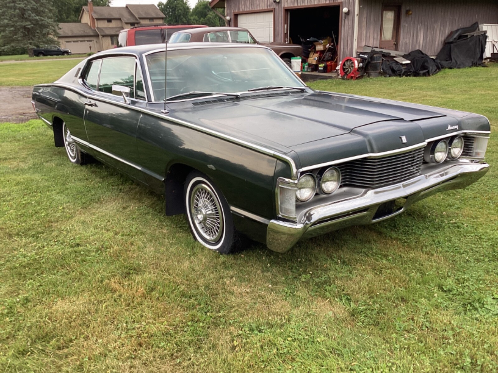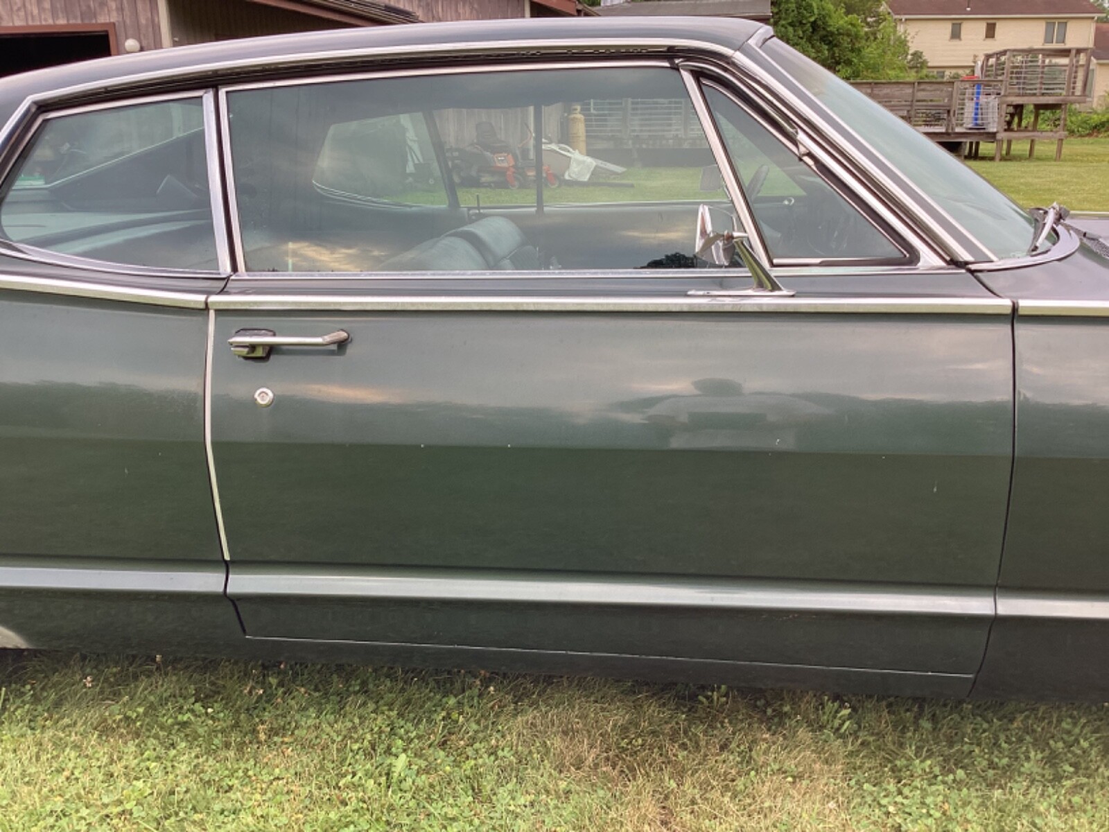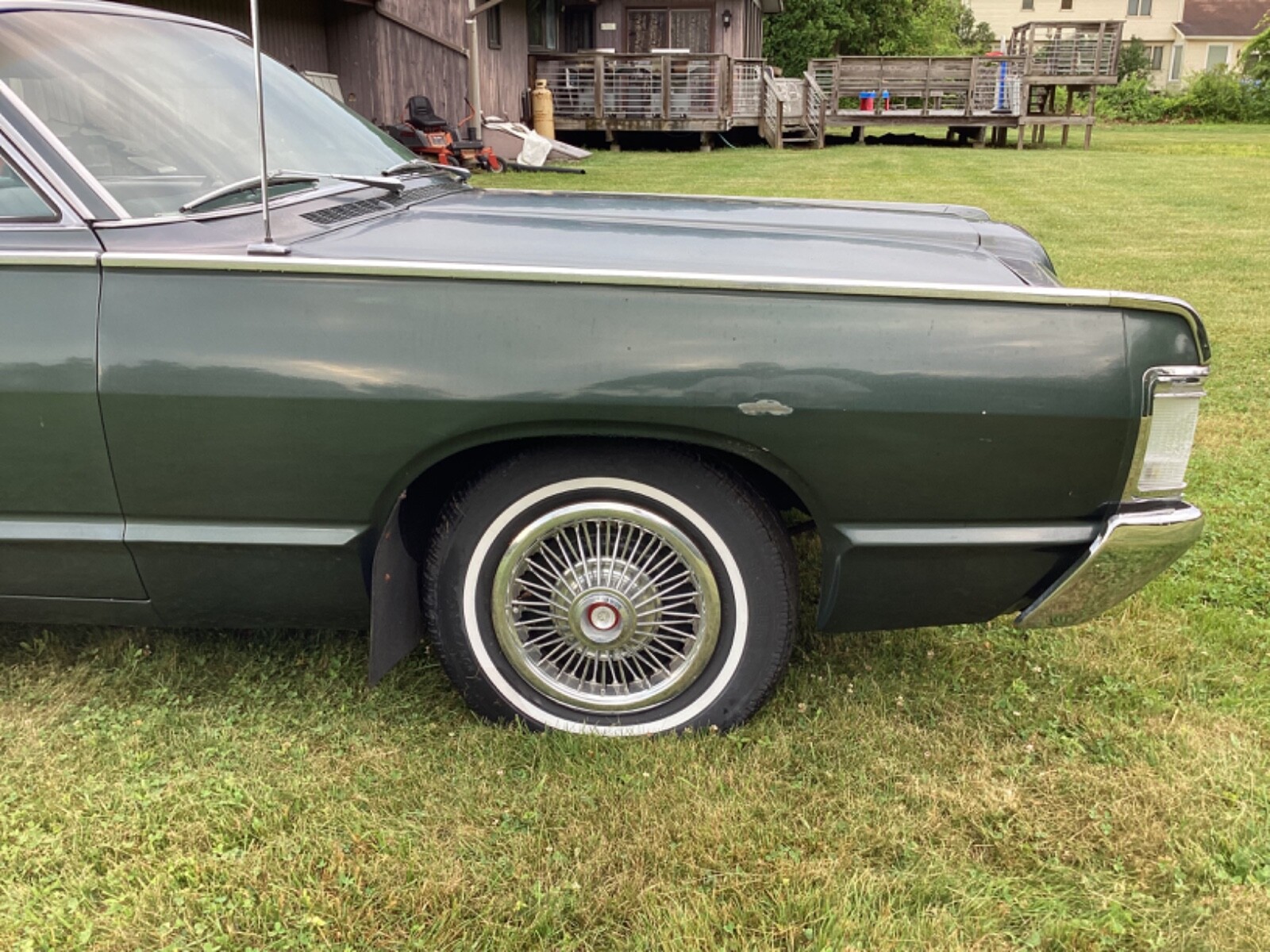 1968 Mercury Monterey Fastback. 390 engine with 70,126 miles. Automatic transmission, power disc brakes, power steering, air conditioning. The A/C compressor kicks on but blows warm air, compressor is noisy. The Monterey is a true survivor that retains most of its original paint. There is filler on the left rear quarter panel and a few spots of primer that were done before I purchased the vehicle. When I got it home, still on the trailer, I buffed out a small spot on the right rear quarter panel, the paint buffed out nicely but thin in some spots. The interior is in very good to great condition for its age. The headliner has tape covering holes in it and the carpet is faded in some spots. All the window work properly. The engine oil and transmission fluid have been changed along with new filters. There are no leaks. The heater hoses will need to be replaced due to the inside of the hoses deteriorating. I bypassed the hoses so the heater core would not get clogged with debris. The heater core does not leak. The wires, plugs, cap, rotor, air filter and master cylinder have been replaced. The car starts right up and runs fine. The fuel in the tank is old but I have not added to it. I was trying to run it out of fuel before putting fresh in it. The car has been sitting for some time. The tires are severely dry rotted and are dated 1971. There is no rust or rot under the car. It is as solid as you can get. The car was ziebarted rust proofed when it was new. The body is super solid for its age with only primer spots needing attention. Bottom of fenders, doors, rockers and quarter panels are in great condition as you can see in the pictures. There has been no patch work done to this car. The only things I have checked are the brakes and the differential fluid. Brakes seem to work fine. Car is also for sale locally.