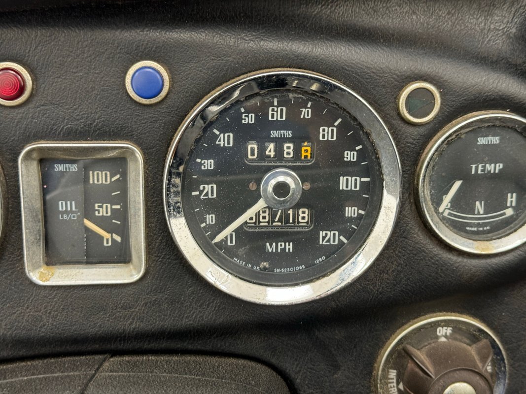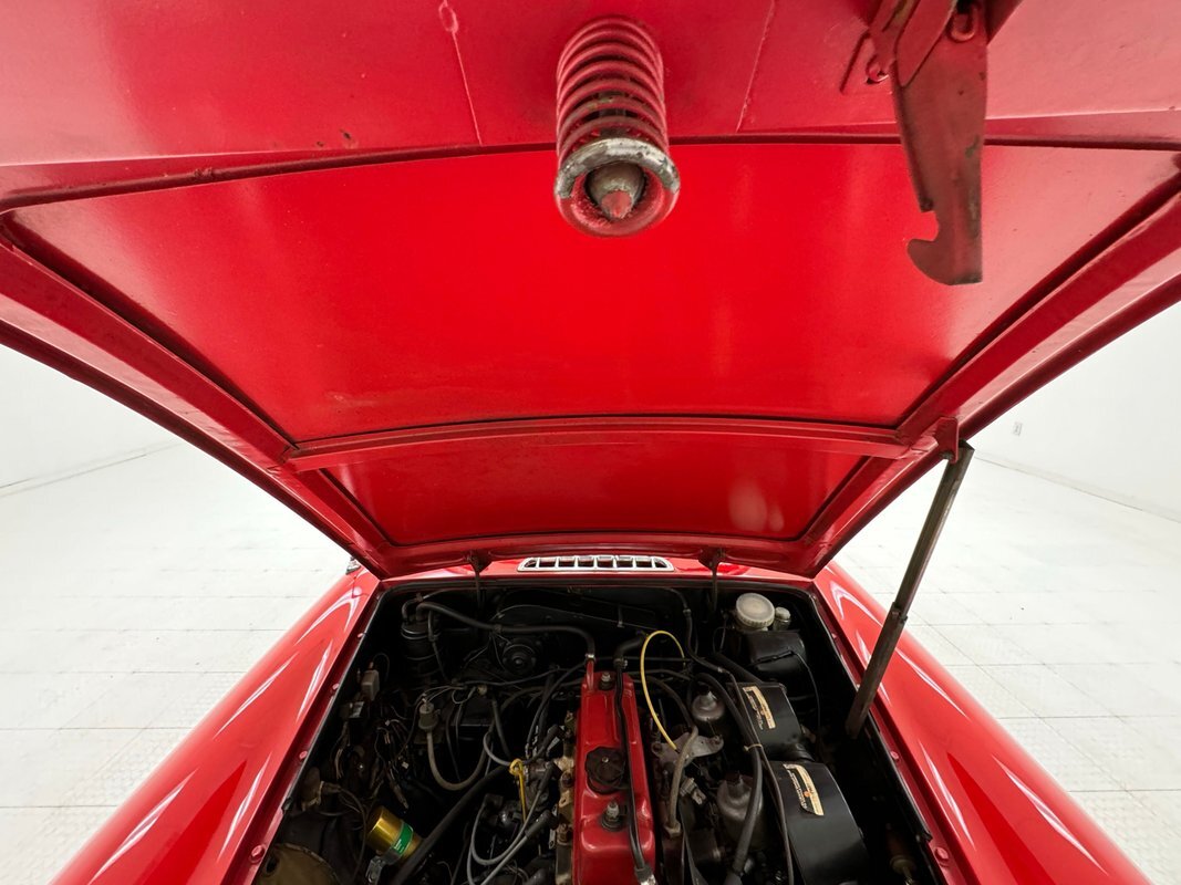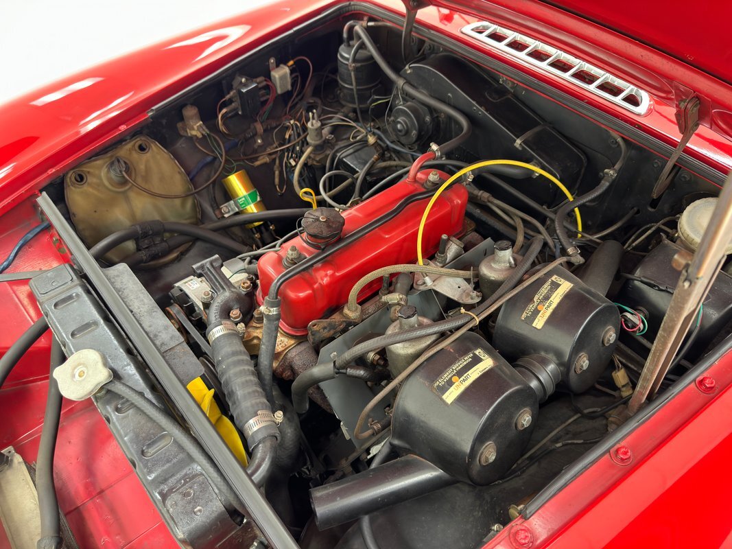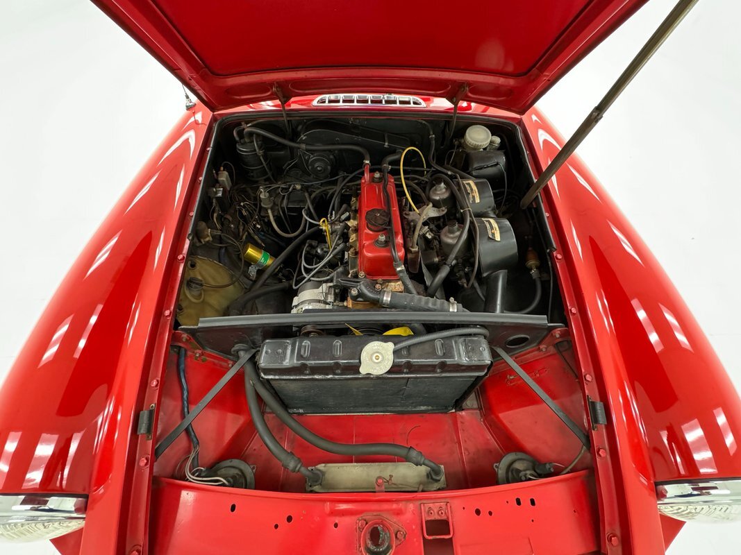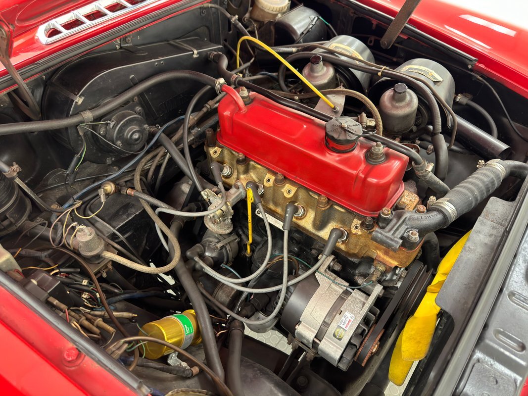Under the bonnet is a very clean 1800cc inline 4 cylinder engine rated at 78.5 horsepower and fed petrol by a 2 SU carburetor set up. A 4-speed manual is underfoot and as a true sports car, power is sent to the rear wheels where it meets 3.909 gears. In the front, disc brakes and in the back, drums.