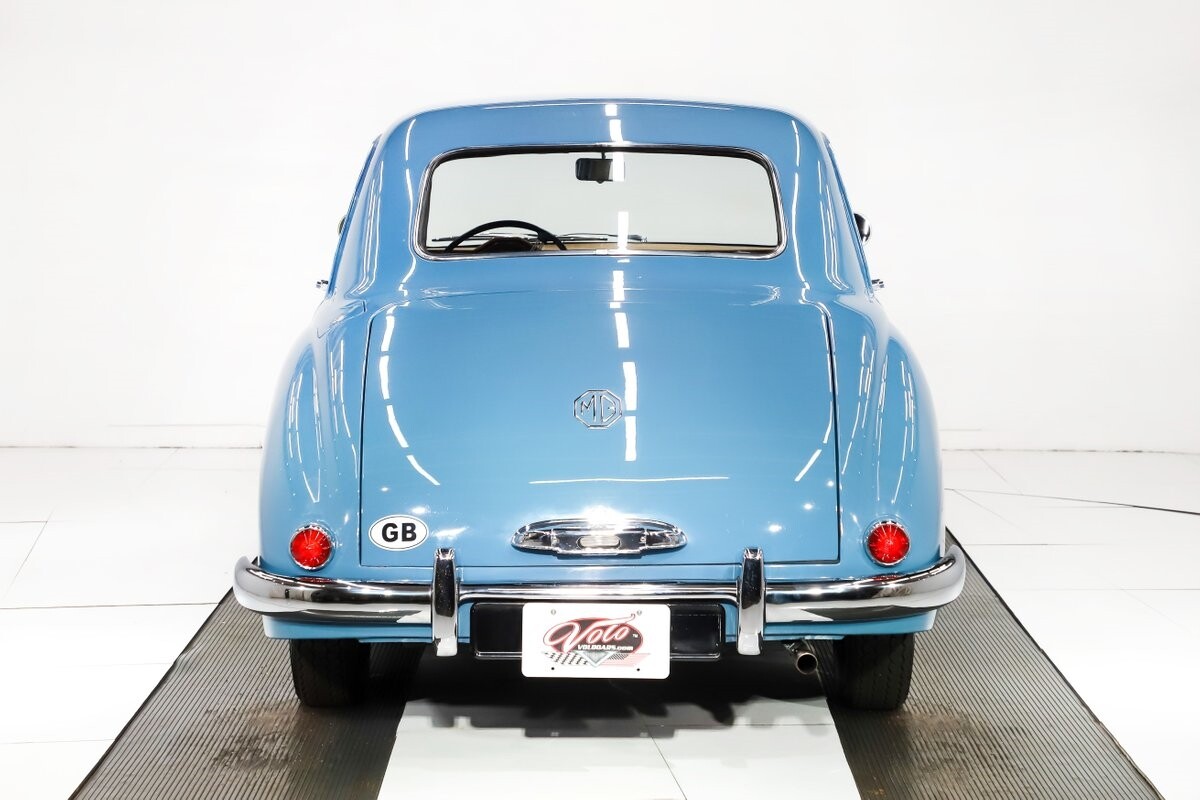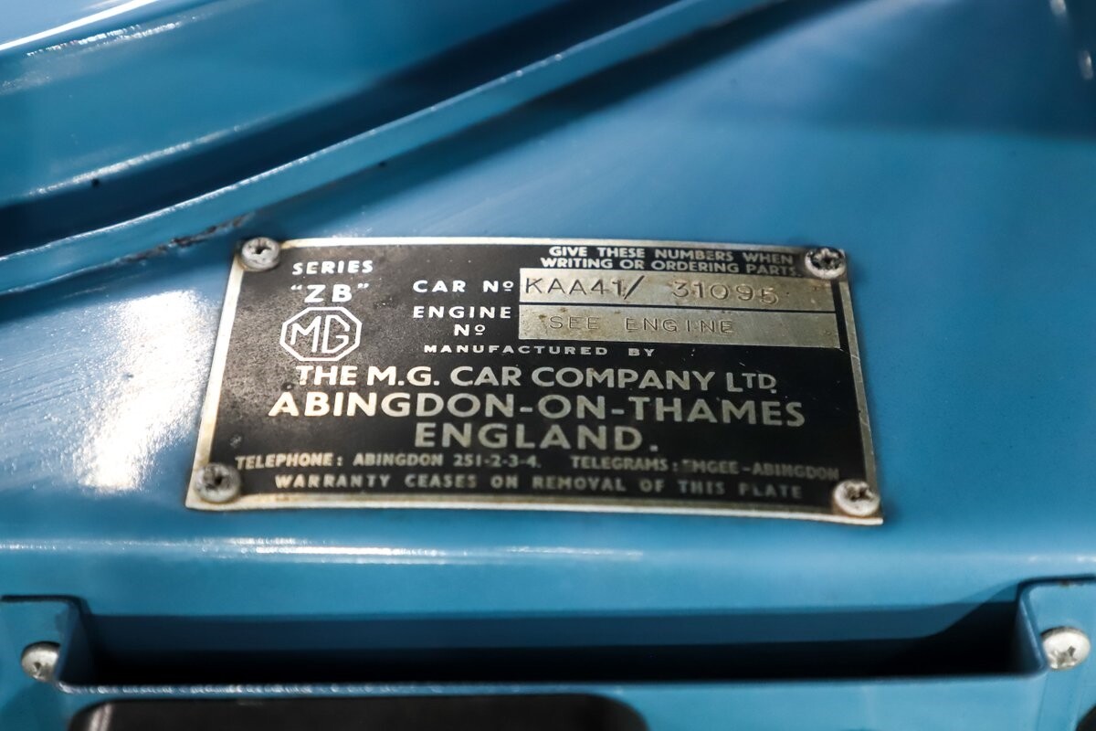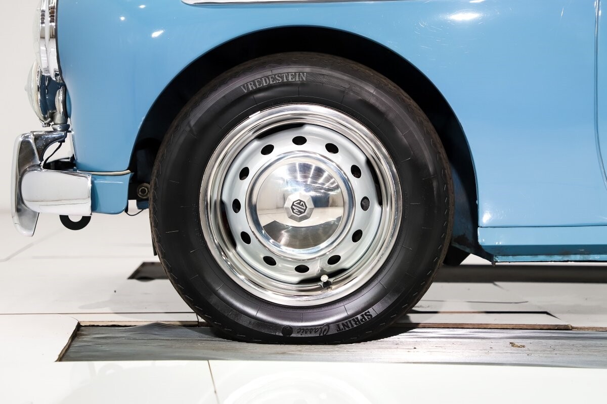 EXTERIOR: Finished in a gorgeous French blue paint. The body is clean and straight, the fit and finish is exceptional. Being an older restoration, the paint has mild crows feet cracking in places. These Magnettes have a very appealing look with the Lucas lamps, the big chrome MG grill and the chrome extended bumpers. All the chrome trim shines like new, there's no rust. The glass is nice and clear and in great shape. It has the upgraded correct radial tires on the MG steel wheels with hubcaps.