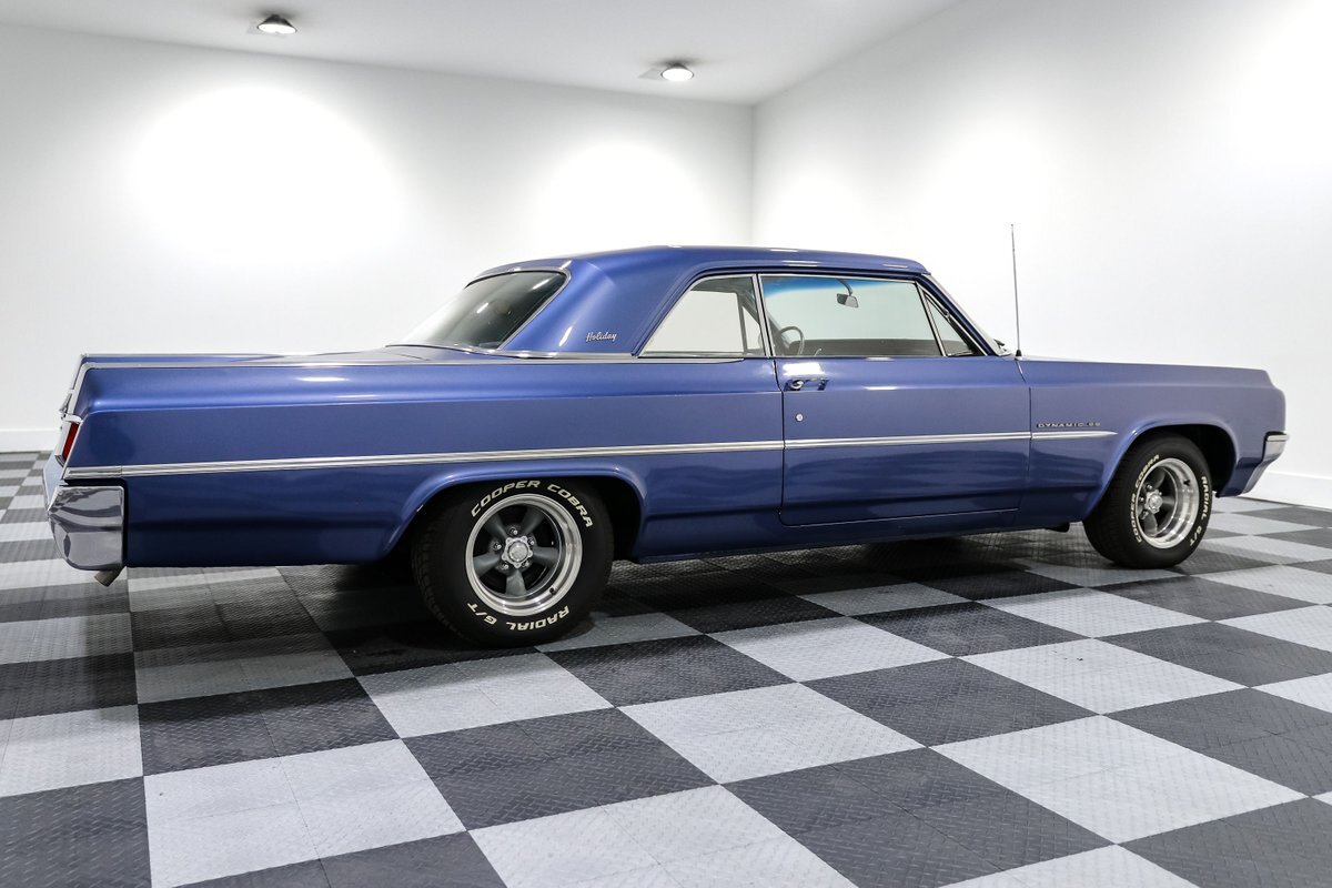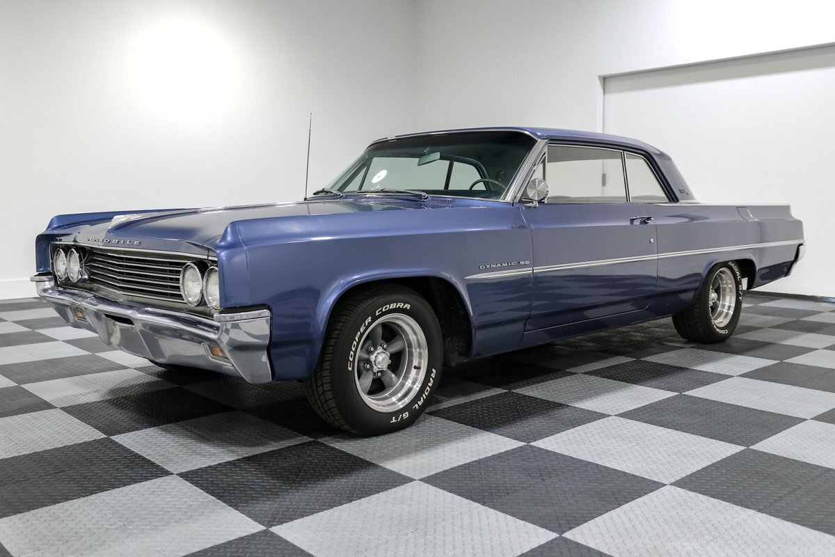 Step back into the golden age of American automobiles with this striking 1963 Oldsmobile Dynamic 88, a true classic that exudes both style and power. Cloaked in a unique lavender finish and featuring a contrasting blue vinyl interior, this coupe stands out in any crowd. Under the hood lies a robust 394 V8 engine paired with an automatic transmission, delivering a smooth and powerful driving experience that's synonymous with Oldsmobile's legacy.