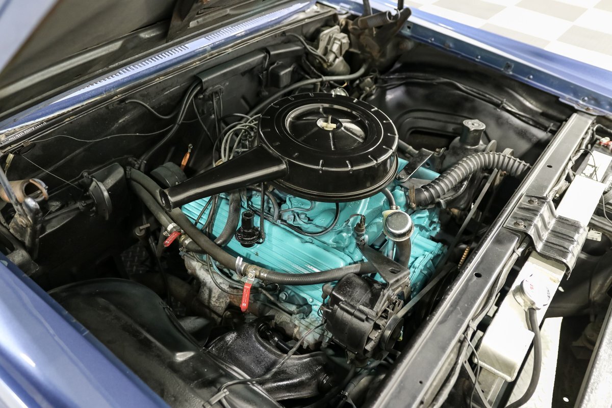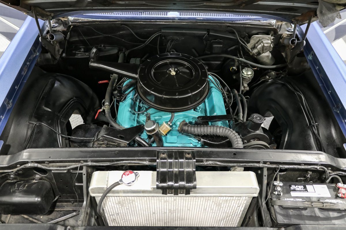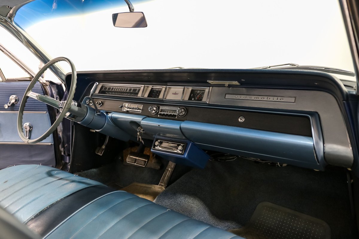 Inside, the blue vinyl bench seats offer a spacious and comfortable cabin, perfect for cruising in style. The aftermarket radio adds a modern touch to the classic interior, ensuring you have the perfect soundtrack for every journey. With 4-wheel drum brakes, this Dynamic 88 maintains its original charm while offering reliable stopping power.