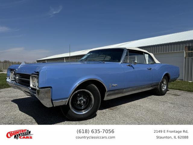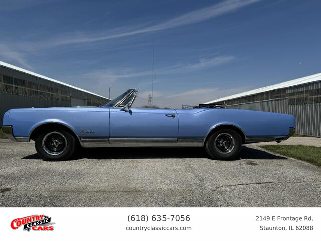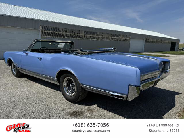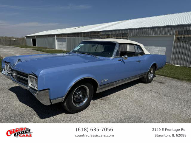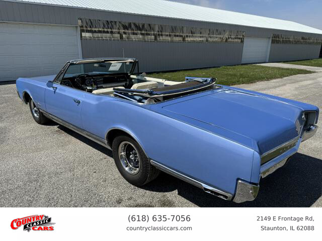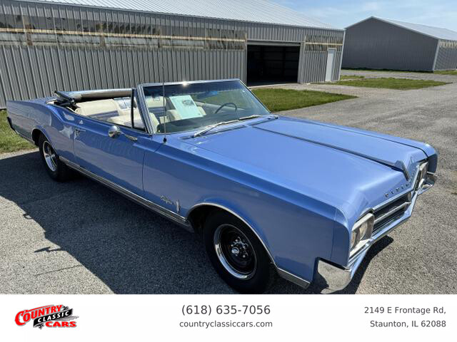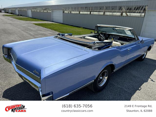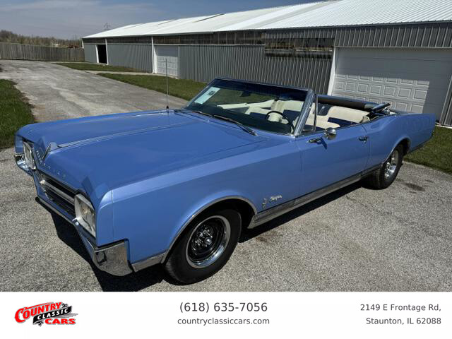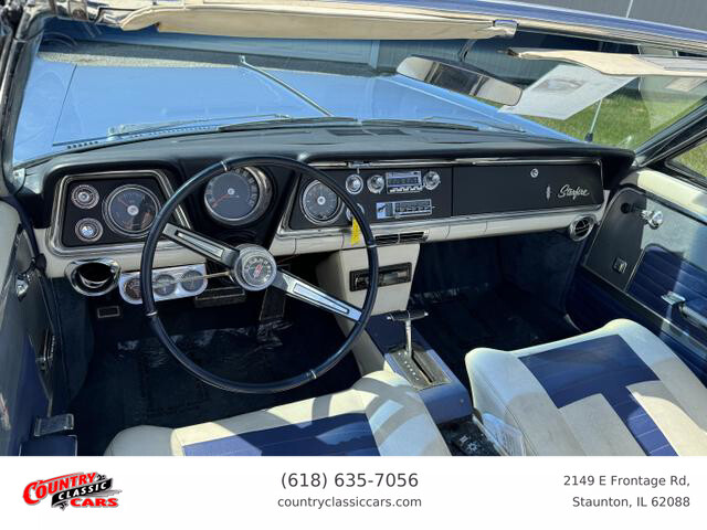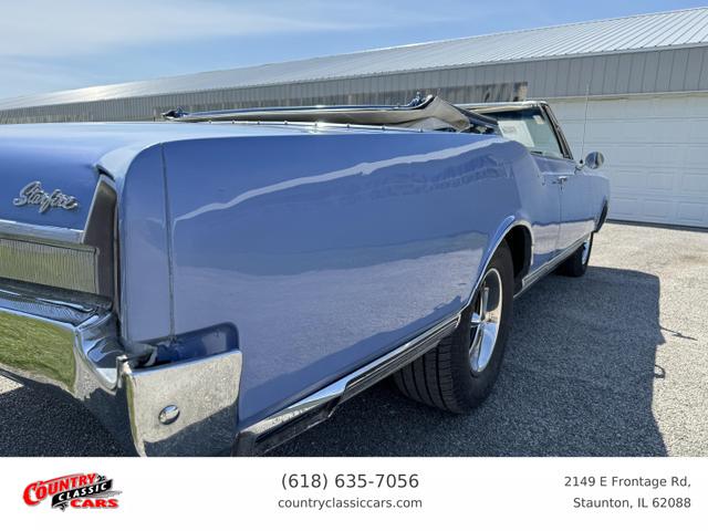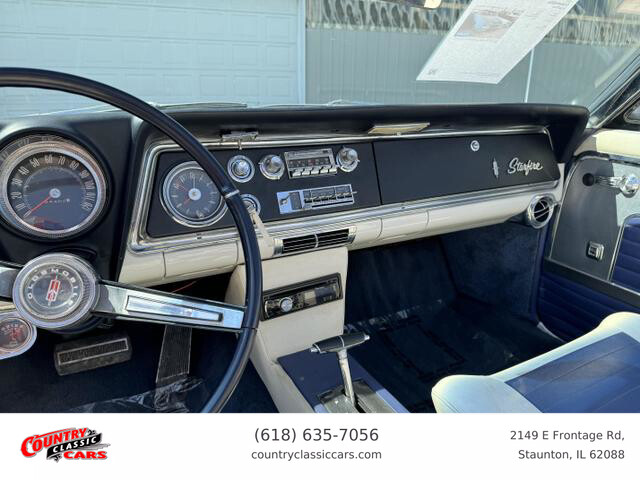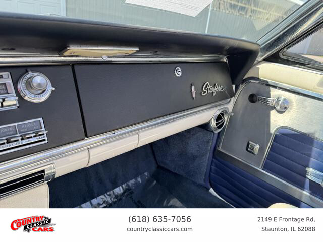 Available now is this beautiful 1965 Oldsmobile Startfire Convertible finished in blue with a white top over a white and blue refinished interior. This Olds is powered by a strong V8 engine mated to an automatic transmission riding on new wheels and tires and all new suspension. Inside you will find a mild custom refinished interior with features such as power windows and a working power convertible top. Oldsmobile Starfire convertibles are not that easy to find and this one would make a great addition to any garage or collection.