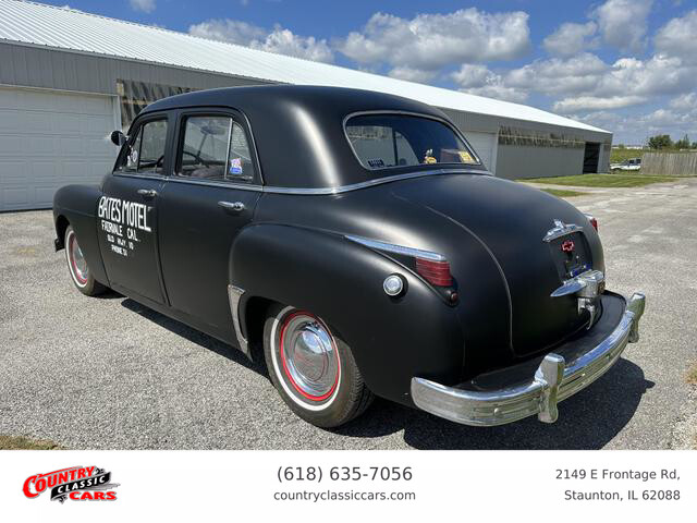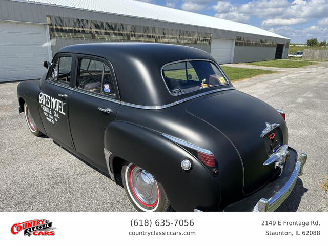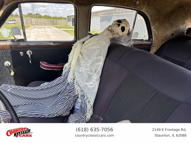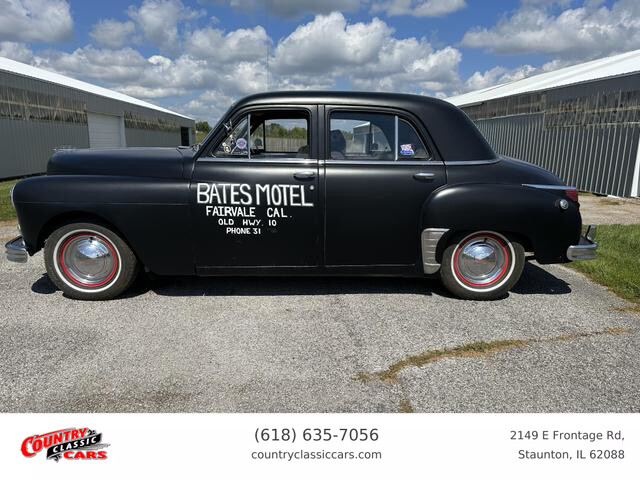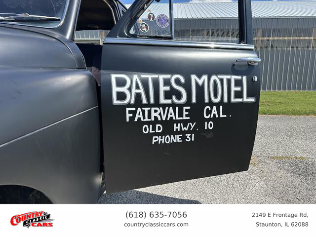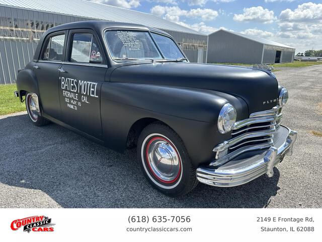 1949 Plymouth 4dr sedan, cool cruiser, finished in hot rod black, Bates motel theme, original interior, nice wood grained dash, flathead 6cyl 3 spd, nice chrome bumpers and grill, back seat driver included, runs and drives