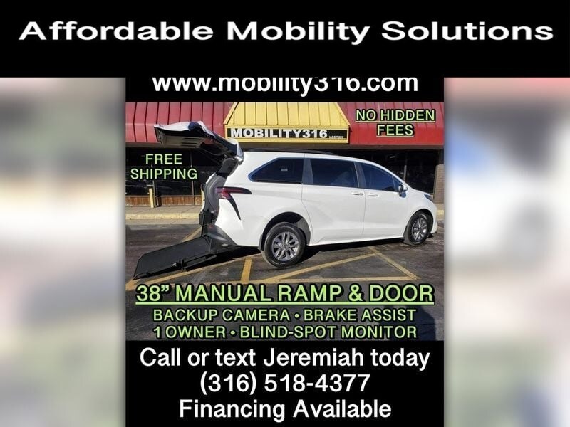 To view a video that features a walk around, interior view, and short test drive please copy and paste the following link: Why choose this Sienna from Affordable Mobility Solutions? - We have a detailed video so you know exactly what you are getting. - All our vehicles are inspected by an ASE certified mechanic. - We don't have any hidden/bogus fees. - We offer FREE shipping anywhere in the lower 48 states. - We provide a free Carfax report with each one of our vans. - We take trade-ins even from across the country. - This 1 owner van is equipped with a backup camera, blind-spot monitor, and brake assist and comes with a free set of upgraded Q-Straint tie-downs and the owners manual. - Do not risk buying as is. This van meets the specs to be covered under Toyotas 3yr/36k mile bumper to bumper warranty as well as the 5yr/60k mile powertrain warranty. The brand new conversion also comes with an industry leading 3yr/unlimited mile warranty. 2023 Toyota Sienna LE HYBRID VIN: 5TDKRKECXPS173058 Miles: 234 Title: Clean title in hand. See Carfax report for more details. FREE SHIPPING!! Please view the following video link for information on how our free shipping works: Conversion: This van has a new ATS manual ramp and door conversion that is easy to operate and low cost to maintain. Specifications: - 38 wide ramp - 57 doorway height - 57 interior height - 800lbs weight capacity - Non-skid powder coated ramp - Lightweight aluminum ramp with dual locking shock assist - Deep cut interior channel (allows for up to 2 wheelchairs OR 1 stretcher) - 3yr/unlimited mile conversion warranty Financing: We can send you a credit application to your email, send you a link to apply online, or mail you one. - No down payment required with approved credit. - Always simple interest loans with no prepayment penalties. - Terms up to 10 years (120 months) to keep your payments low. - Credit scores as low as 520. Please be sure to make an appointment with Jeremiah at 866-721-1712 to view any of our vehicles. Please note that we can only accept the following forms of payment: - Cash - ACH Bank Transfer (Free to you and me.) - Wire Transfer **$20 fee added to send a wire, use an ACH :) - Certified Bank Check - Credit or debit card (processing fees will apply) **We do not guarantee extra keys, books, floor mats, spare tires/tools, or navigation discs with every van. We take very detailed videos and pictures that show exactly what the vehicle comes with, and if we have them, they will be in the vehicle upon delivery. All buyers registering vehicles out of state will be responsible for their local taxes and any fees charged by their state or county. Mobility Van Wheelchair Truck Mobility Truck Handicap Truck Ramp Van Mobility SUV Handicap Accessible vehicles Handicap SUV Handicap Handicapped Disability Wheelchair Van Medical Ramp