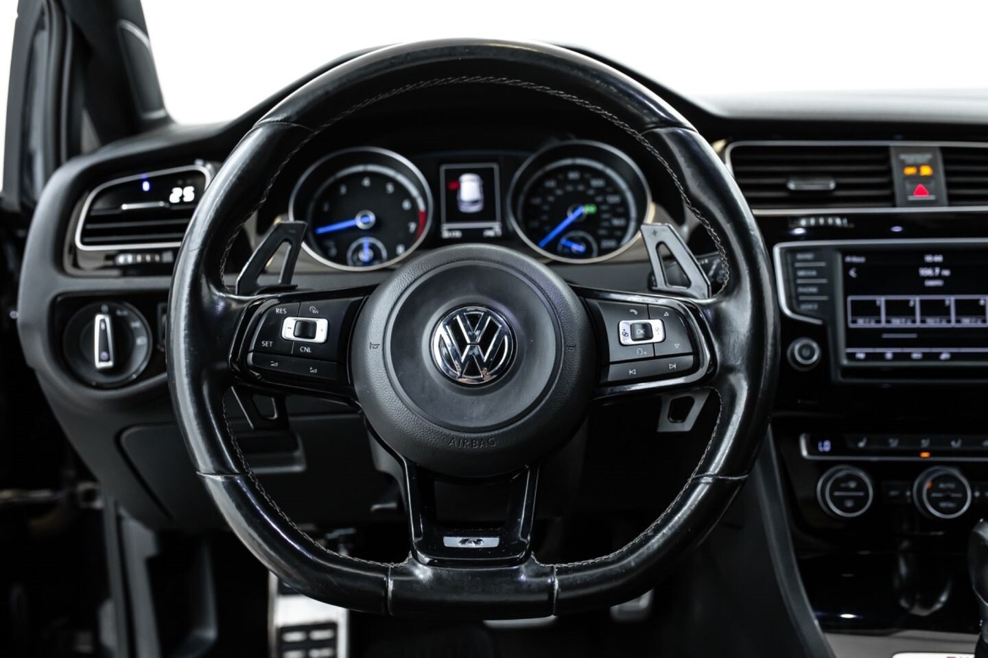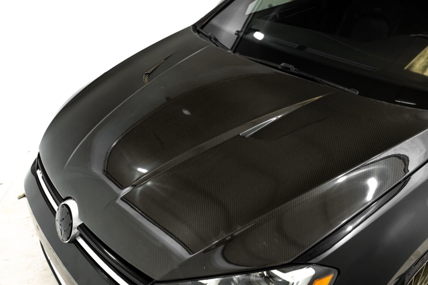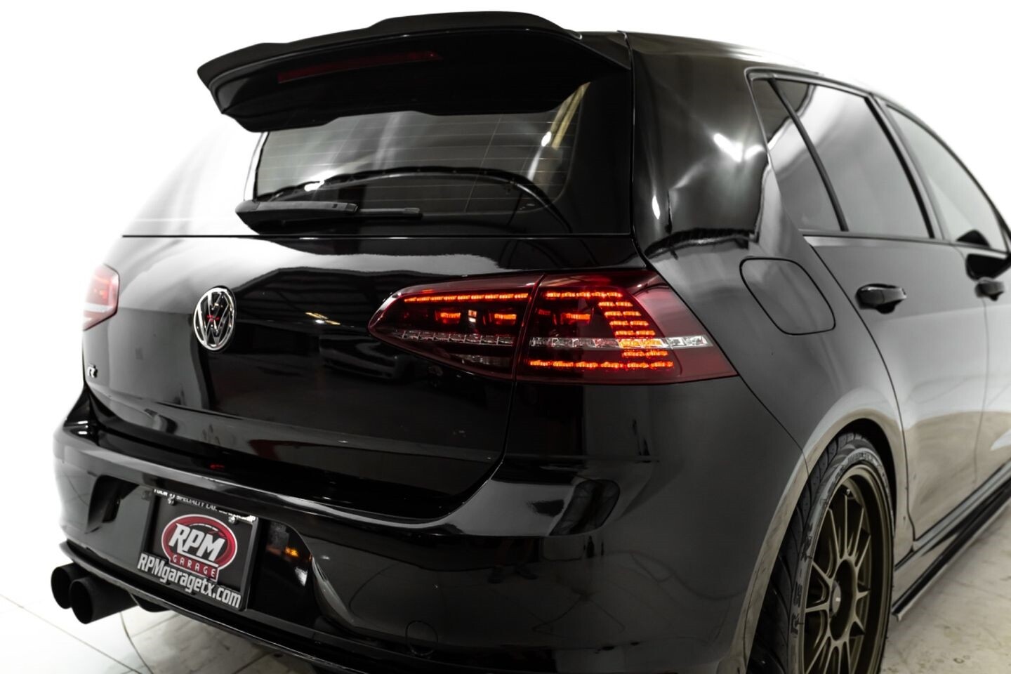 This 2016 Volkswagen Golf R 4MOTION is a capable hot-hatchback that has been taken to the next level with several high-octane modifications. Under the hood is a turbocharged 2.0-liter inline four-cylinder engine that produces 292 horsepower and 280 lb-ft of torque, all of which is sent through a six-speed automatic transmission to all four wheels. The engine is not stock, however, having received an APR Stage 3 Full Frame upgraded turbocharger kit, as well as several supporting upgrades that include a Stage 2 fuel pump, an aftermarket high-flow fuel rail, an APR catless downpipe, an aftermarket catch can, and custom tuning on 93 octane, among many other modifications. This aggressive build comes equipped with 18" Konig Flow-Formed wheels and is finished in Deep Black Pearl, a subtle hue that belies this car's true capabilities. The exterior of this Volkswagen has been made even more unique with the addition of some cosmetic modifications, which include a vented carbon fiber hood, carbon fiber mirror caps, aftermarket side skirts, and a rear spoiler extension. In the interior, this Golf R offers heated leather "R" bucket seats, billet paddle shifter extensions, a vent-mounted P3 V3 OBDII multi-function gauge, a flat-bottomed leather "R" steering wheel, multi-zone A/C, and an infotainment system with Bluetooth, apps, phone connectivity, CD, AM/FM radio, AUX, and a backup camera, truly making this car the complete package.