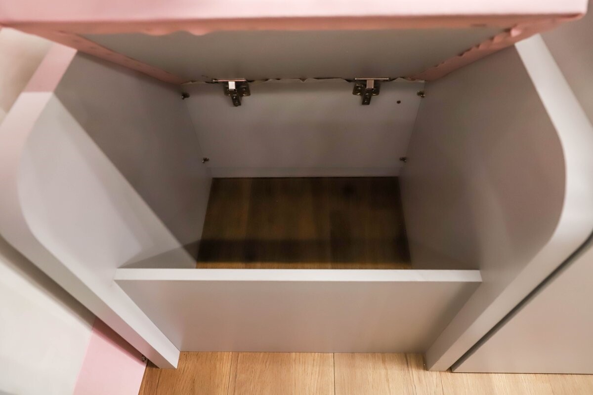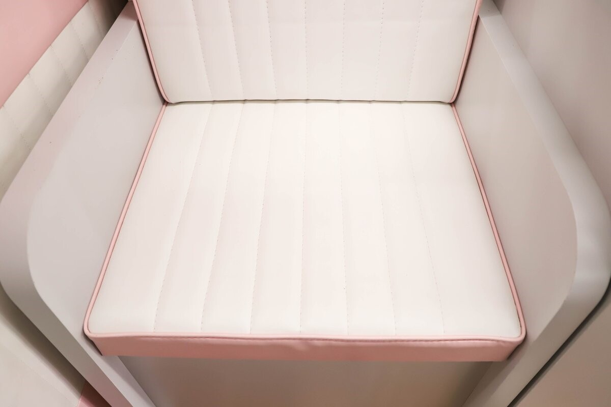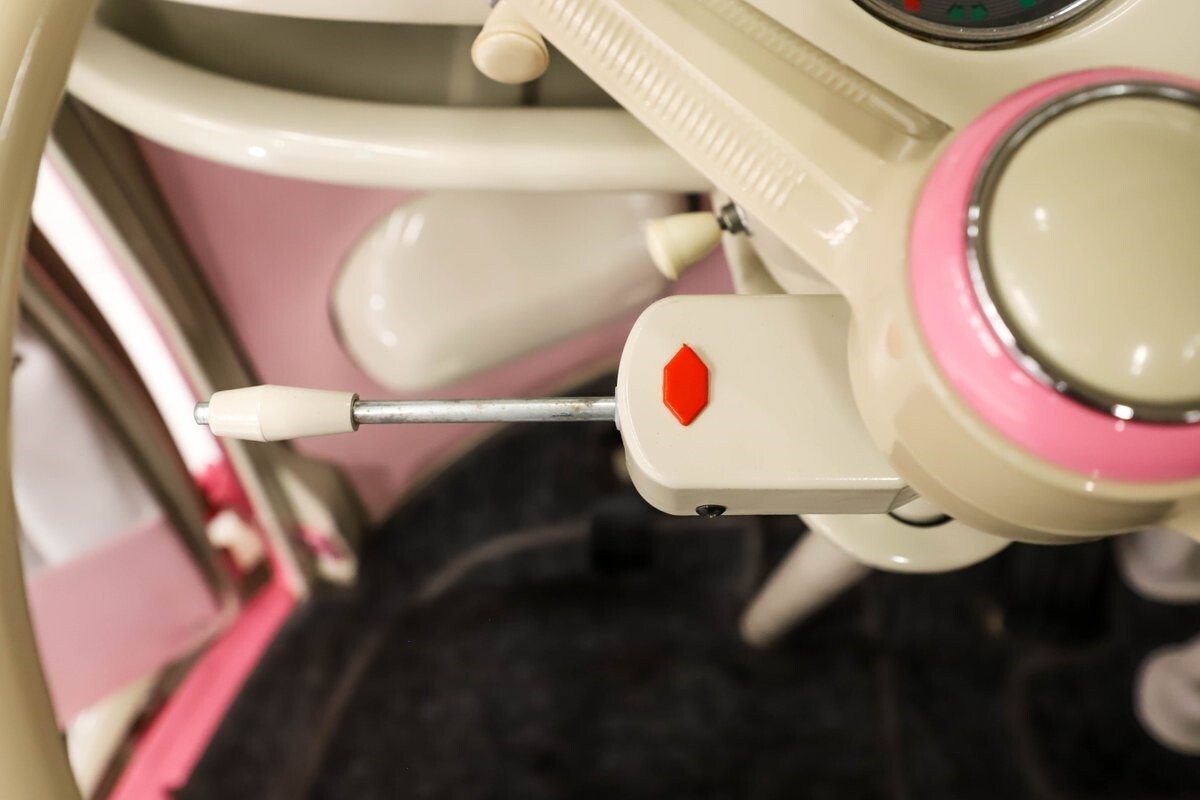 UNDERSIDE: The underside is painted just like the exterior. The bottom is clean metal, and it was prepped and painted pink. The components look fresh.