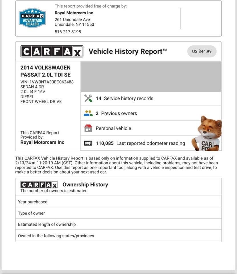 2014 Volkswagen Passat 2.0L TDI SE 4dr Sedan 6M