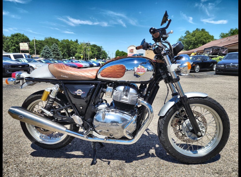 SUPER RARE COLOR COMBINATION AND THOUSANDS IN EXTRAS AND UPGRADES! RARE MARK 2 CHROME TANK OPTION!! Loaded with factory optional upgrades and extras including: Mark 2 Livery, Factory optional S&S silver slip on mufflers (sounds AMAZING!), Leather tank strap, Corbin matching seat, Union Jack brown tank knee pads, Bar end mirrors, Brown leather grip wraps, Royal Enfield logo LED headlamp, Remote reservoir rear shocks, ABS brakes, newer rear tire, and more. This bike is in absolute showroom quality garage kept condition with no issues to be disclosed and is in stock and ready to ride home TODAY!!