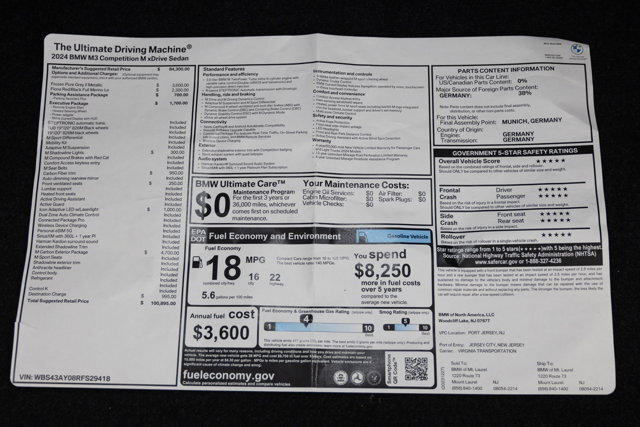 2024 BMW M3 Competition xDrive 2205 Miles Ind Frozen Pure Grey II Metallic 4dr C