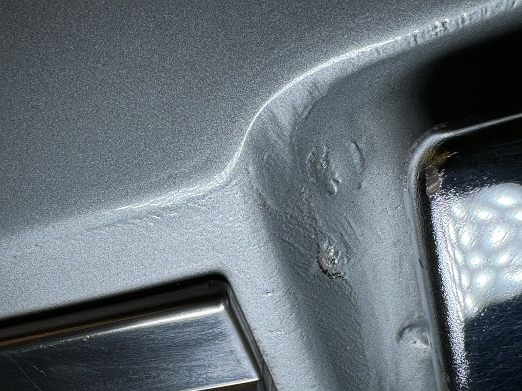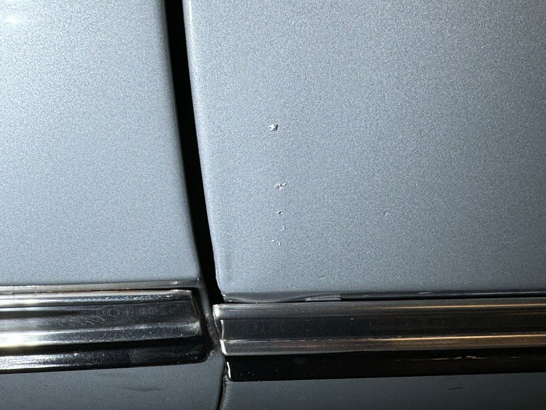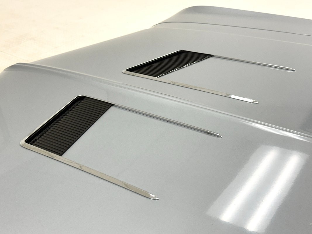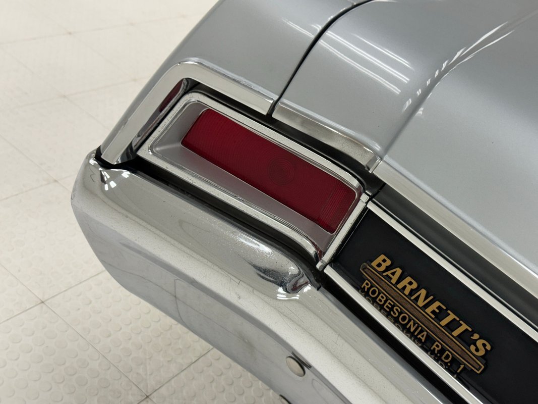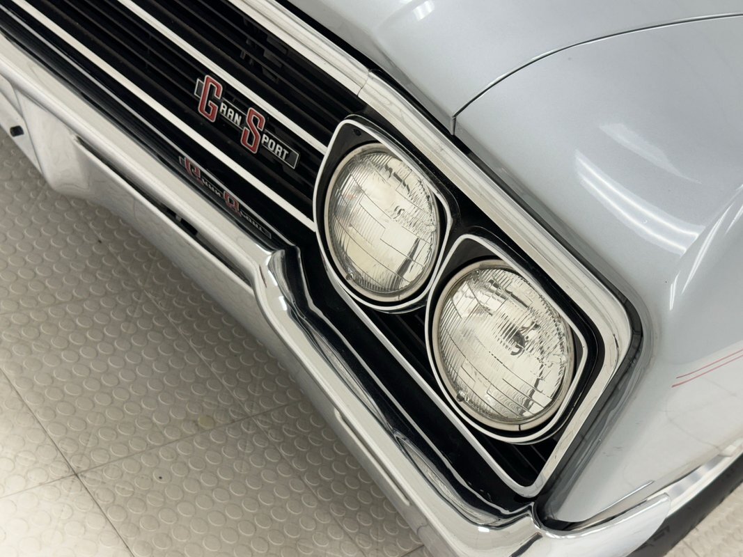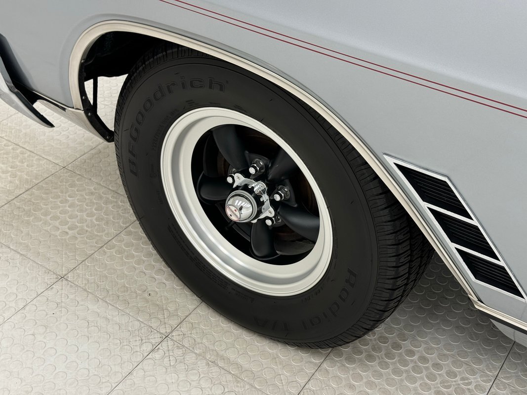 Two stage Silver Mist on the body is complemented by Regal Black on the roof which is a great design element to pick up the black wheels, faux fender vents, grille, and faux hood scoops. The handsome lines and vertical fascia of the mid size offerings from GM are exemplified on this car, looking both muscular and at the time, probably run of the mill. An epic Gran Sport emblem sits to the right on the black band of the tail and the simple taillights contour beautifully to the body lines and subtle angles of the car. With the red in the GS emblems and that of the taillights, the red double pinstripe that travels the length of the car at the mid panel level is a nice feature. Flying buttresses on the C-pillar are another feature that makes this car stand out in design. The paint and metal are very nice on the car with imperfections noted such as bubbling paint and small areas of painted filler that's not smooth, none glaringly obvious.