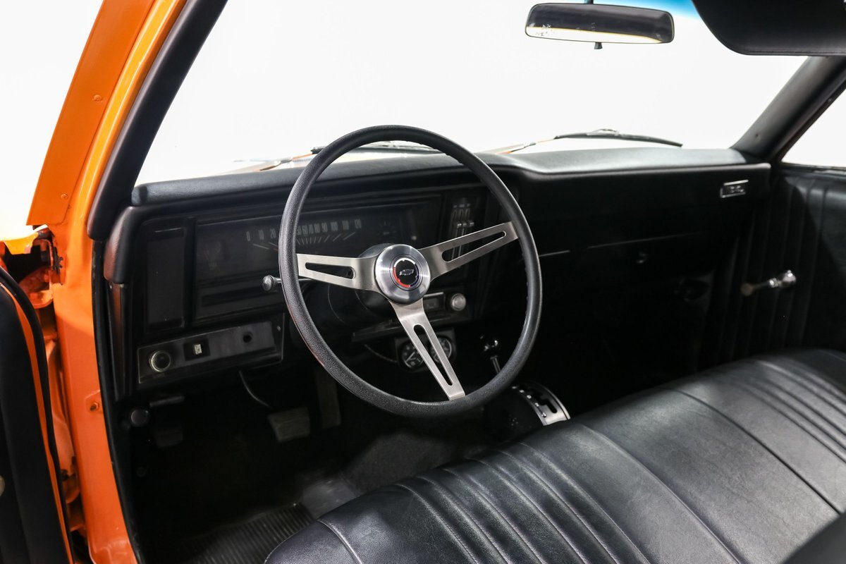 Dive headfirst into the heart of American muscle with this brilliantly restored 1969 Chevrolet Nova, a classic that embodies the raw power and sheer exhilaration of the era. Under the hood, this Nova is equipped with a robust 350CI V8 engine, paired seamlessly with a Turbo 350 automatic transmission, promising a driving experience that's as thrilling as it is smooth. The car's striking orange exterior, complemented by a sleek black vinyl interior and bench seating, not only turns heads but also sets the tone for the adrenaline-pumping ride that awaits.