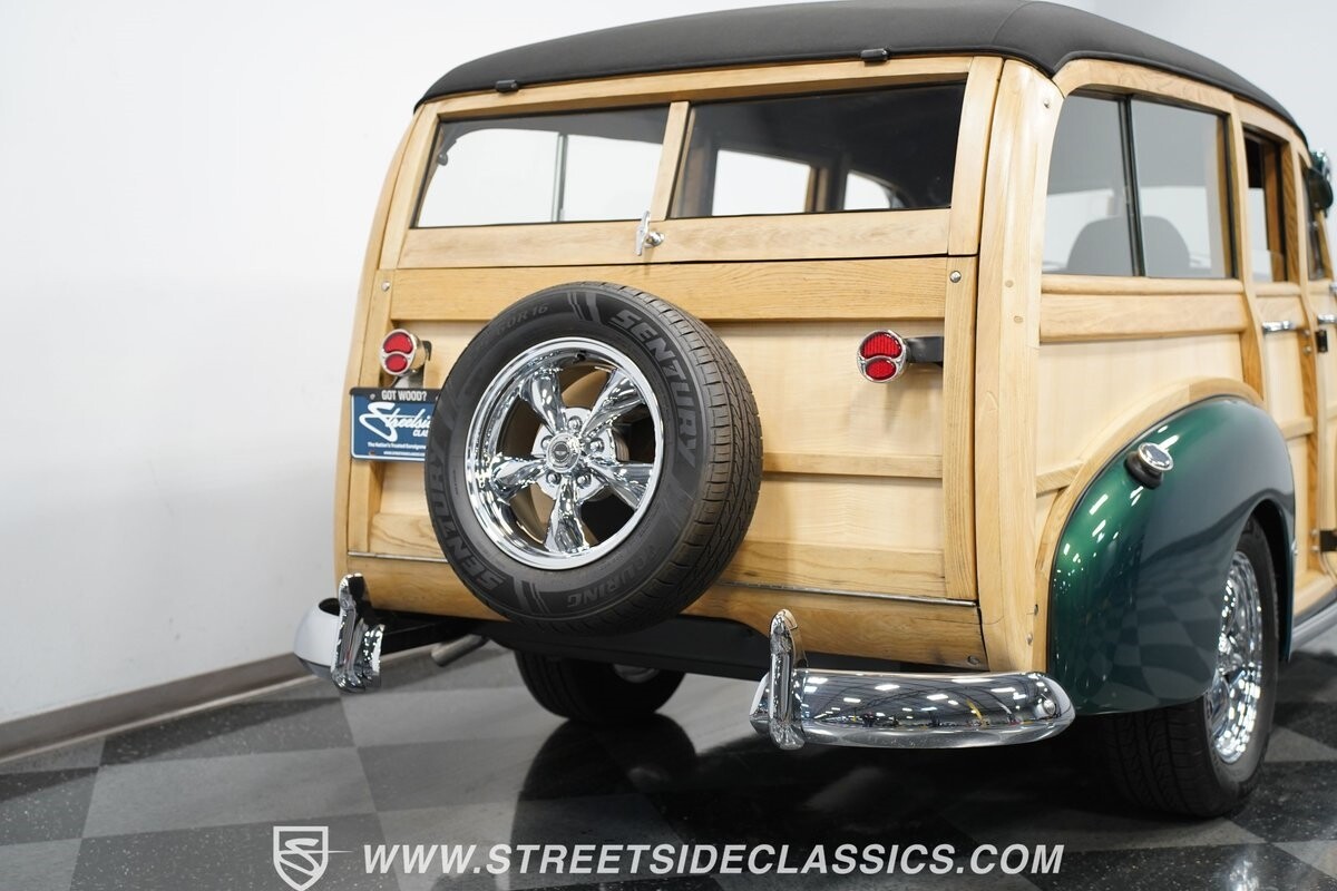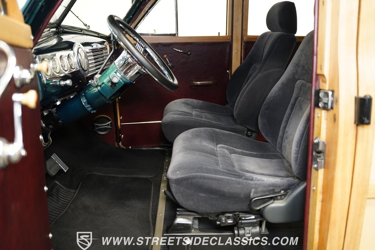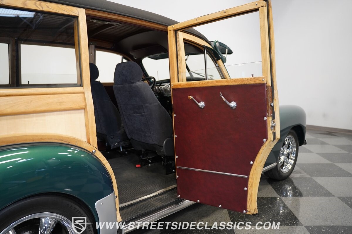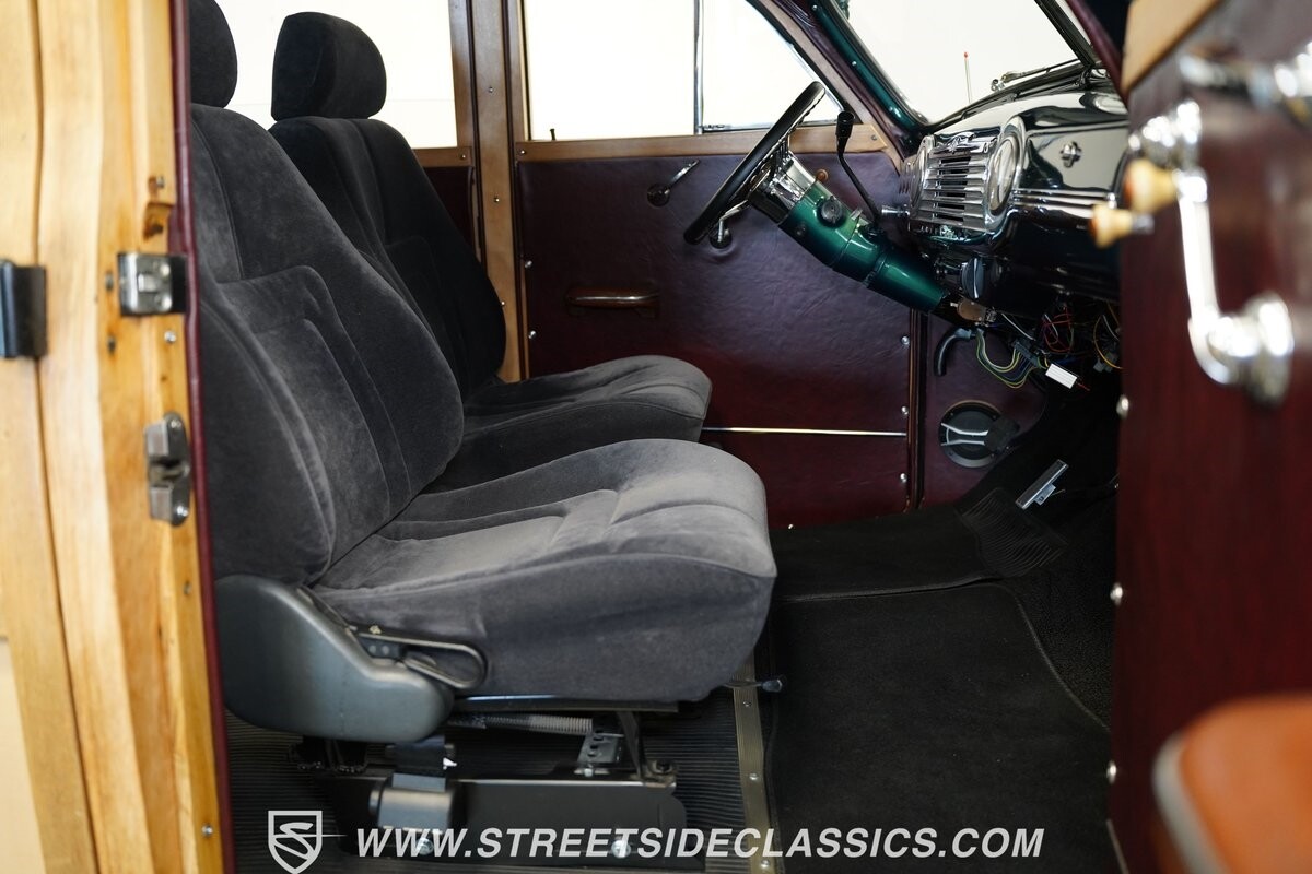 The 1947 Chevrolet Fleetmaster Woody Wagon is all about family adventures, surfboards, and sandy beaches. Powered by a robust 350 V8 crate engine mated to a smooth 4-speed automatic transmission, and featuring a striking metallic green exterior, complemented by the maroon and gray interior with wooden accents, all rolling on 17" American Racing wheels, this Woody Wagon is eagerly awaiting its next chapter. Call today!